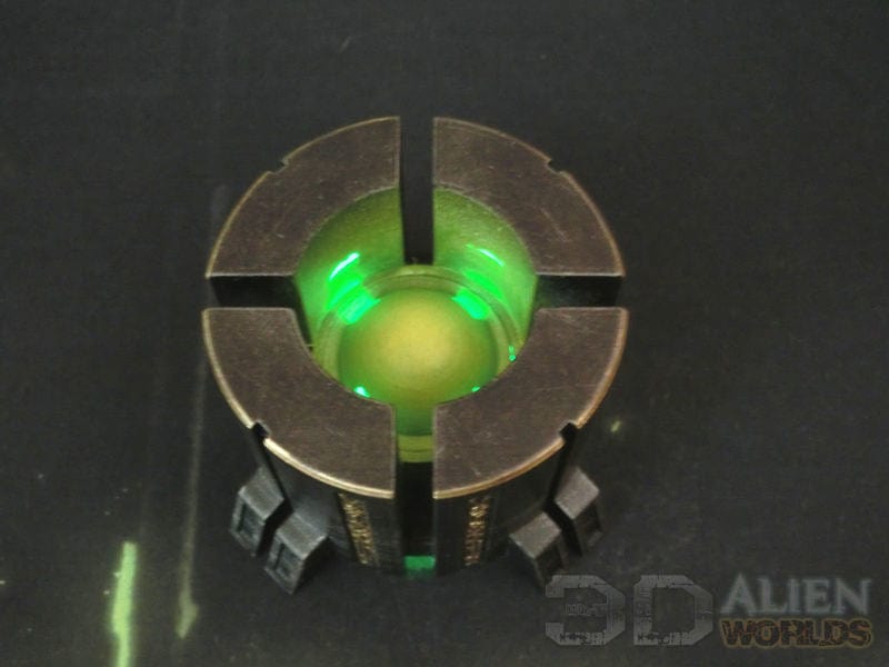 The smaller type measures W 90mm x D 90mm x H 60mm / W 3.5 x D 3.5 x H 2.4 inches in 28mm scale, and look great in pairs or sets of four. The separate top allows interior lighting to glow through, or printed solid and painted, and there is also a second version with cut out vents. Additionally, a third top version includes a large central hole, into which you can place a 25mm (1 inch) marble in the colour of your choice. The interior of the generator can be fitted with a small LED tealight to illuminate the interior and base area. Small vents near the base will also illuminate your table with an eery glow.