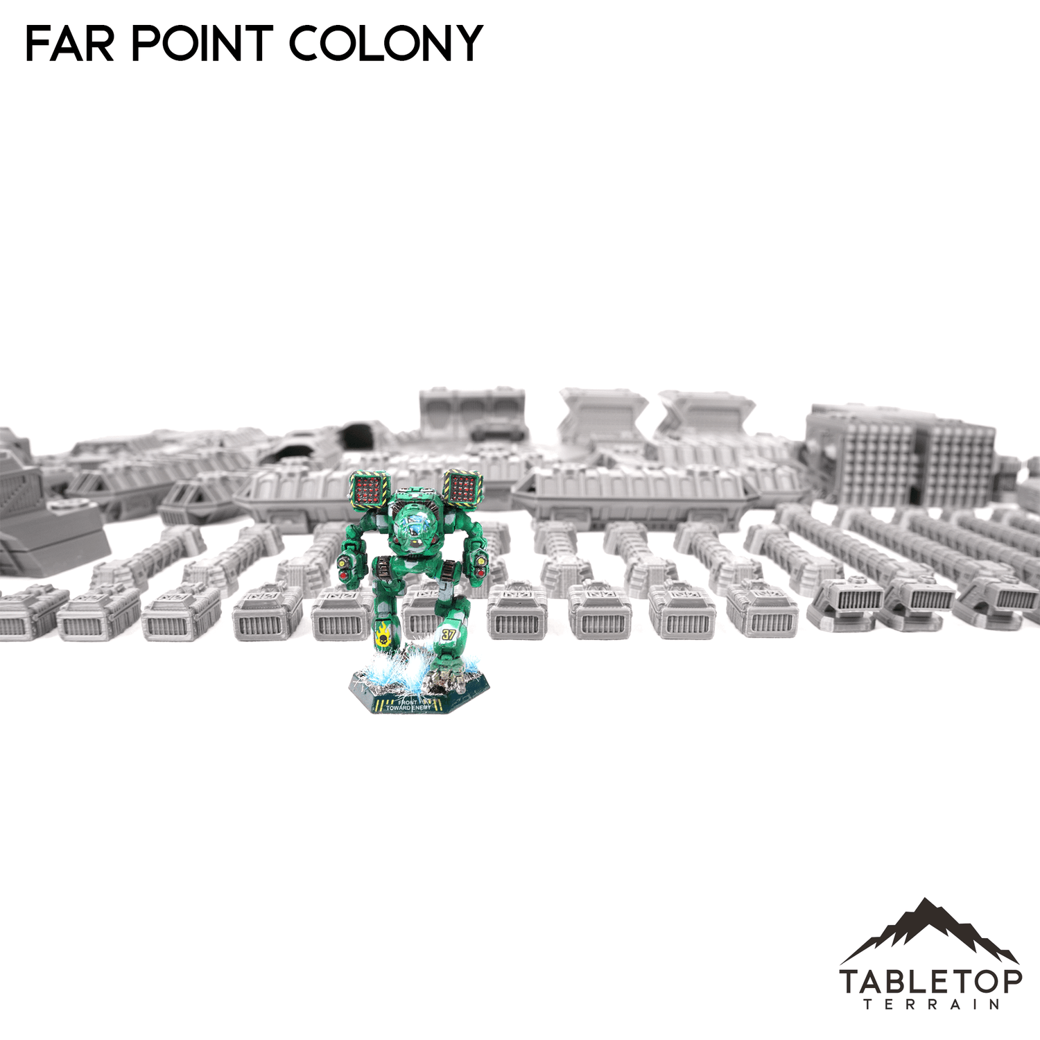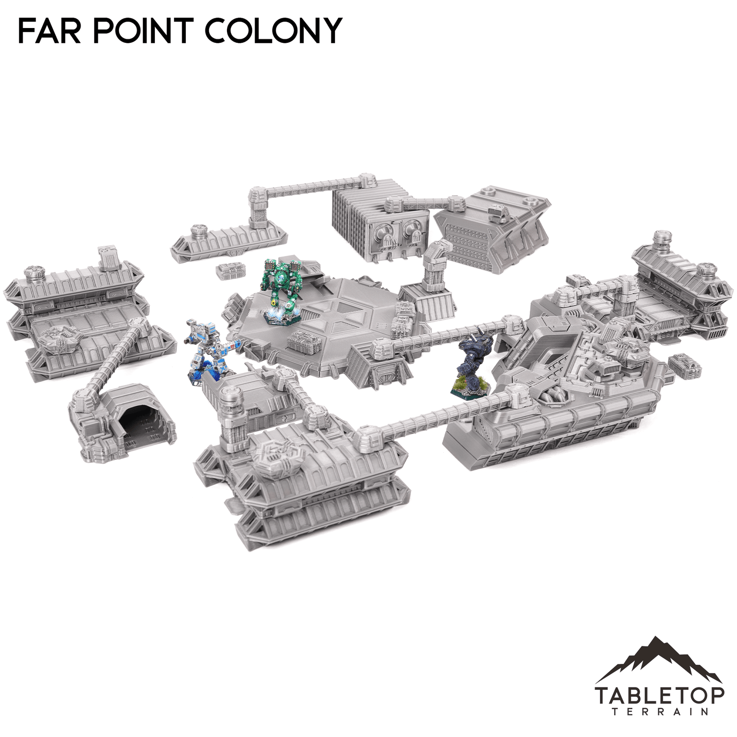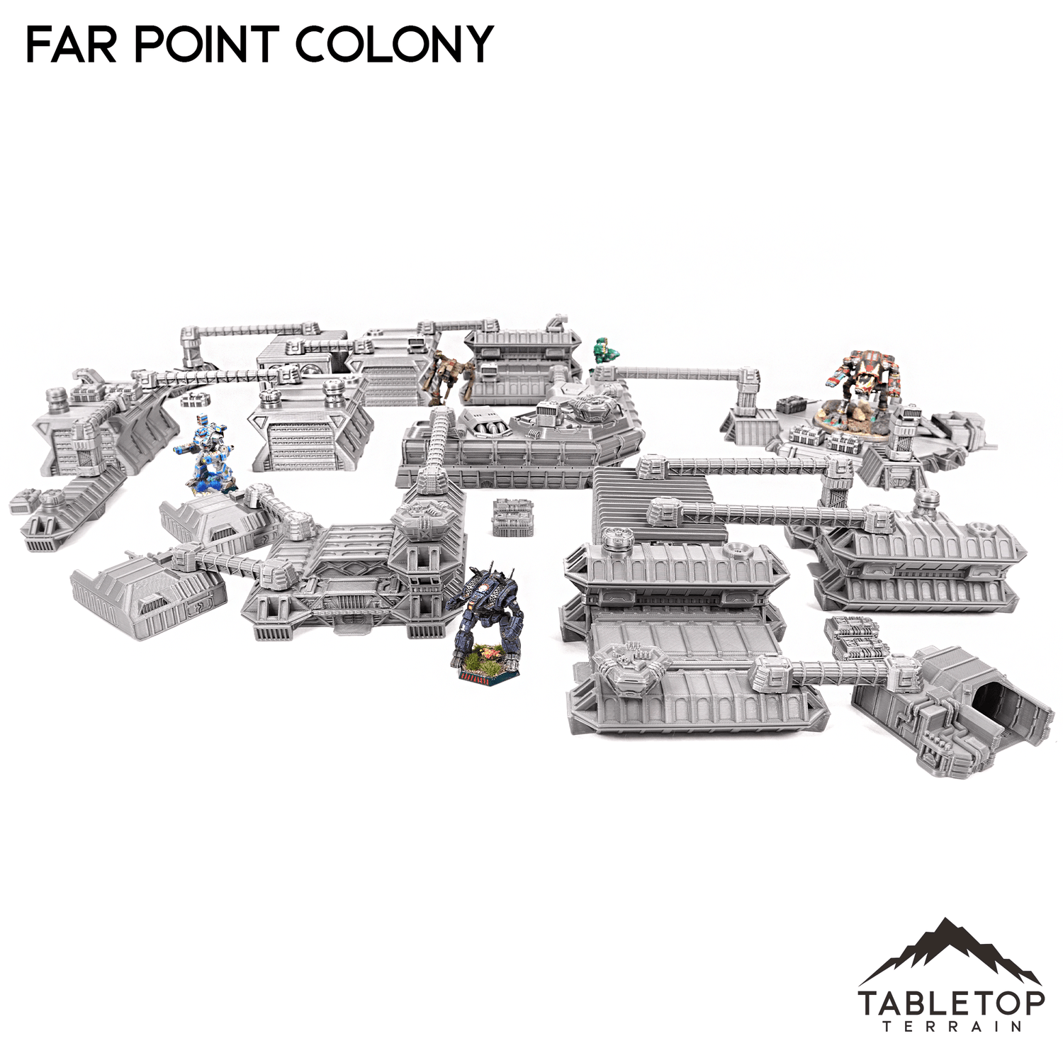 Throughout human history, the frontier has been a place of danger and opportunity in equal measure. Those hardy few willing to brave the hazards of the unknown stand to stake their claim and reap untold rewards. Making this possible as mankind extends across the stars, Farpoint Colony is a modular series of environmentally sealed structures making settlement possible in even the least habitable atmospheres. With reinforced outer skins, self-contained life support systems, and a series of fully-contained walkways allowing personnel to traverse the length of the colony without bulky environment suits, Farpoint is truly the ragged fringe of civilization.