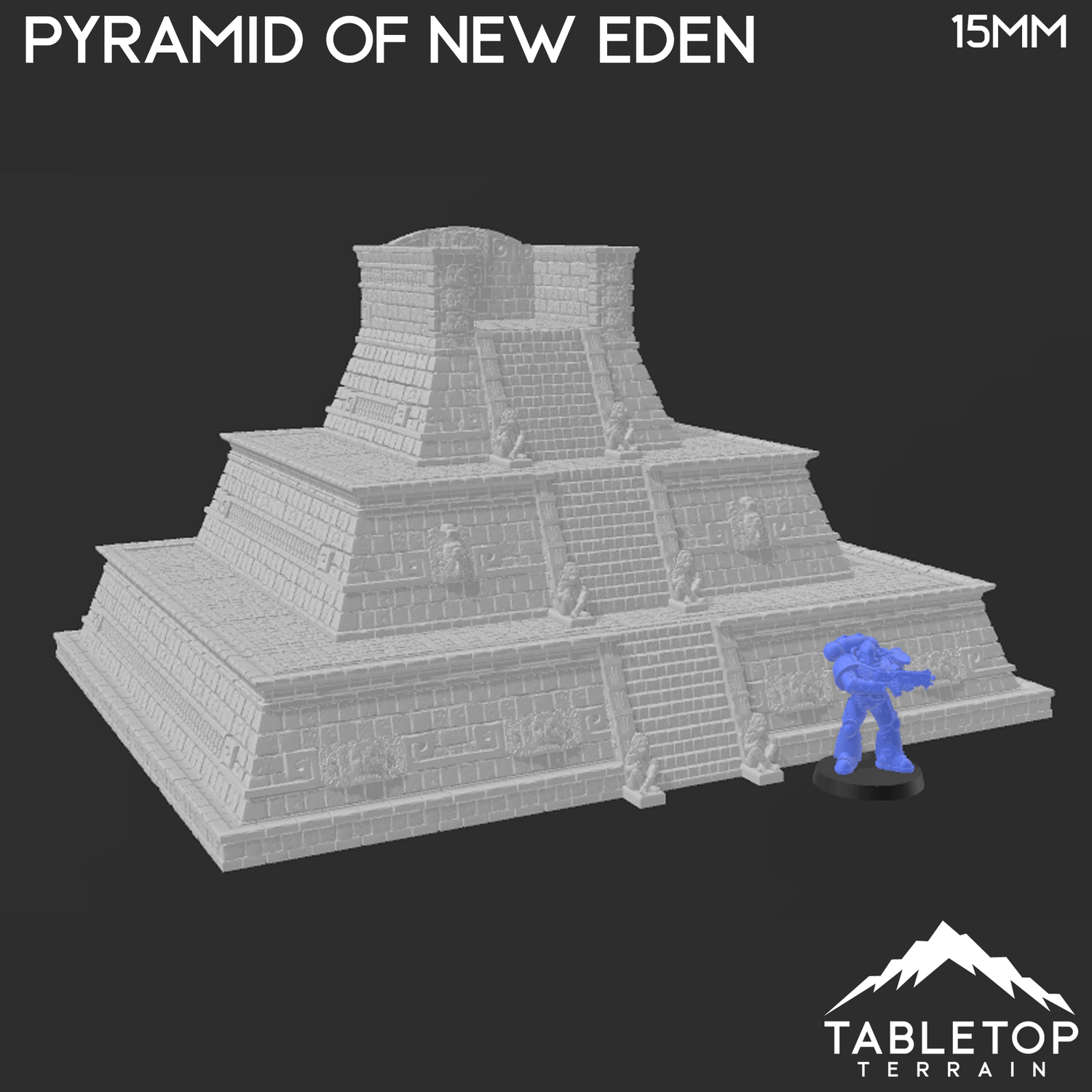 The Pyramid of New Eden, also called Kukulkan Pyramid, is a multi-part three level pyramid suitable for fantasy or sci-fi tabletop and role-playing games. Available as a forgotten relic or as a pristine temple. It is 3D printed in 32mm, 28mm, 20mm or 15mm scale in .2mm resolution.