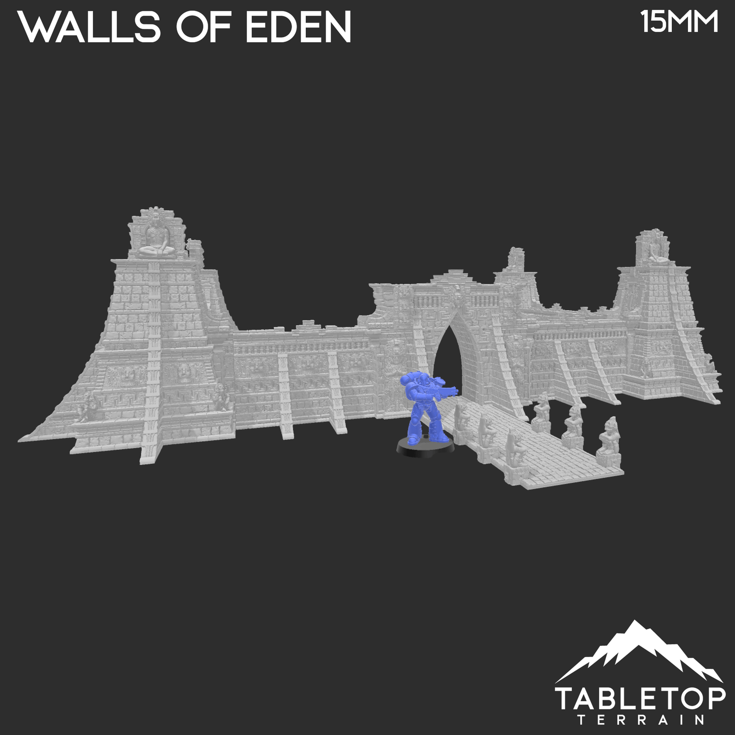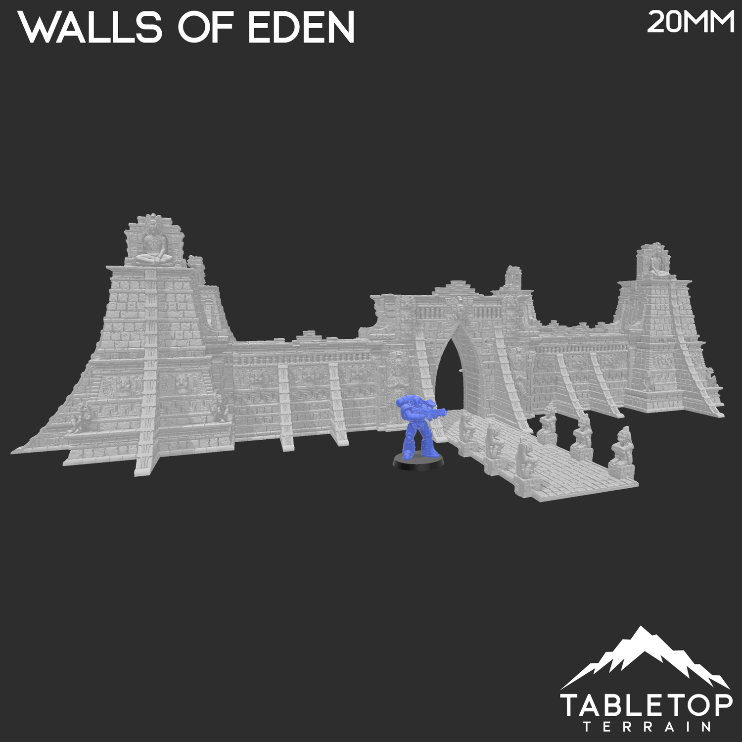 The Walls of Eden are a modular set of bastions, walls, and a gate perfect for fantasy or sci-fi tabletop and role-playing games. It is 3D printed in 32mm, 28mm, 20mm or 15mm scale in .2mm resolution.