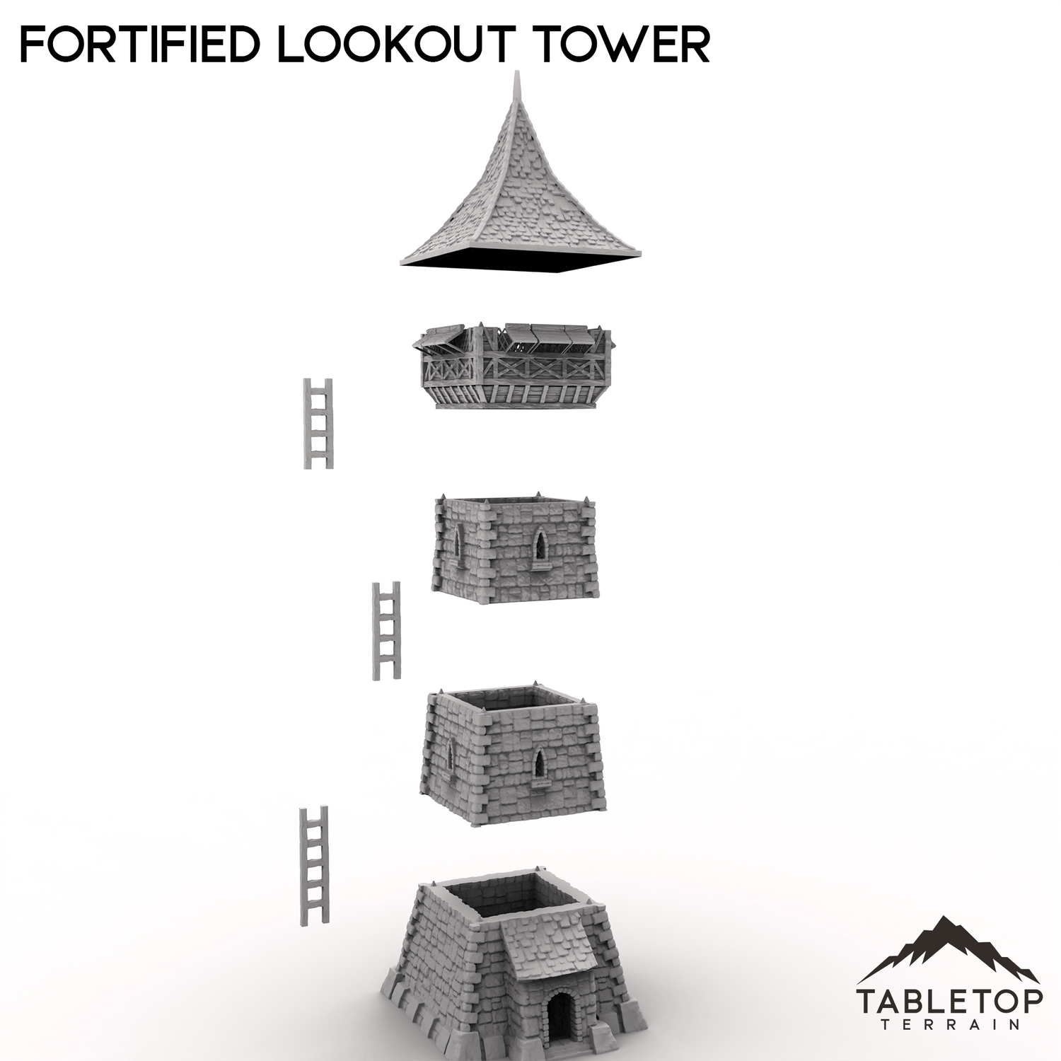 Fortified Lookout Tower is a sturdy tower built to scout distant targets. Its textured stone walls and narrow windows make it perfect for spotting incoming threats or signaling allies from afar. It has four floors with ladders allowing units to travel between floors