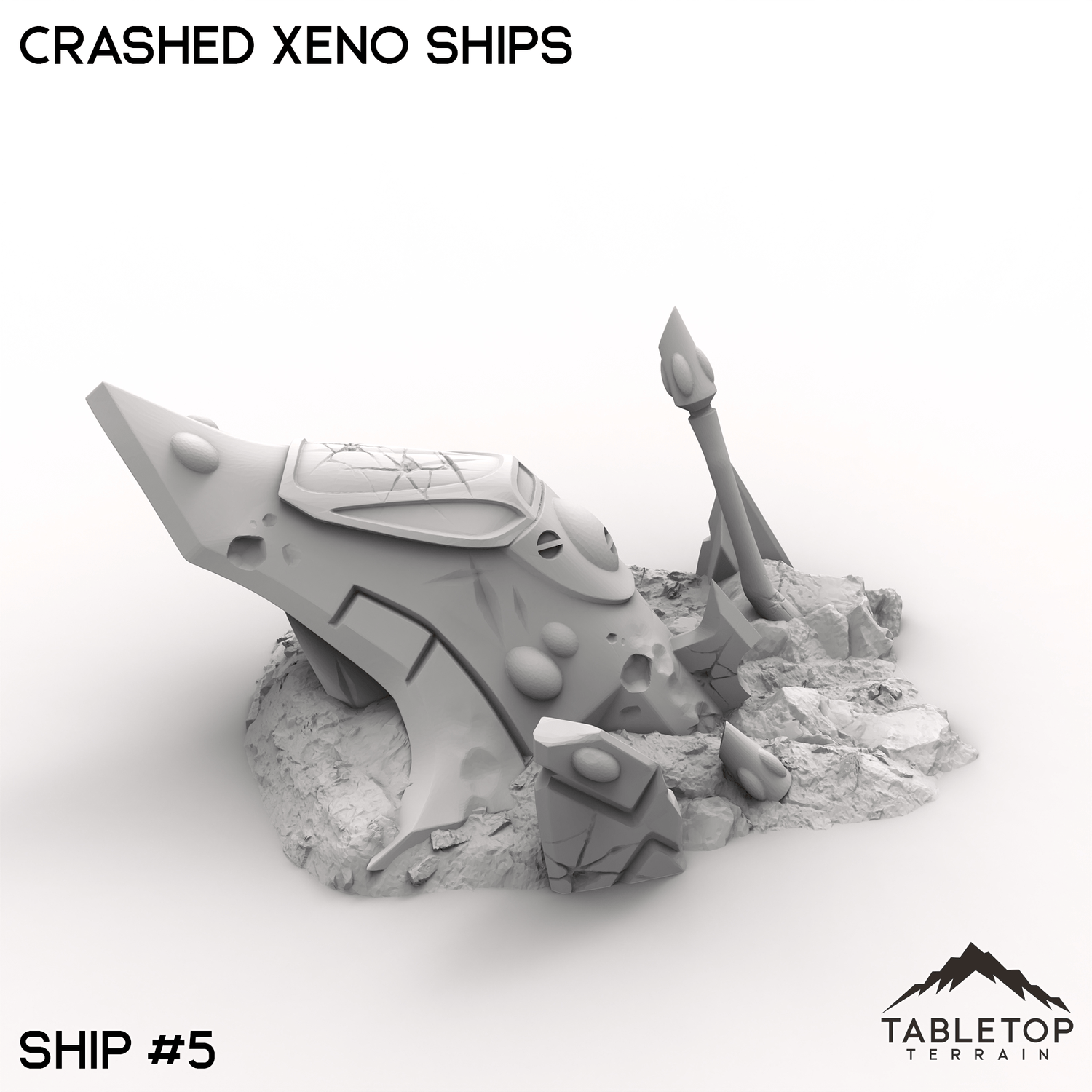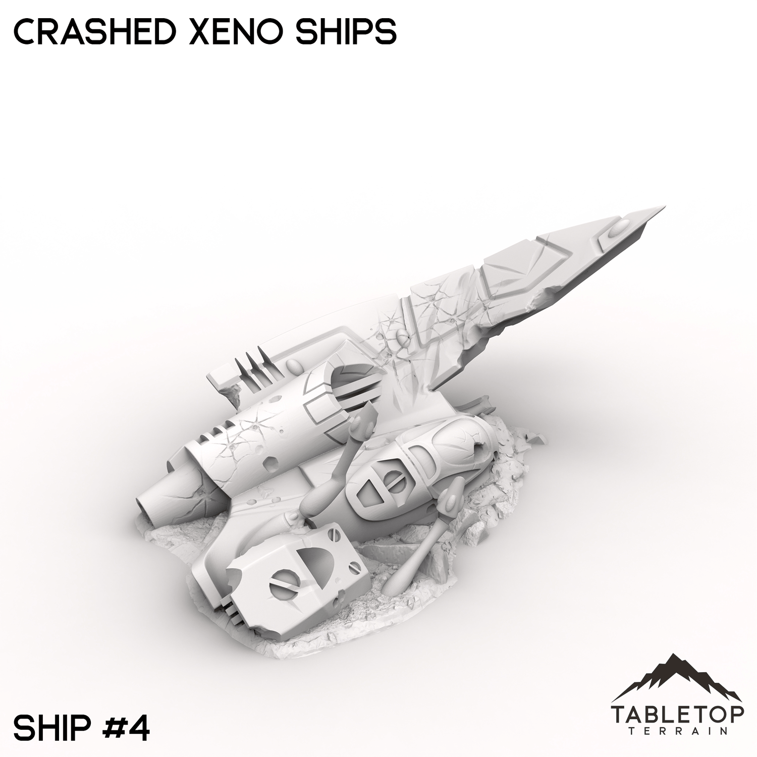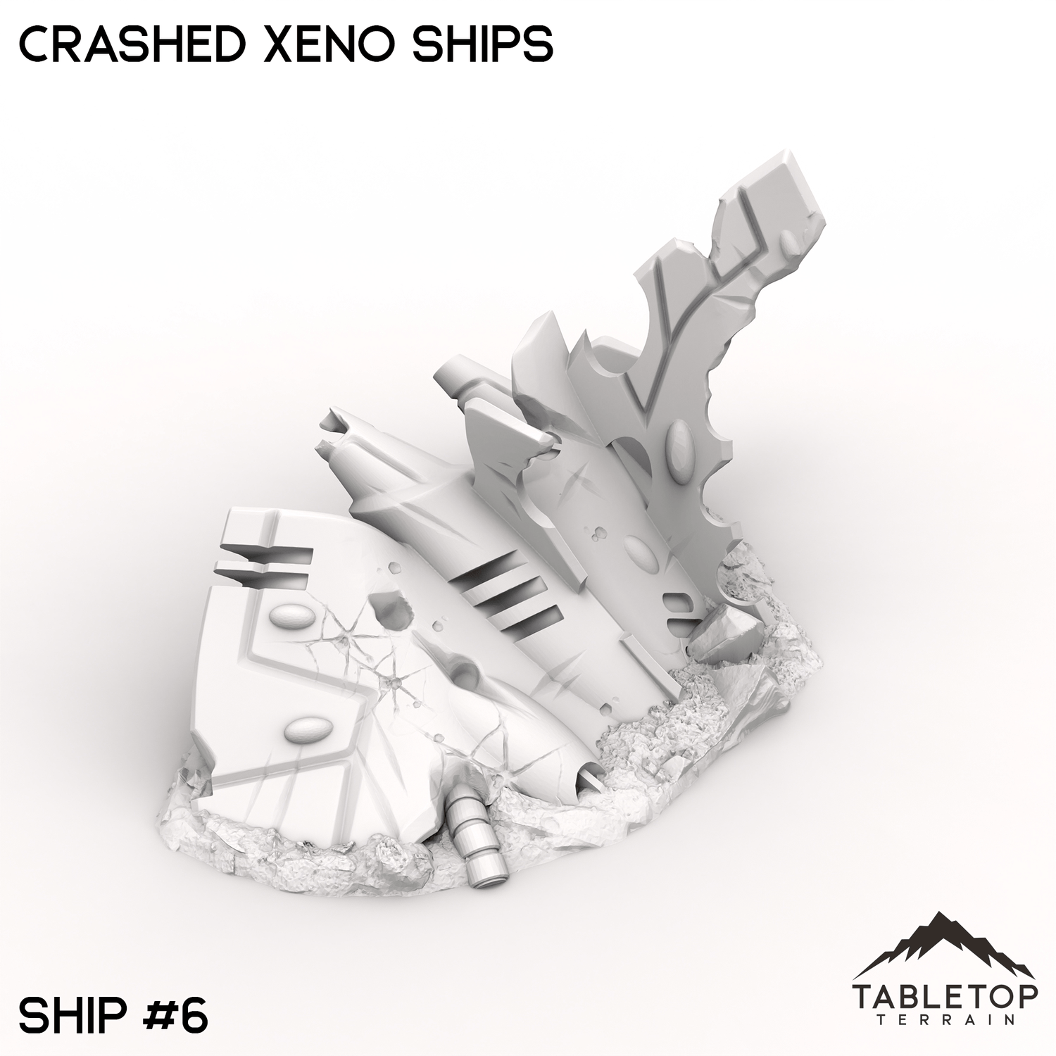 The Crashed Xenos Ships lie half-buried in the sand, their twisted metal hulls battered by a violent descent. Jagged fractures and ruptured plating expose the alien vessel’s mysterious inner workings, now entangled with the desert’s relentless grasp. Buy each piece individually or the whole set at a discount!