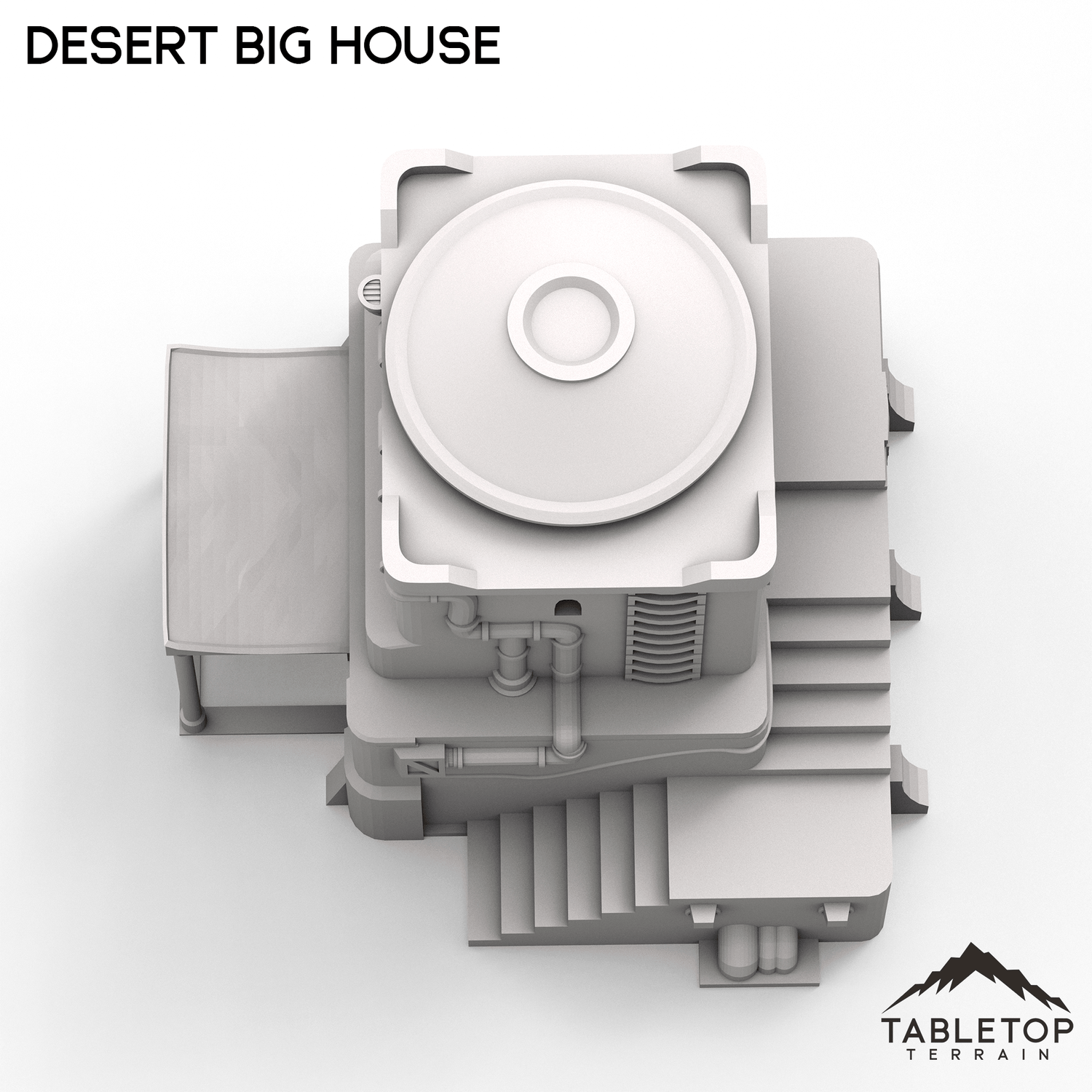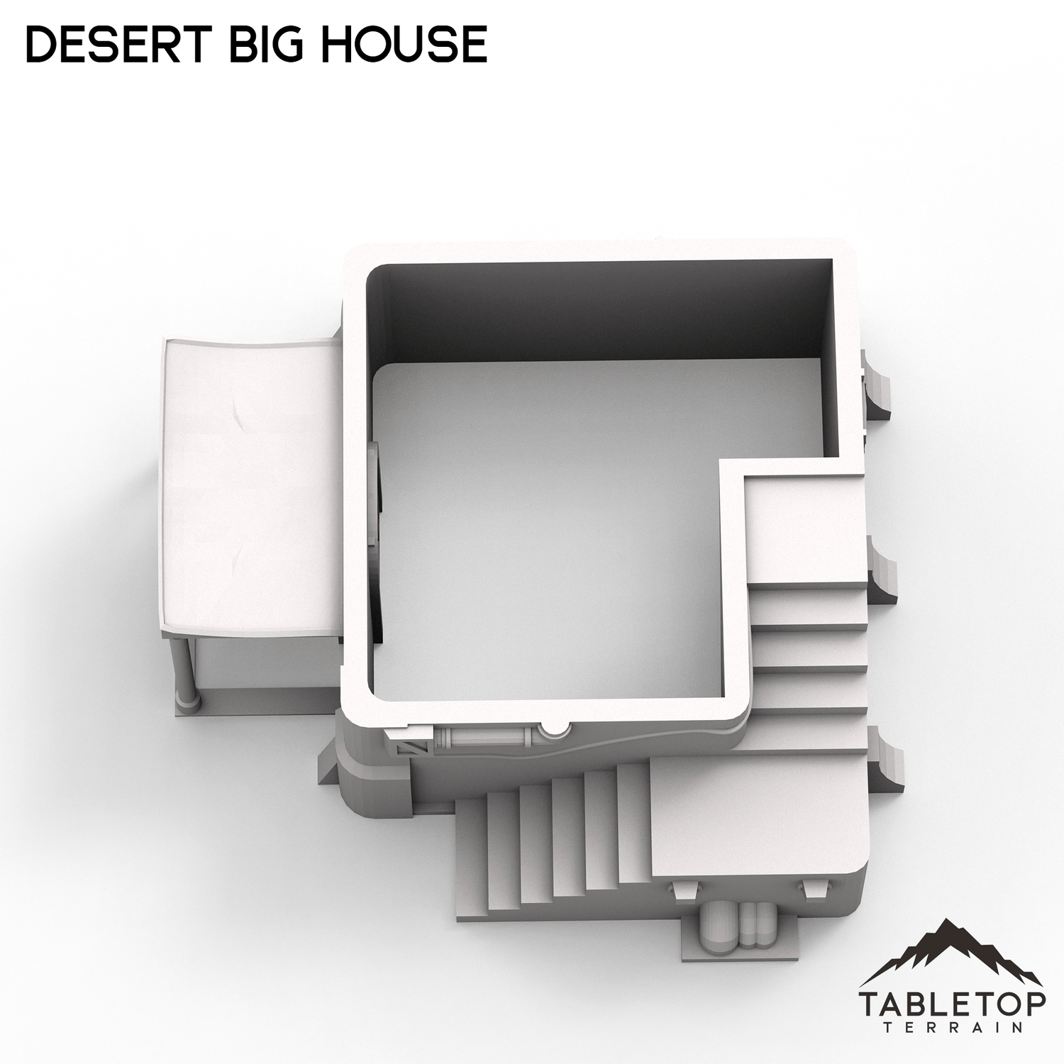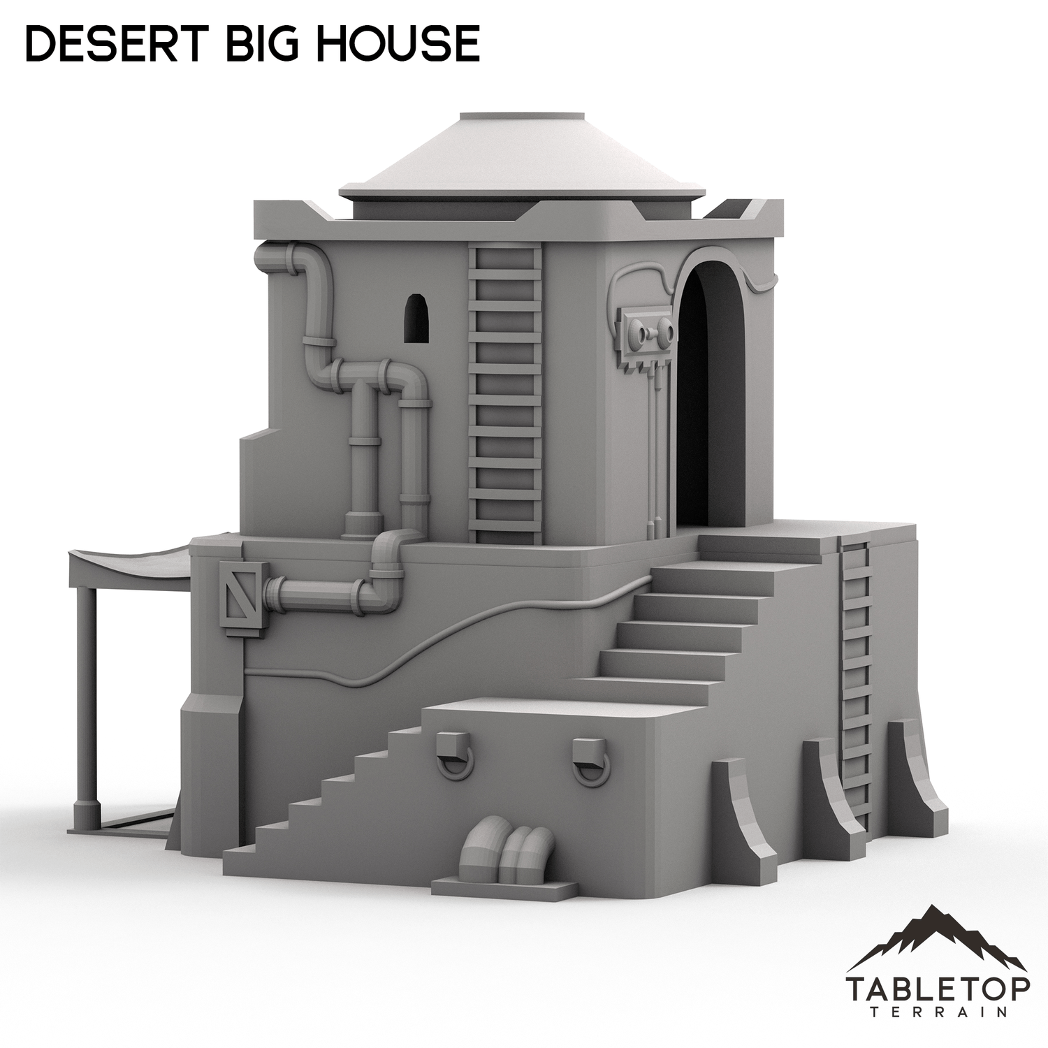 The Desert Big House is a two story building with exterior stairs and awning. The size is perfect for creating variety in a townscape, or holding a larger number of units inside. The house is printed in 40mm, 28-35mm (1:47), 20mm, and 15mm scale. We recommend the 40mm scale for Shatterpoint and the 28-35mm (1:47) scale for Legion.