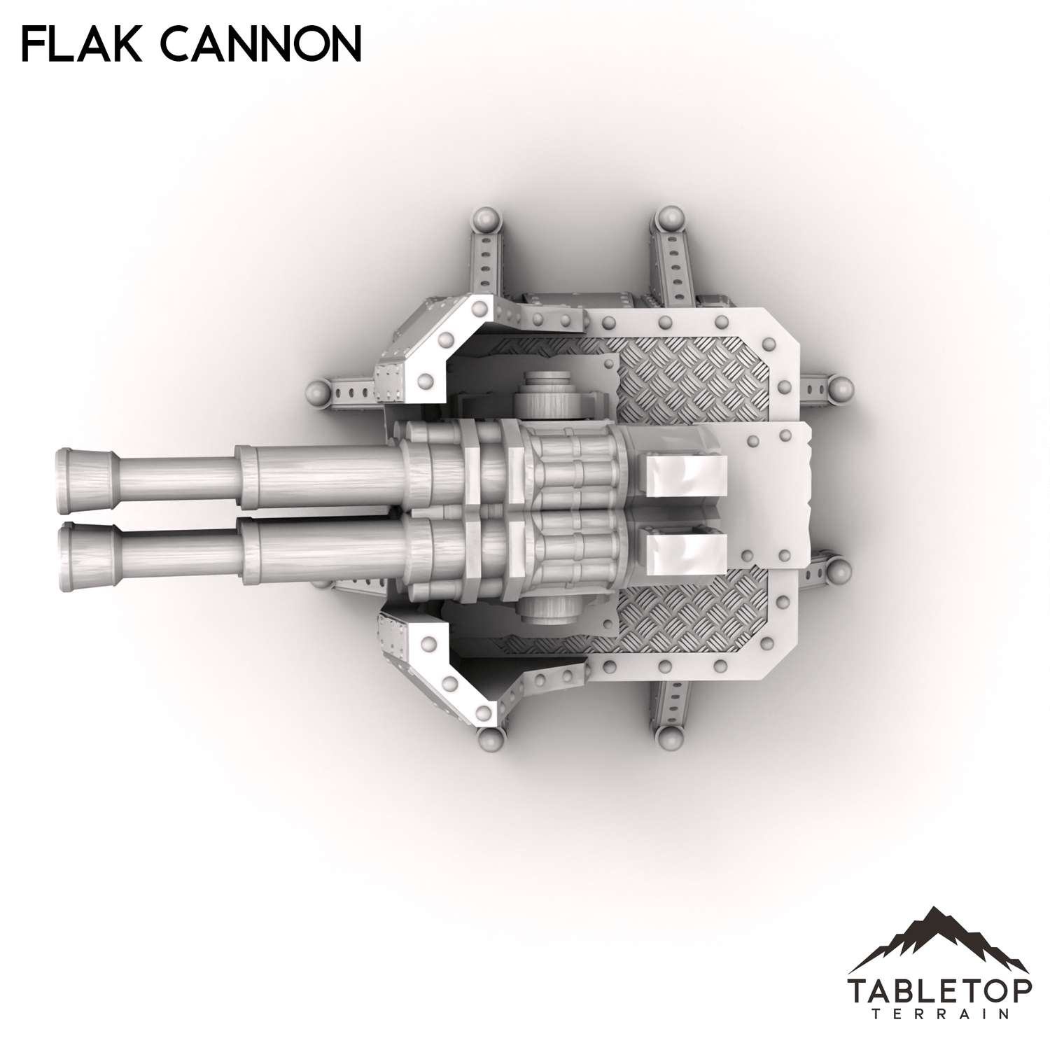 Unleash the devastating power of the Flak Cannon upon your foes! Once a defense emplacement on the "Warpzel 1A Orbital Hulk", the Flak Cannon is just as effective against enemy troops. The cannon can be freely moved in both the vertical and horizontal axes making it a great defensive piece for any sci-fi battlefield.