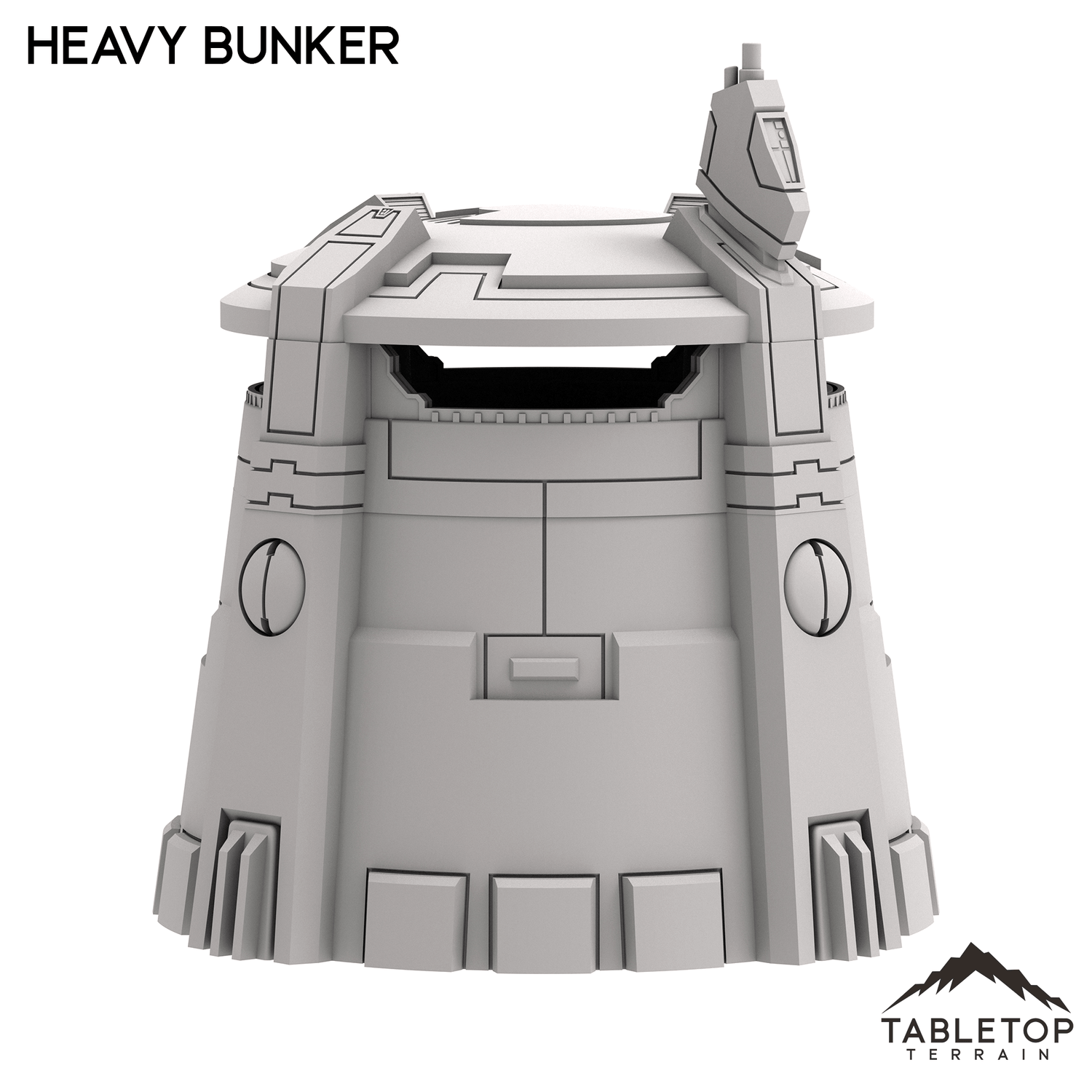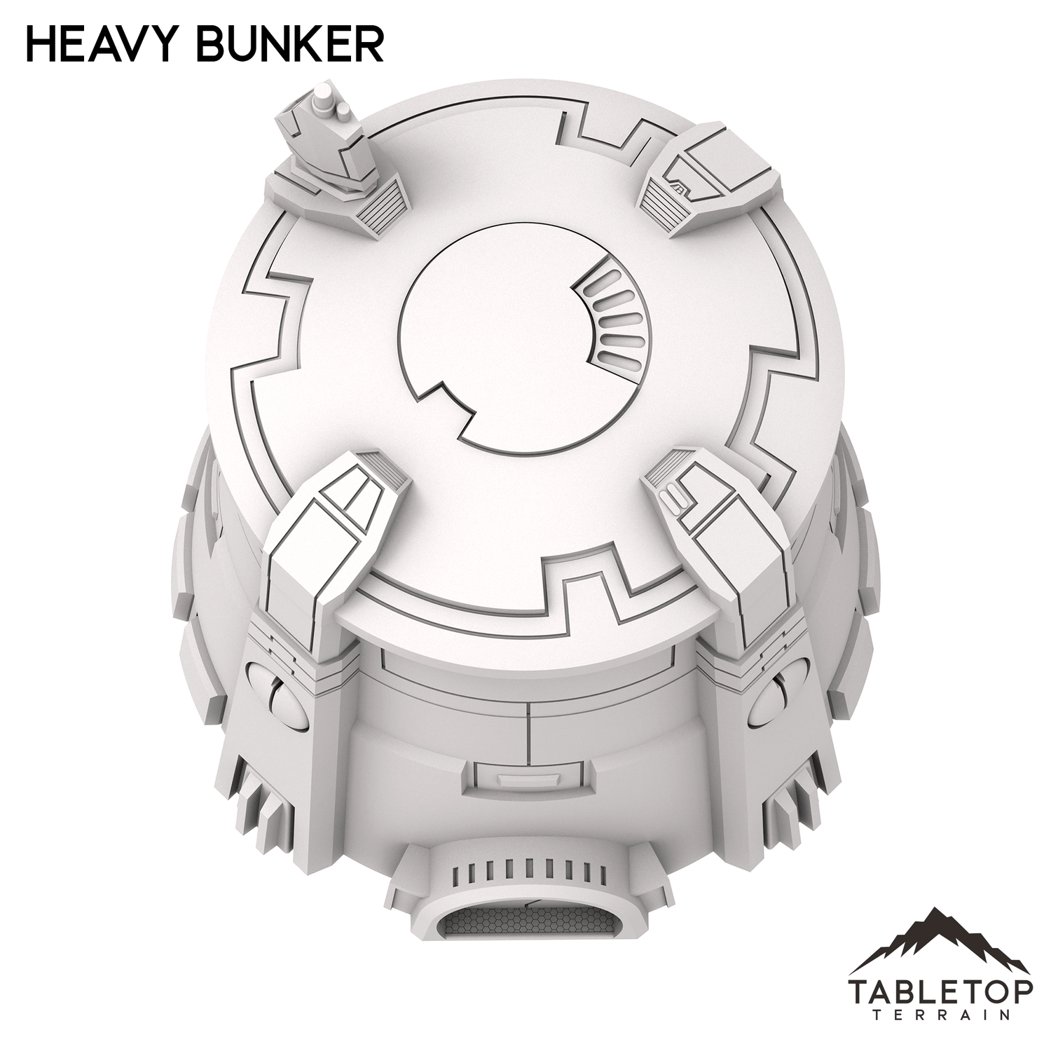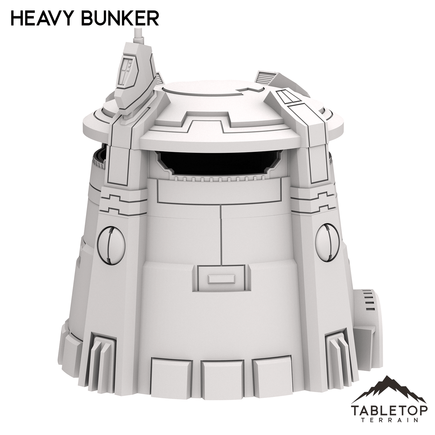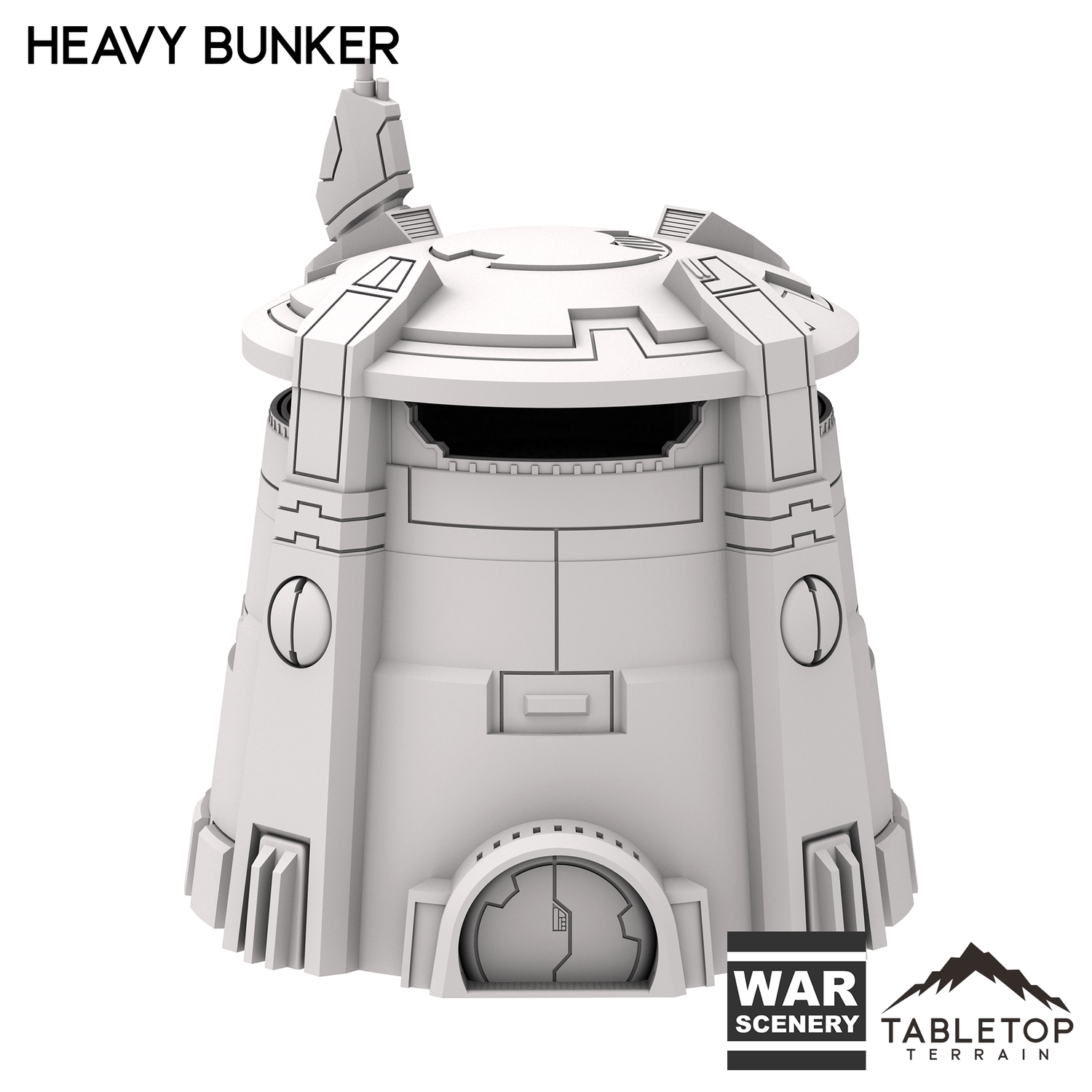 The Heavy Bunker is a large building with a front entrance and a space for units to fire from on the second floor. The first floor is not accessible but the roof is removable and it also comes with four shields you can put up in the windows to simulate a force field.