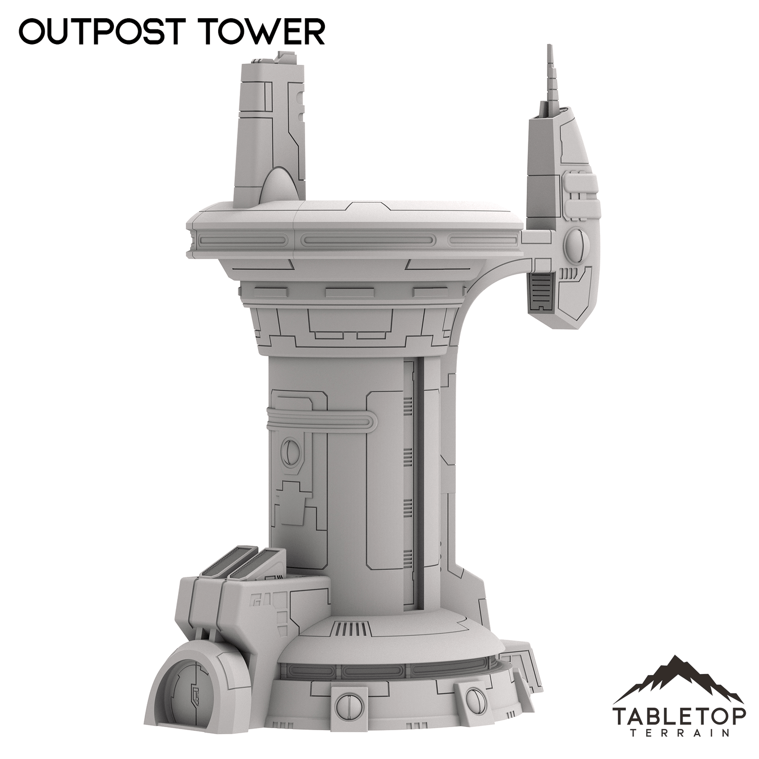 The Outpost Tower is a massive tower with lower floor external entrance and landing pad on top. This piece towers over the battlefield and makes a great centerpiece. It requires assembly and ships in pieces.