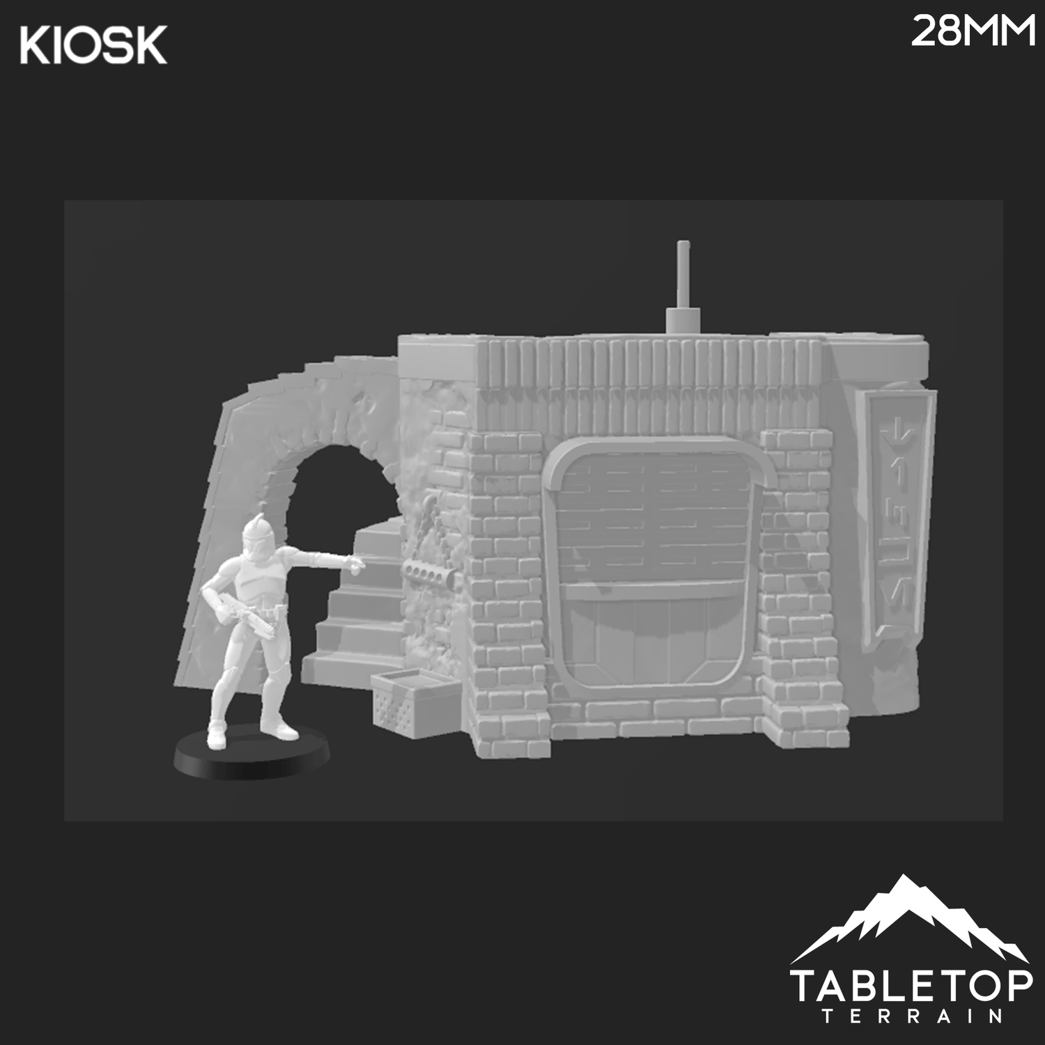 The Kiosk is a small building with external stairs and enough room to place a miniature on the upper floor. Inspired from a popular TV show from a galaxy far far away, Ord Ferrum is a full city you can now bring your miniatures to battle in. The building is printed in 32mm, 28mm, 20mm, or 15mm scale with other scales available by request. The 28mm scale is designed for Star Wars Legion. The 32mm scale can also be used but it may run a little large - see the scaled photos for comparison.