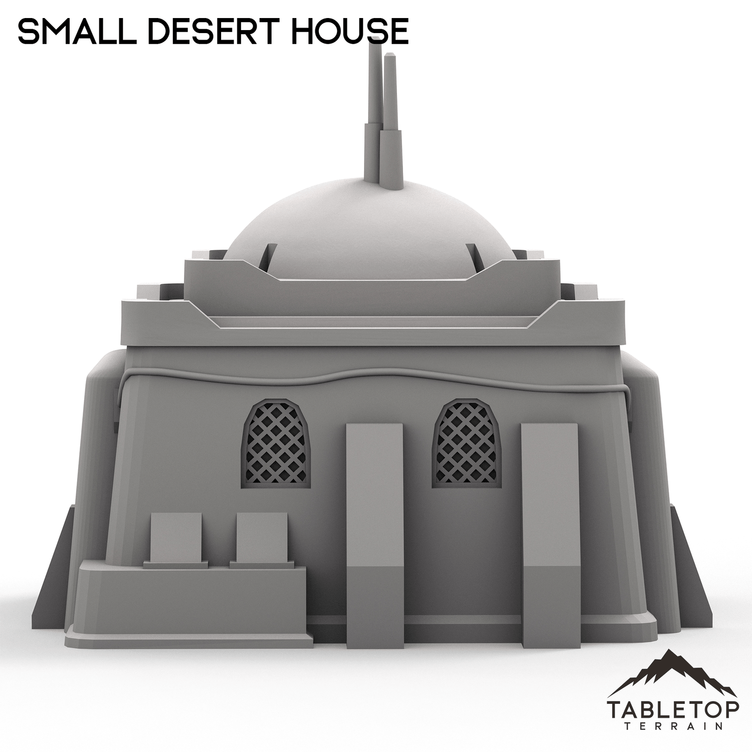 The Small Desert House is a single level building with a dome shaped roof. The House is printed in 40mm, 28-35mm (1:47), 20mm, and 15mm scale. We recommend the 40mm scale for Shatterpoint and the 28-35mm (1:47) scale for Legion.