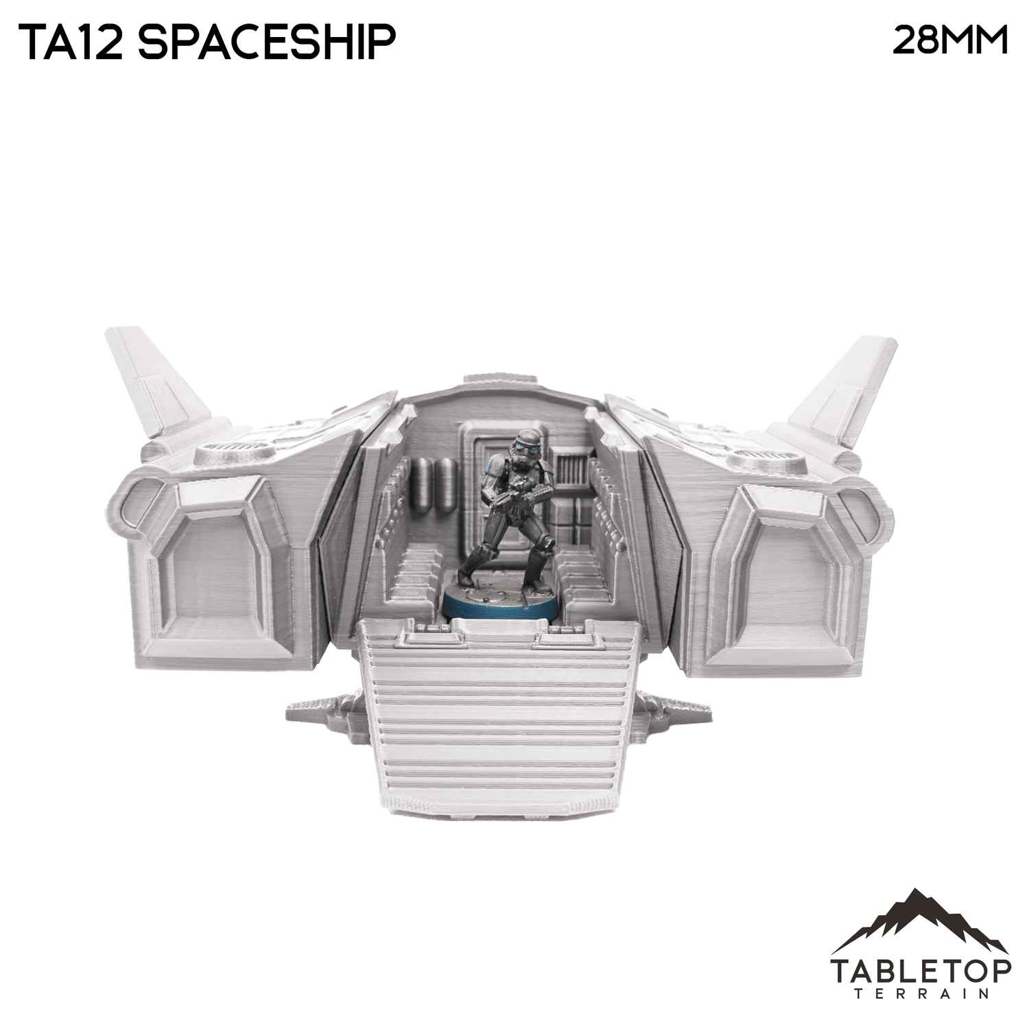 The TA12 Spaceship would be an ideal troop transport or cargo vessel, it has a cargo ramp for easy entrance and loading. It would work great for Star Wars Legion or other Sci-Fi games. The Spaceship is printed in either 28mm or 15mm scale with other scales available by request. The 28mm Scale is designed for Star Wars Legion.