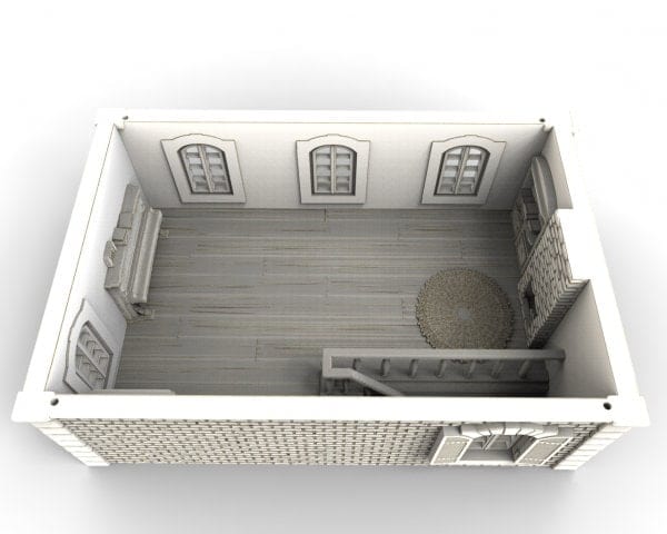 In 28mm scale, the house shop measures 162x108x160mm / 6.4x4.3x6.3 inches