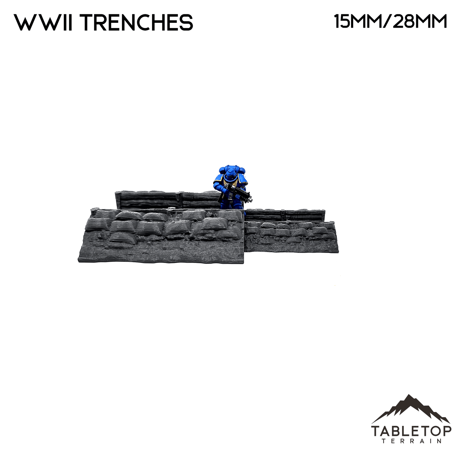 The WWII trenches are terrain sets containing various trench set ups. These trenches are made to be used in WWII tabletop wargames such as Bolt-Action, Flames of War, or Fields of Glory. It is available to be 3d printed in either 15mm, 20mm, 28mm or 32mm scale in .2mm high quality resolution. Tabletop Terrain prints all of Printable Scenery's items with their own recommended quality and resolution items.