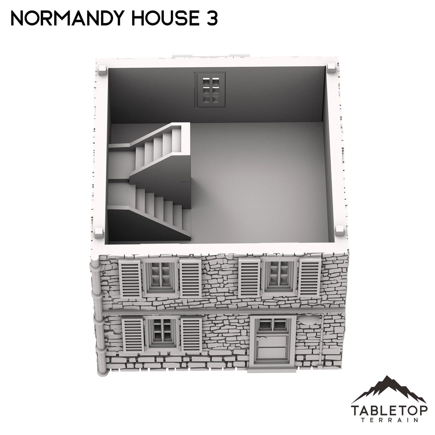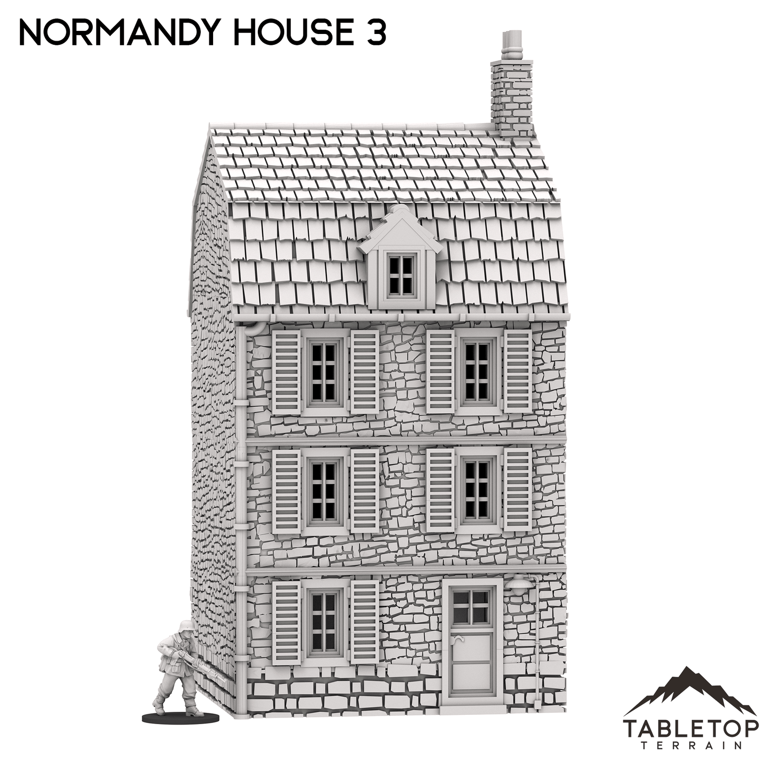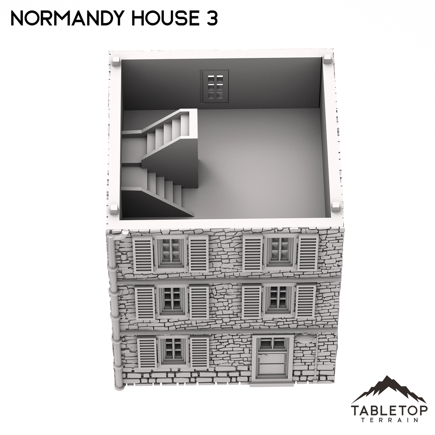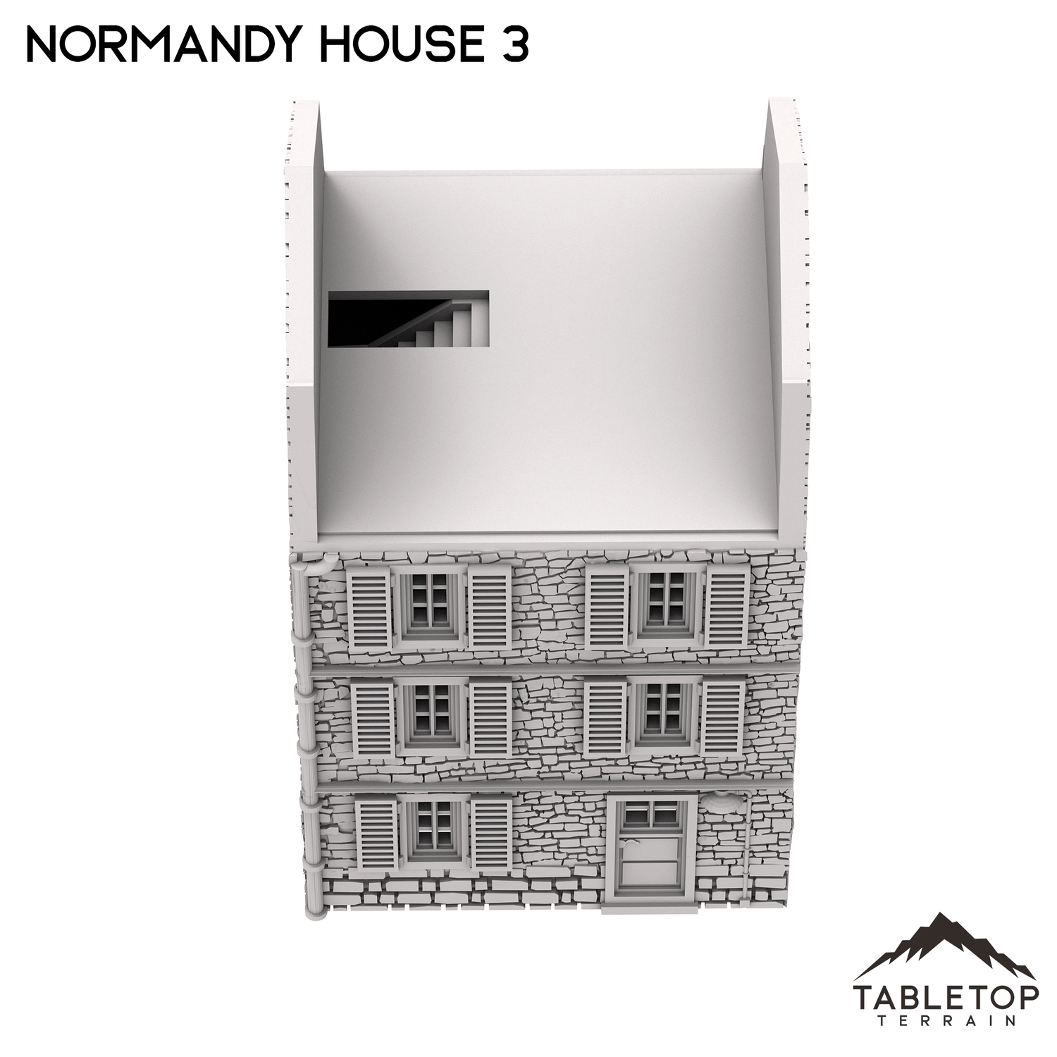 This Normandy Townhouse is a multi-floor stackable building with removable roof and enough room for miniature placement inside each level. View our "Normandy Town Square Pack" to see the full city street with a built-in discount on the entire pack.