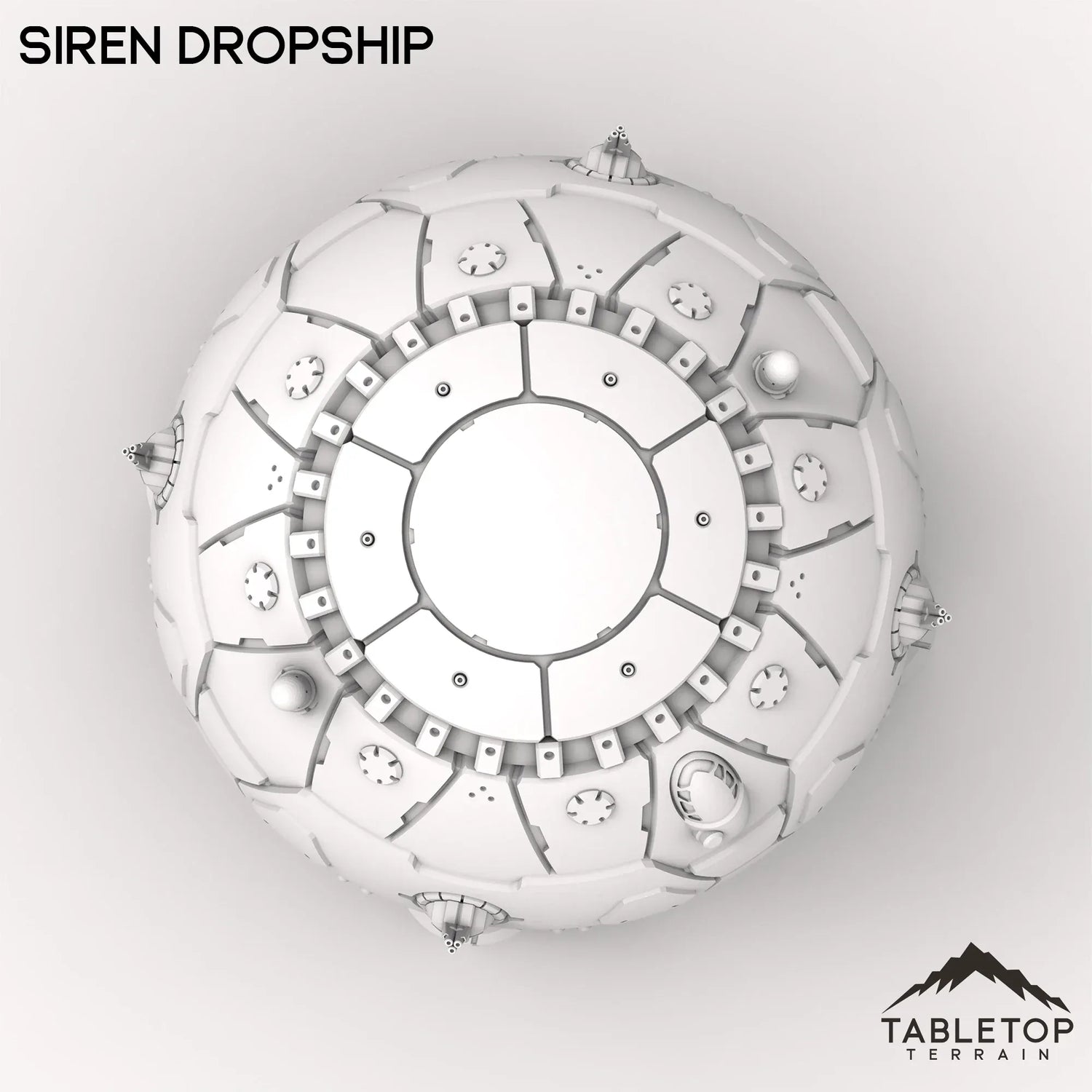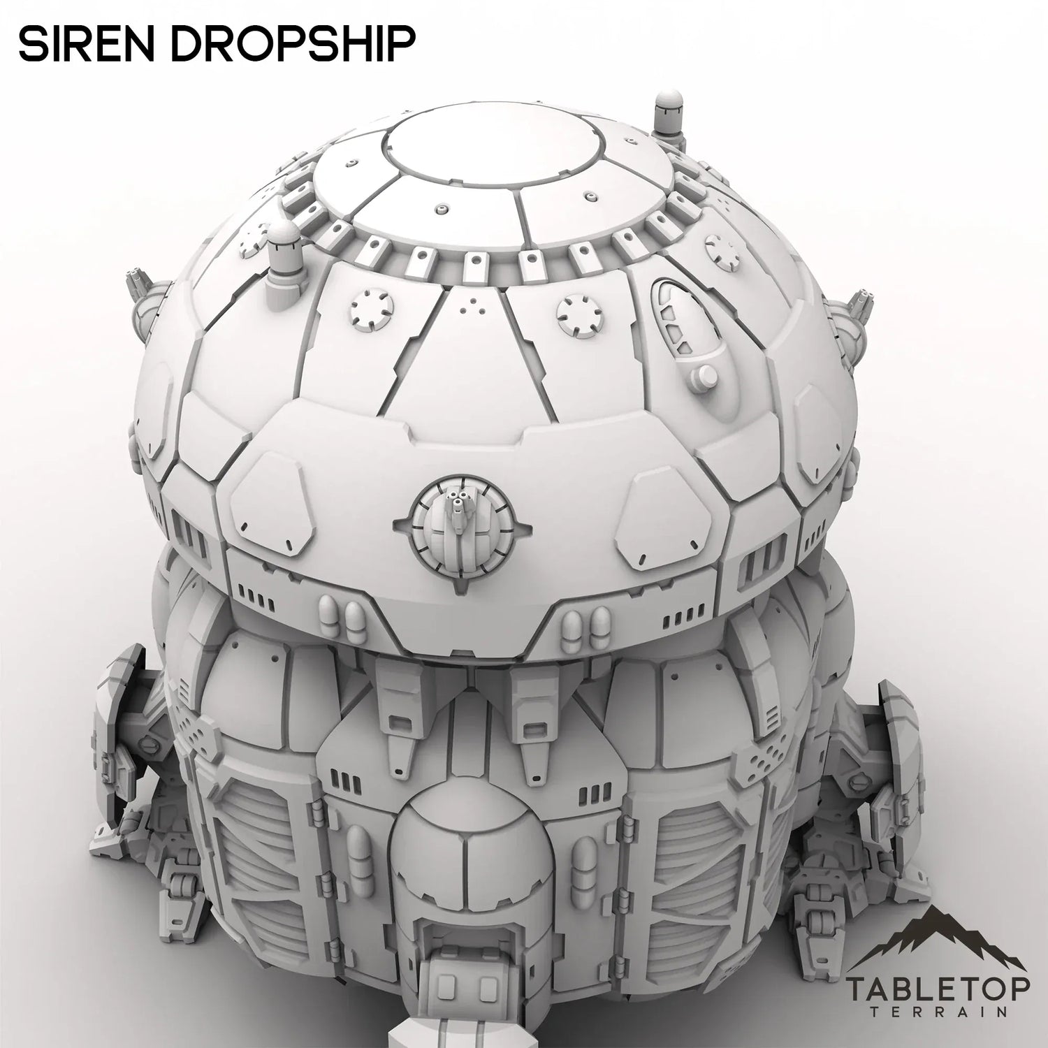 The Siren is a classic, the first dropship able to carry your mechs into battle. Although rarely seen in active use today, the ship's design would go on to inspire and direct how many of the later dropships would come to be constructed. Extended legs, rotating guns, and stylized walls to show off where the doors for the dropship are, the set is made to be easy to paint and easy to store. This set is scaled for mech games and 6mm games, but could be used for a variety of sci-fi or cyber punk tabletop games if you'd prefer.