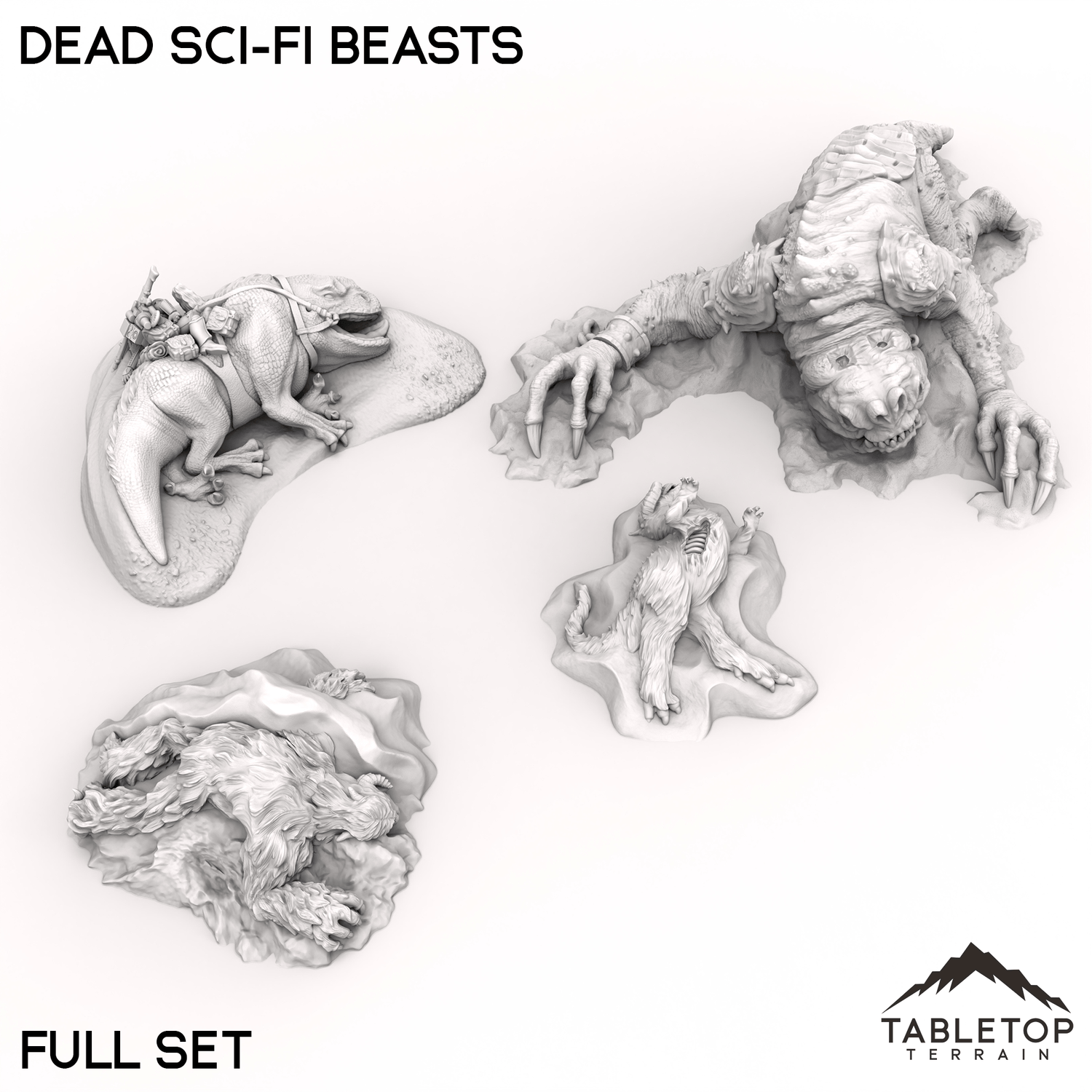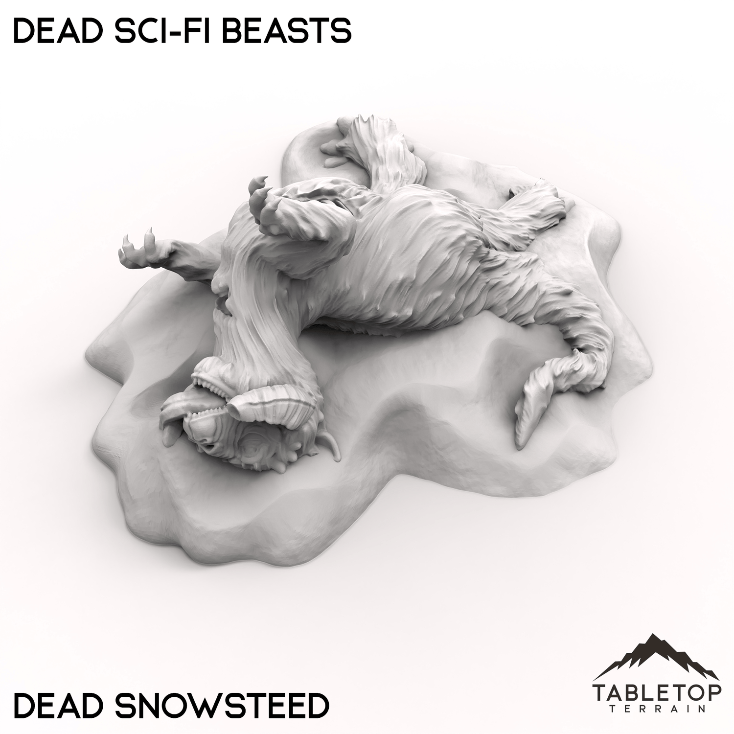 Dead beasts lie scattered across the frozen wasteland, their bodies a haunting testament to a recent battle. Signs of a brutal battle litter the ground, with shattered crates and scattered supplies strewn between the fallen creatures. Buy each one individually or the whole set at a discount