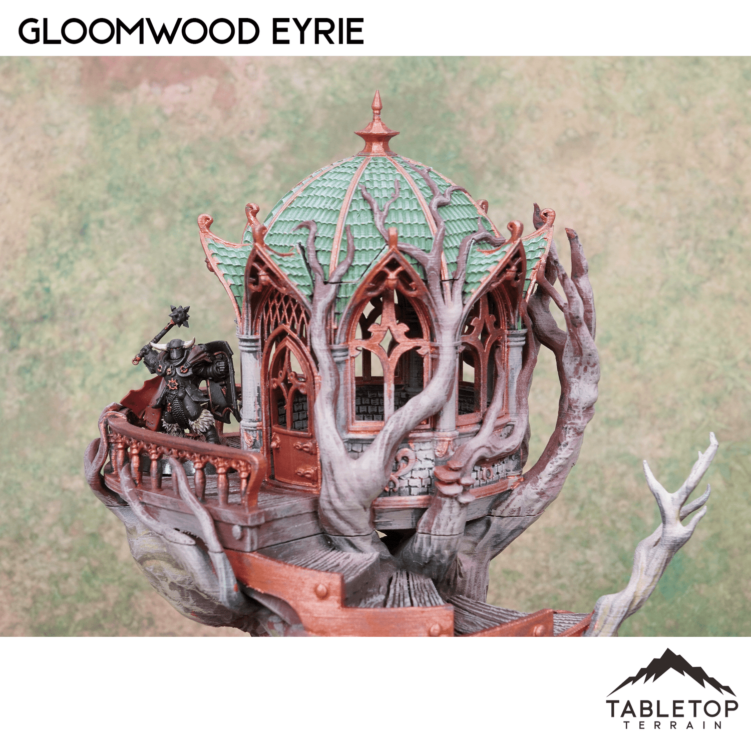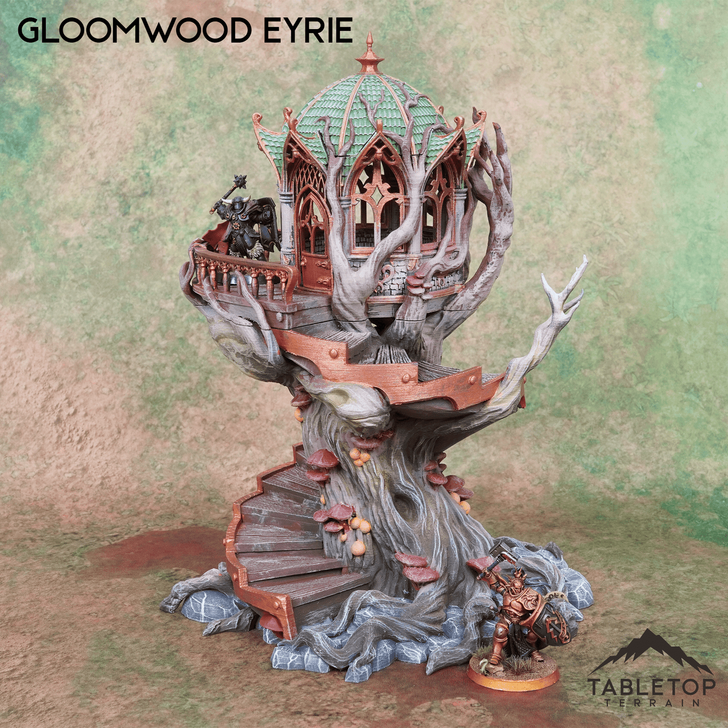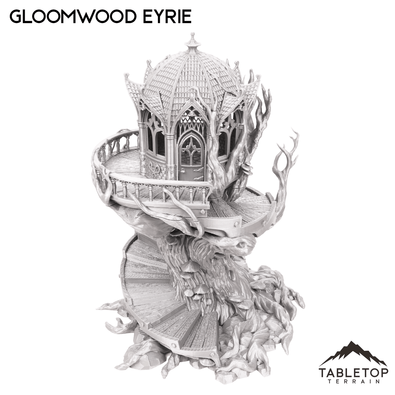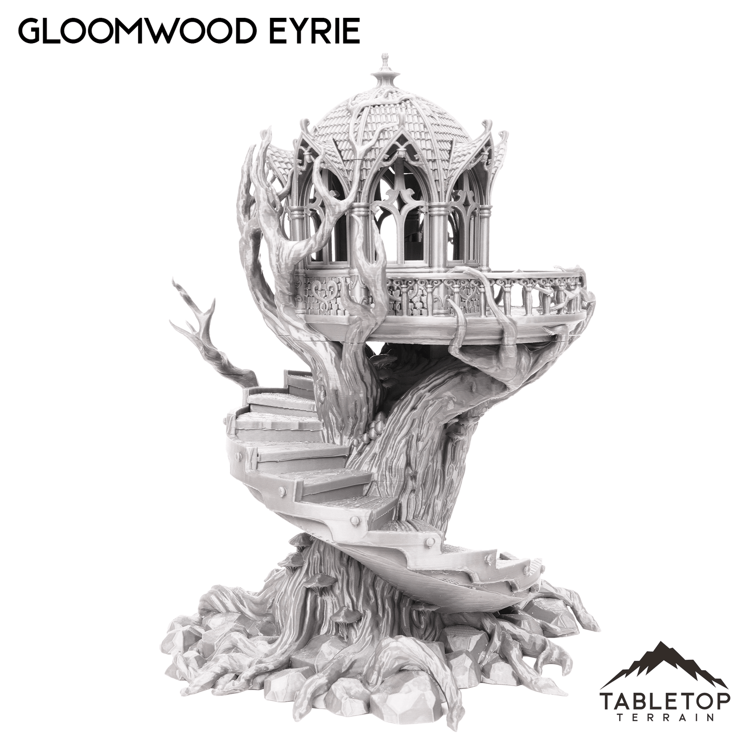 The Gloomwood Eyrie is an Elven, fantasy styled treehouse that features a removable roof and floor, along with a functioning door. The eyrie would be perfect for fantasy games such as Dungeons and Dragons (DND), Age of Sigmar (AoS), Pathfinder, Frostgrave, or Conquest.