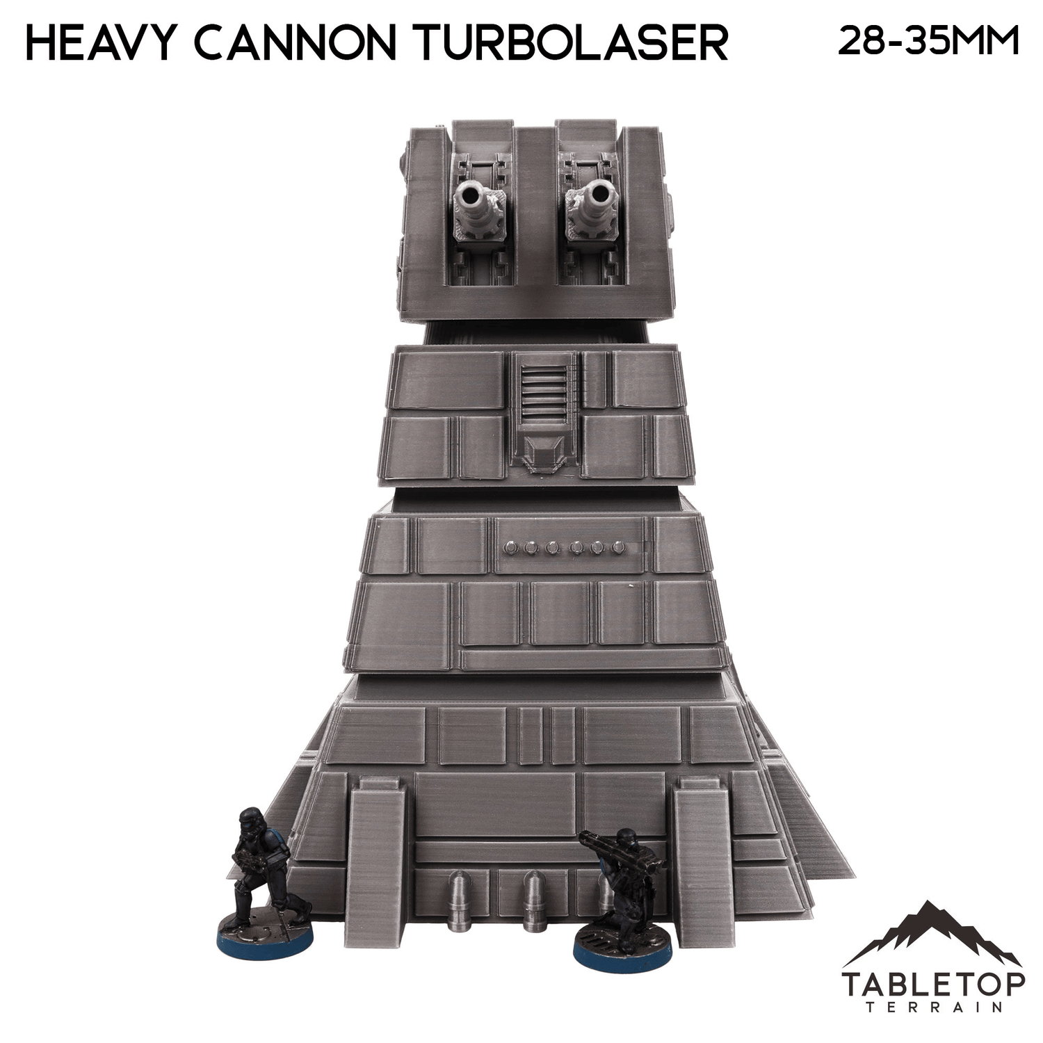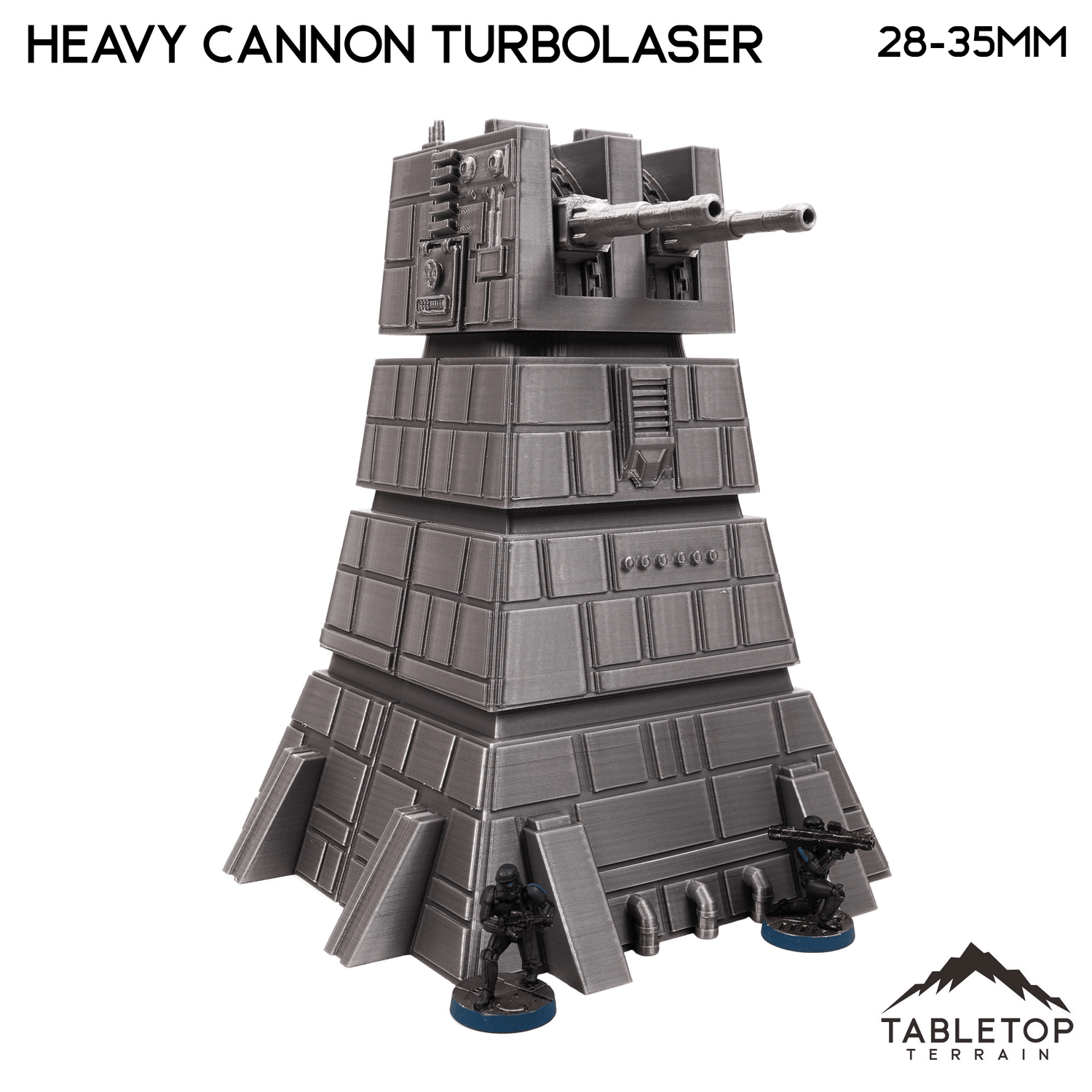 The Heavy Cannon Turbolaser is a large 6 piece defensive fortification. An iconic and instantly recognizable design, this classic Star Wars mainstay is perfect for any game night. The tower is printed in 40mm, 28-35mm (1:47), 20mm, and 15mm scale. We recommend the 40mm scale for Shatterpoint and the 28-35mm (1:47) scale for Legion.