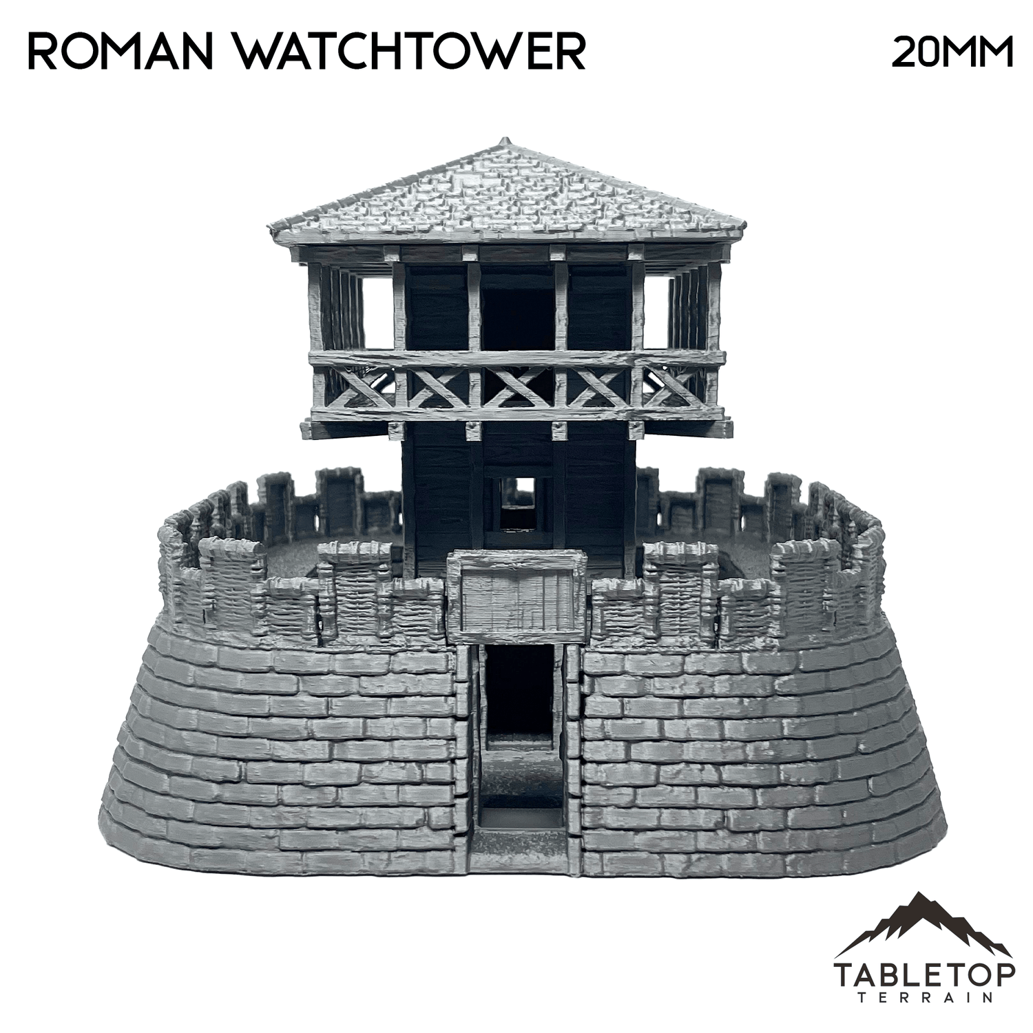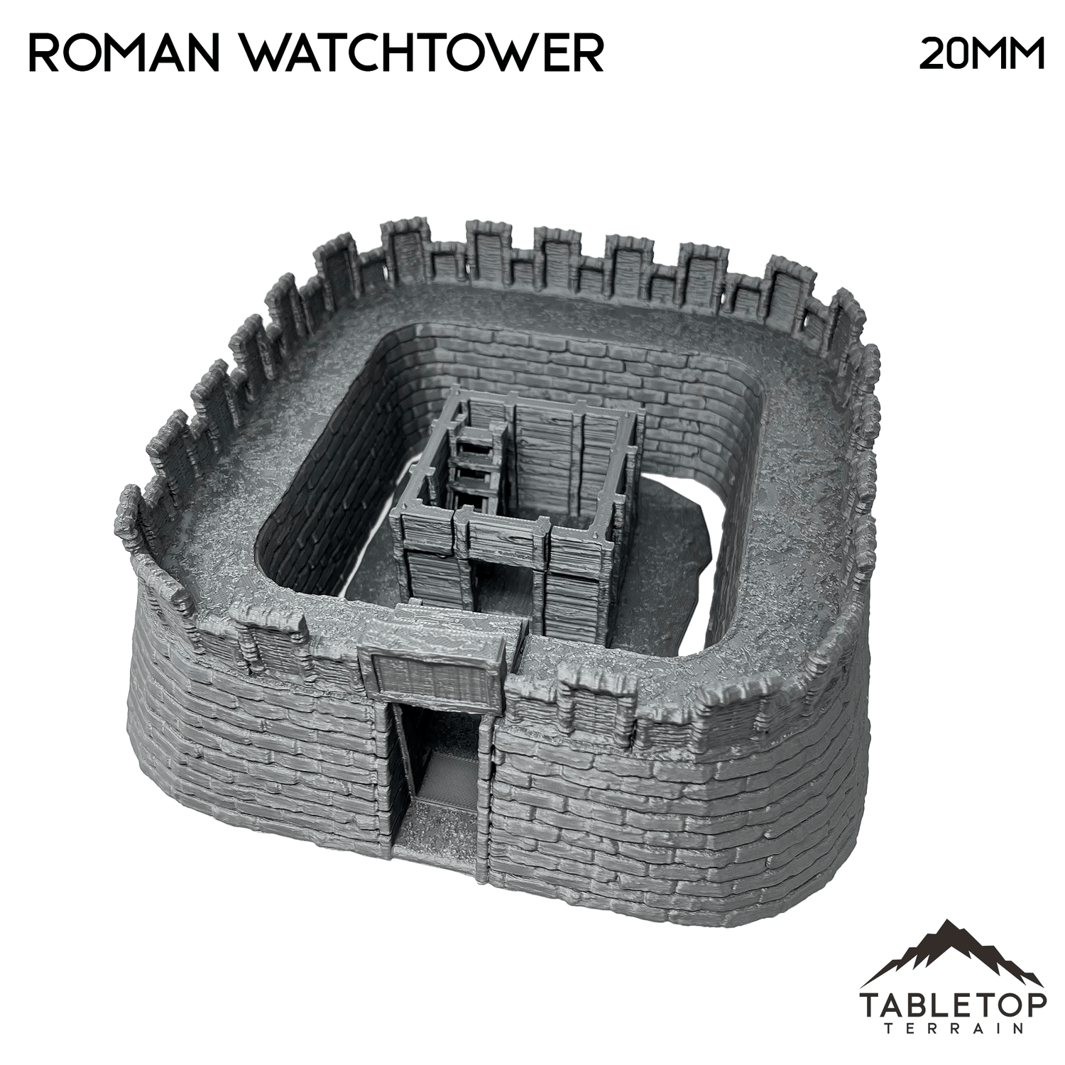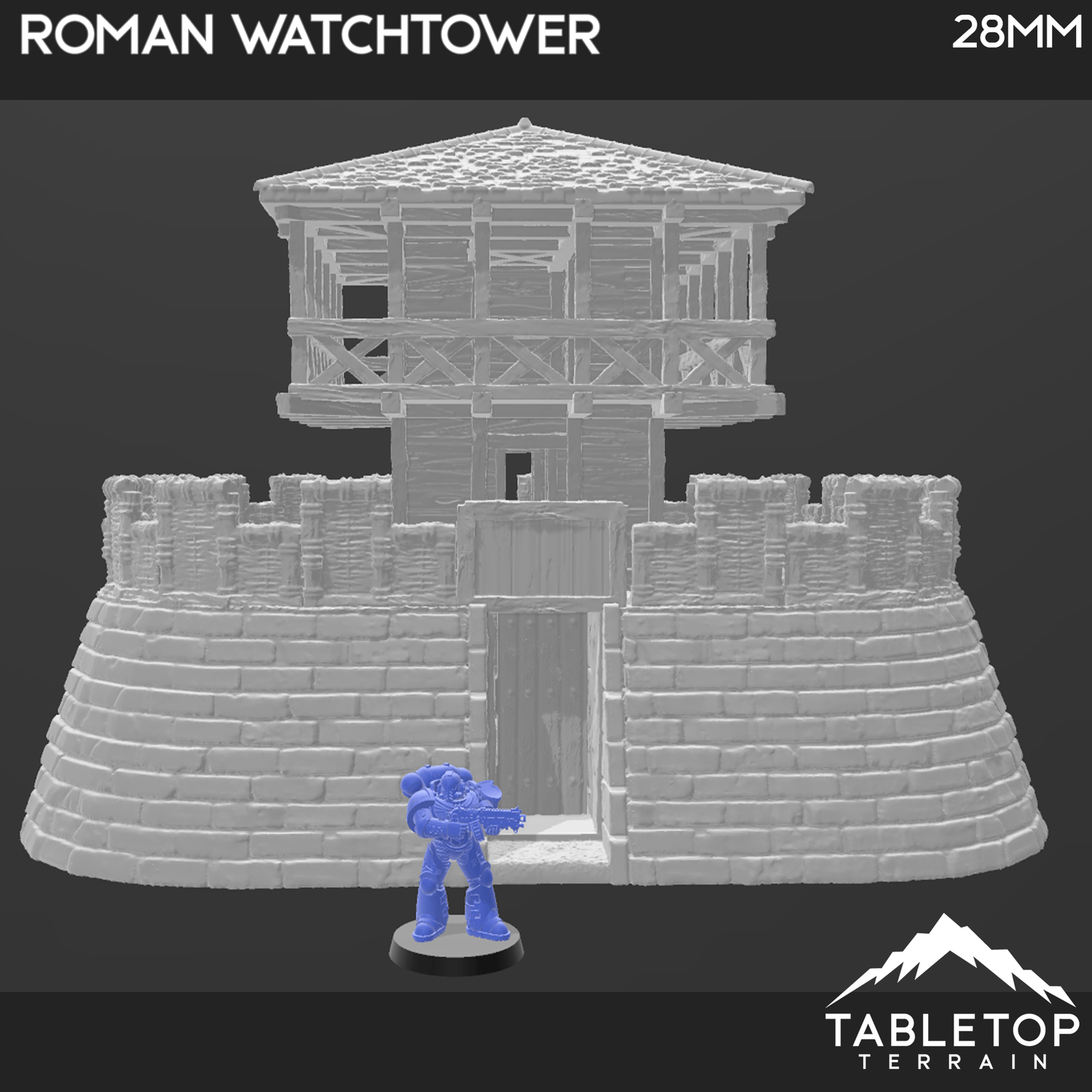 The Roman Watchtower has an external battlement, gate, and watchtower with 3rd level outcrop. It's available in 32mm, 28mm, 20mm, and 15mm scales.