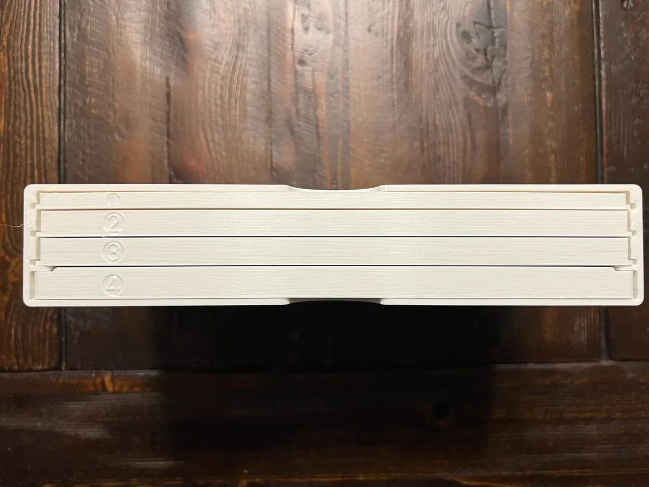 -A room tile “cabinet” with four drawers that slide out and lock in place when closed. The room tiles are never stacked more than four deep in any drawer, making it much easier to find the rooms you are looking for during setup. A big thanks to Hextra for suggesting a critical solution for ensuring that the locks work smoothly but are not too tight. There is still a fairly tight tolerance on the locking mechanism for the drawers, so if you have issues with the locking versions, I have also posted versions without the locking mechanism. Choose which one you prefer.