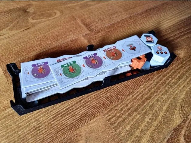 This is an organizer for the retail edition of the boardgame Carnegie but also includes the expansion. The notepad is slightly to big to fit into the spacer, so I'll either cut the edges a bit or just laminate 4 sheets and put those on top.