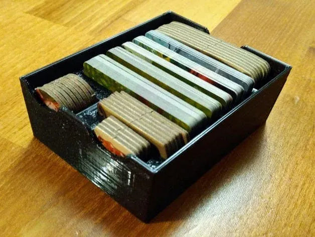 SmallCards: Holds all small cards, garland tiles, expedition start tiles, axolotl tiles, and market tiles. It does NOT fit sleeved cards because there are no sleeves that fit well enough for my taste.