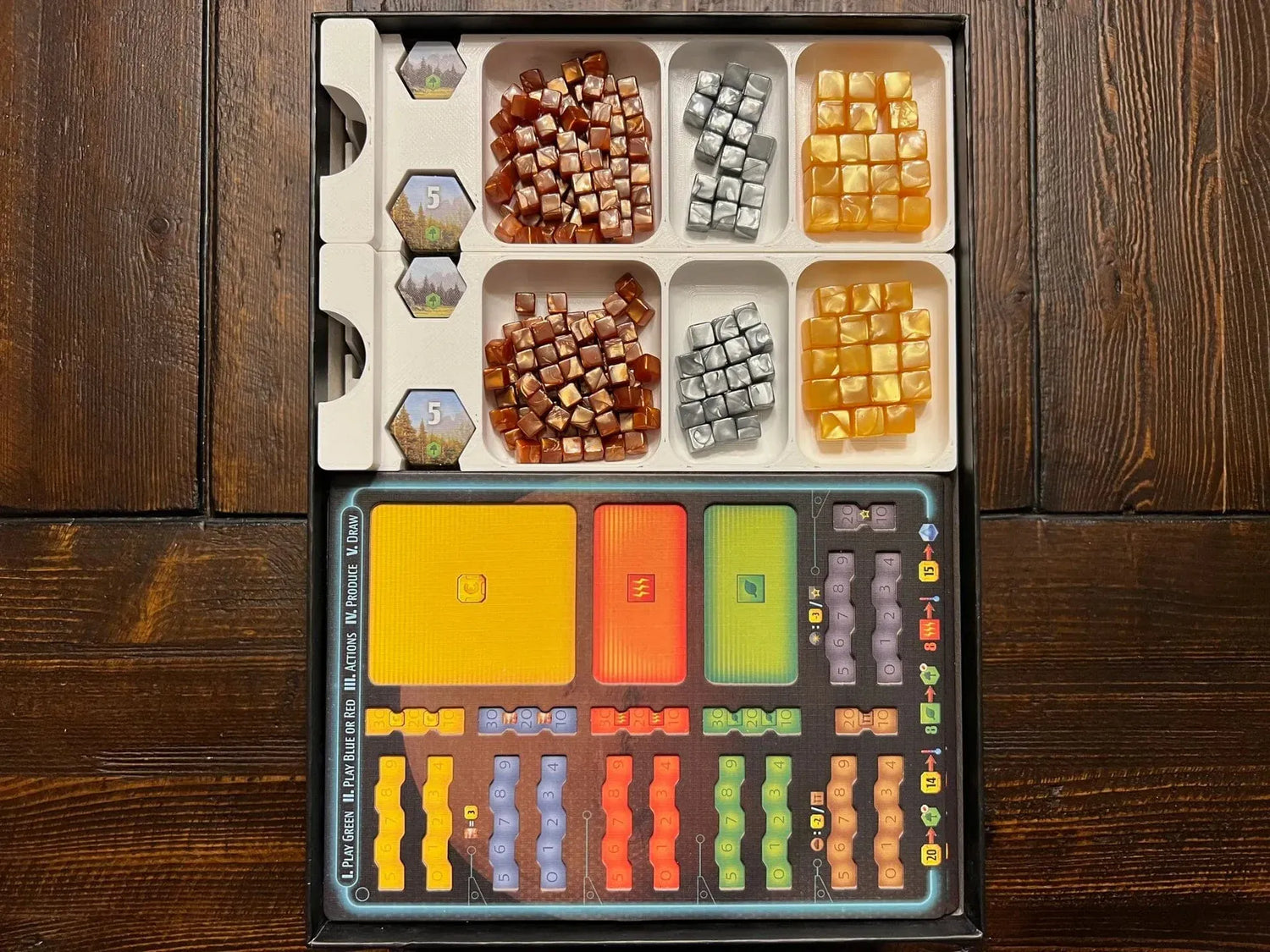 - Two MegaCredit and forest token trays. I placed these in dedicated trays so you won’t need to have expansion tokens on the table if you only want to play the base game.