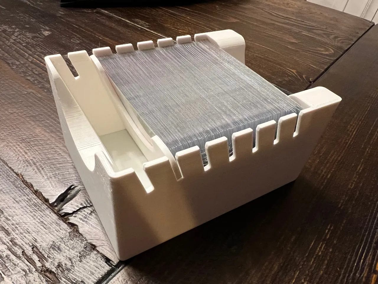 - Four separate, labeled card trays that are tall enough to accommodate the provided card dividers without bending or crushing them: