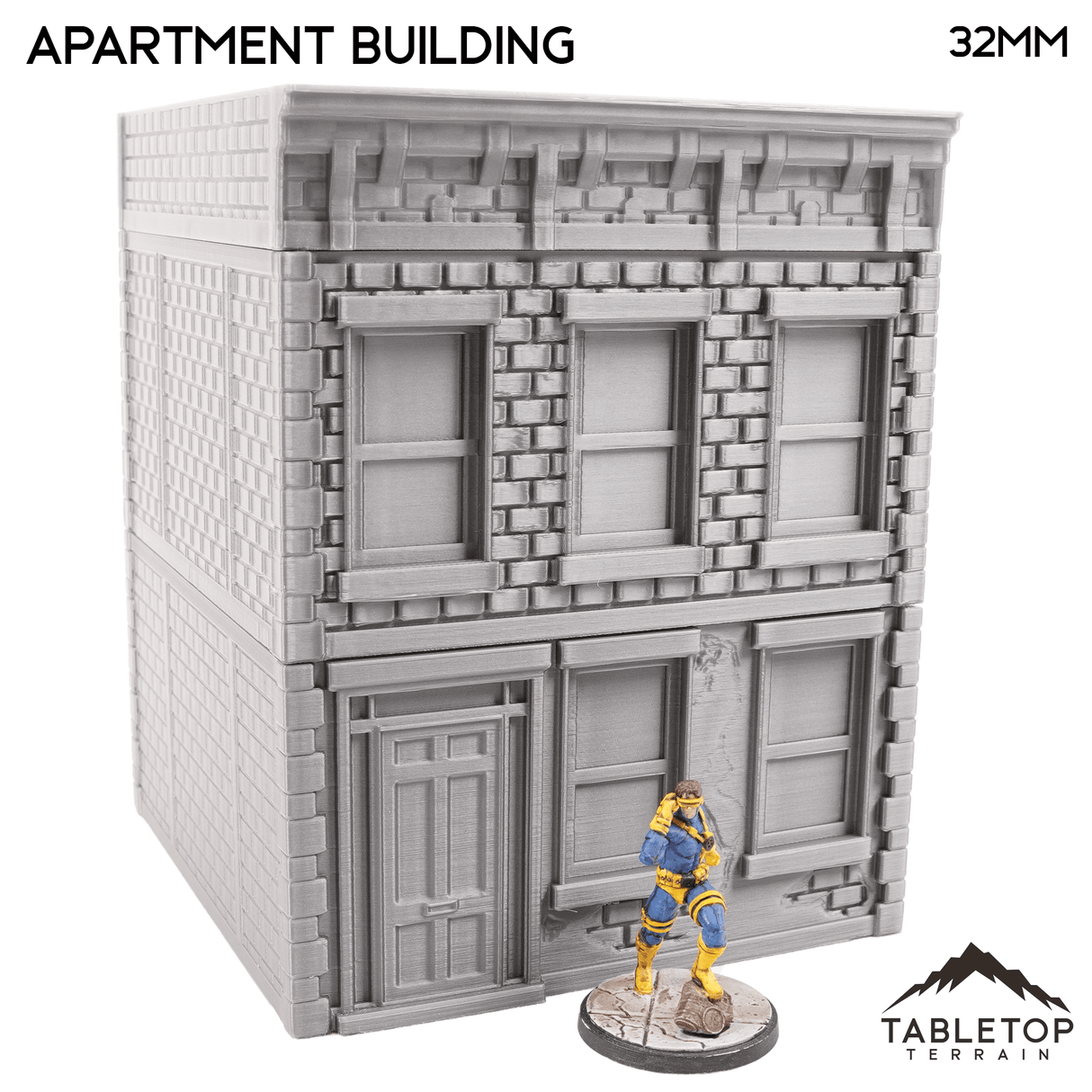 Perfect for urban hero games, the Apartment Building is a great addition to any urban-themed tabletop setting. Offering variants with a floor or without a floor, you can choose the option that best suits your needs. The variant without a floor is a hollow building with no space to place minis beyond the ground level. The set is designed for urban hero tabletop games, but can work with any genre.
