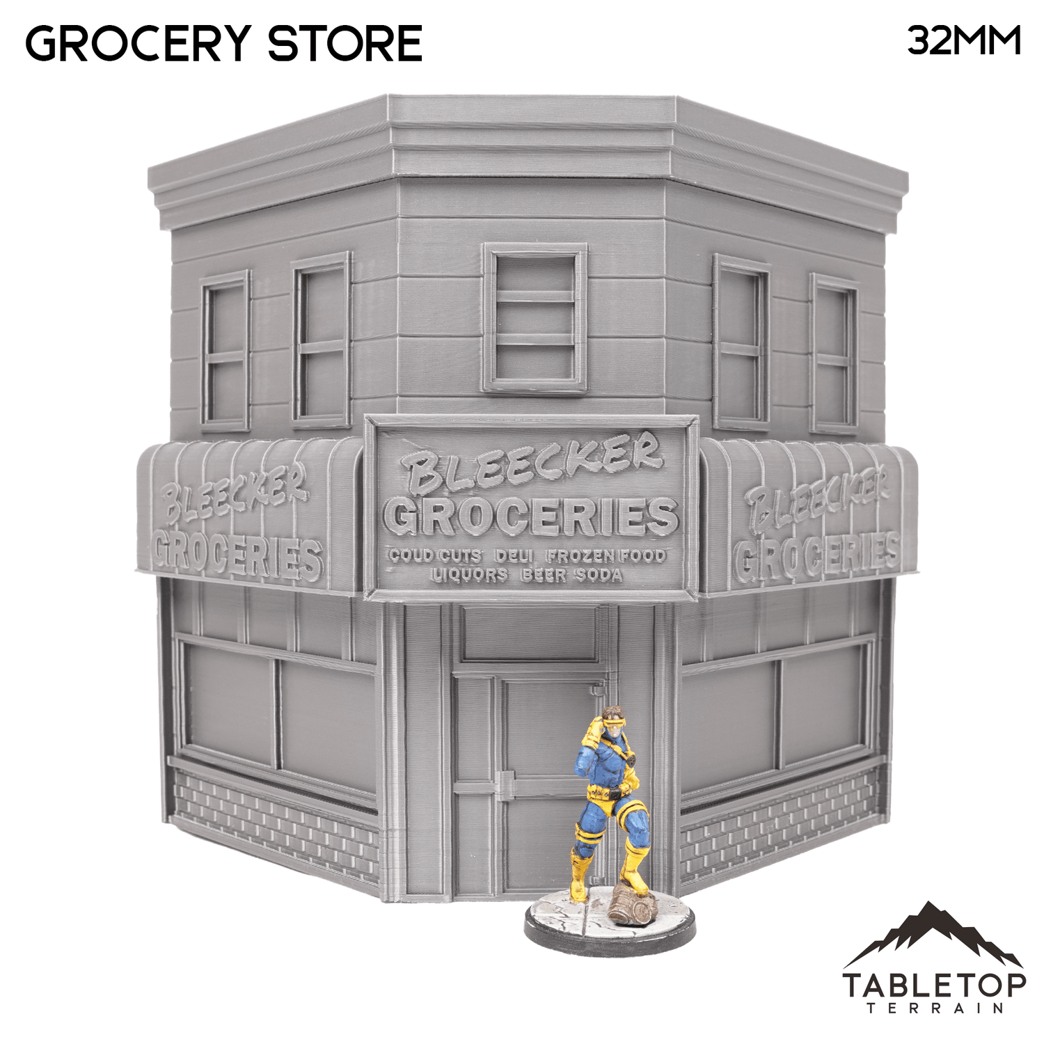 In 32mm scale, the Bleecker Street Grocery Store measures 152x153x168mm / 5.9x6.0x6.6 inches.