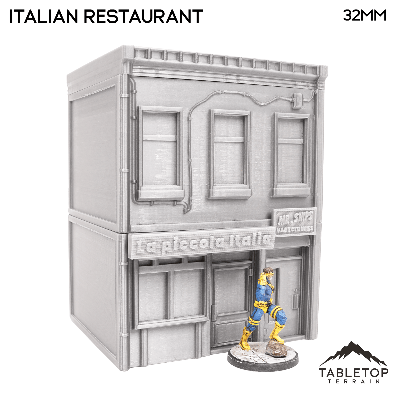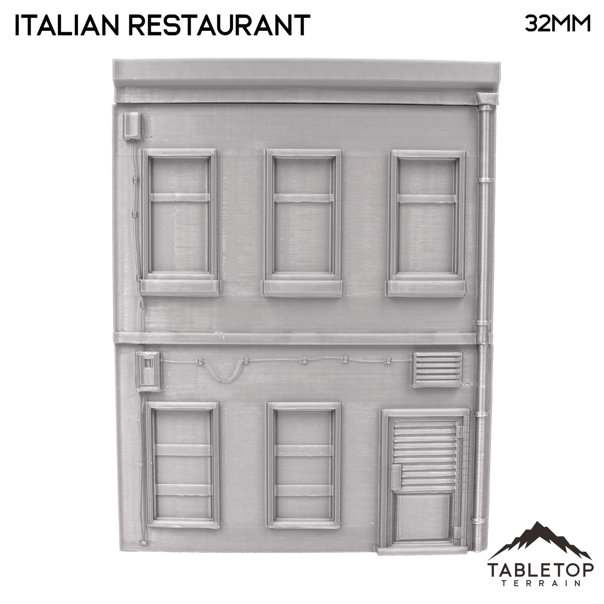In 40mm scale, the Bleecker Street Italian Restaurant measures 129x120x164mm / 5.1x4.7x6.5 inches.