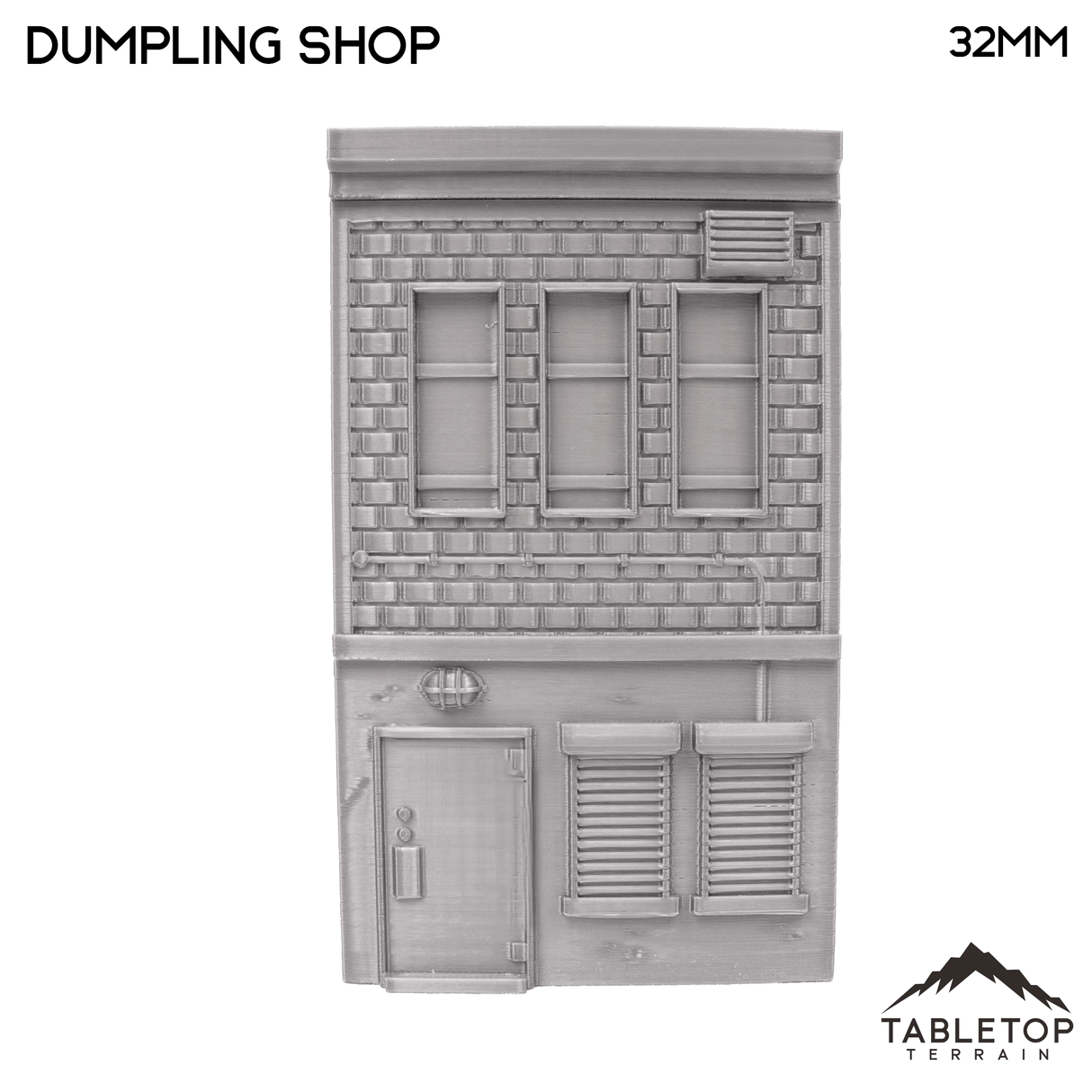 In 28mm scale, the Bleecker Street Dumpling Shop measures 76x107x128mm / 2.9x4.2x5.0 inches.