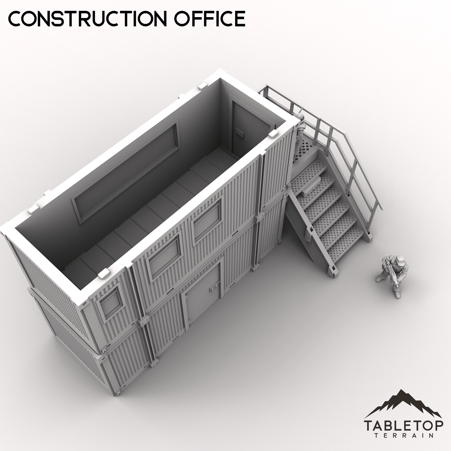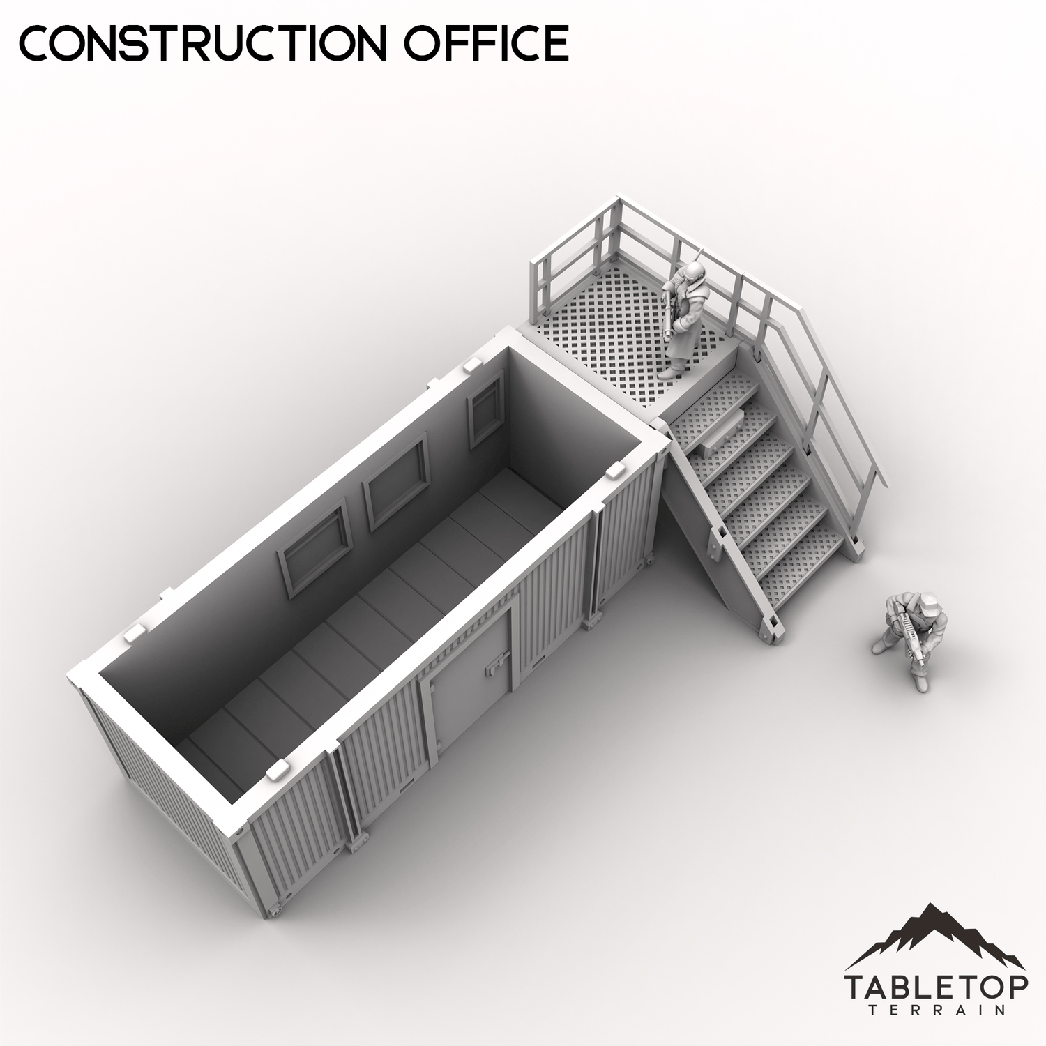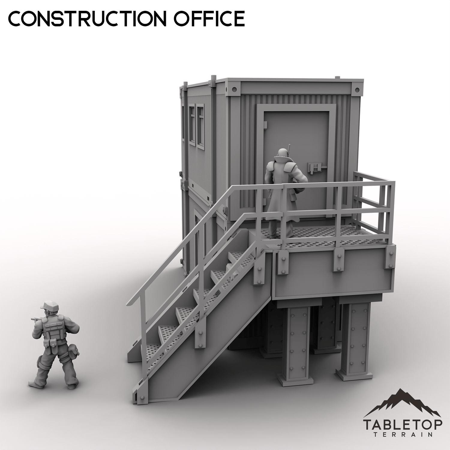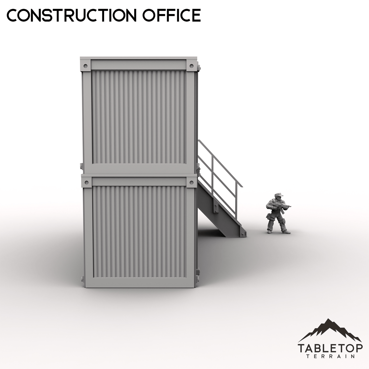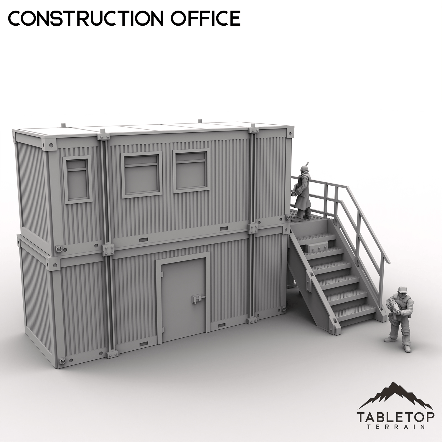 In 28mm scale, the Construction Office measures 152x65x61mm / 5.9x2.6x2.4 inches.