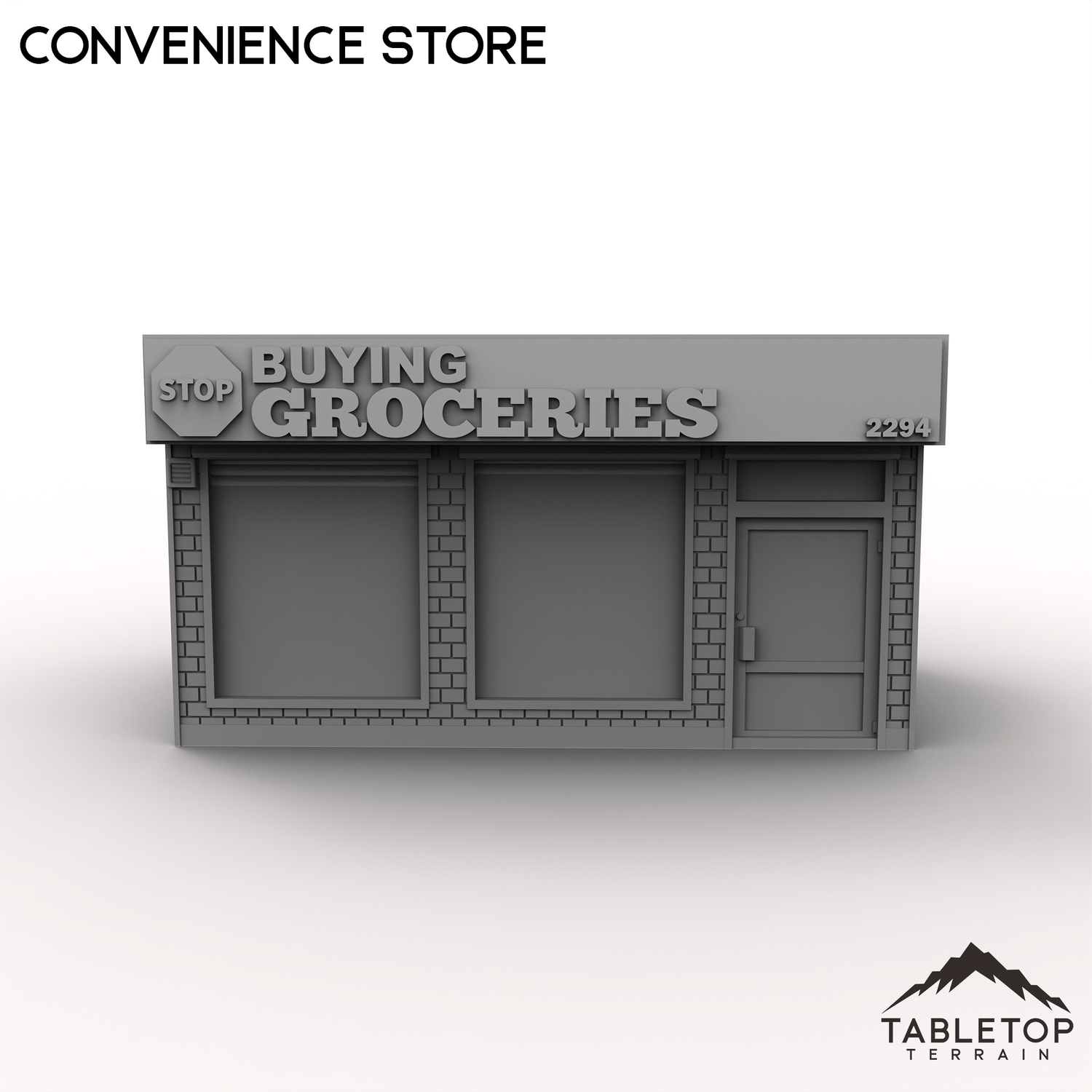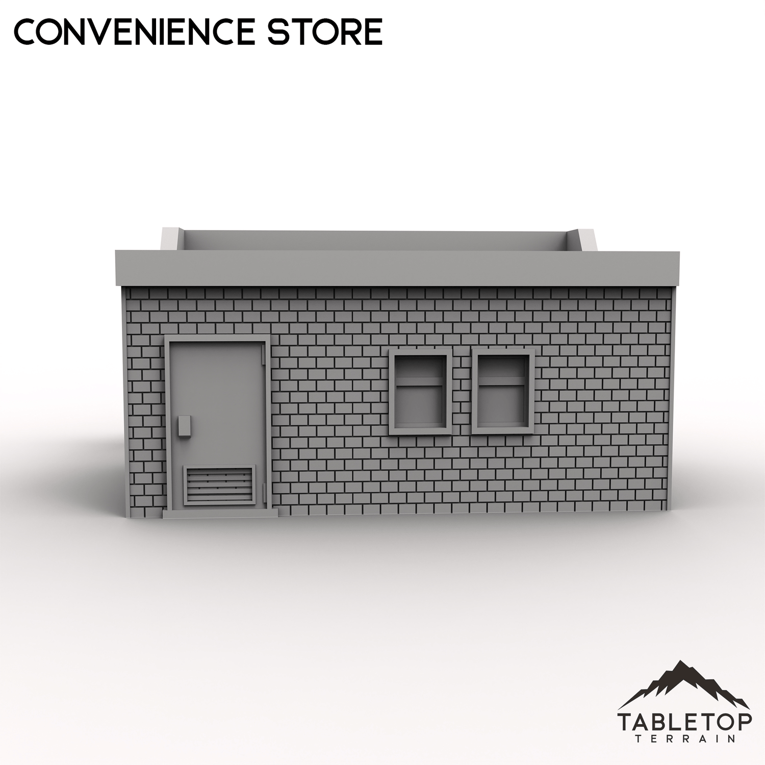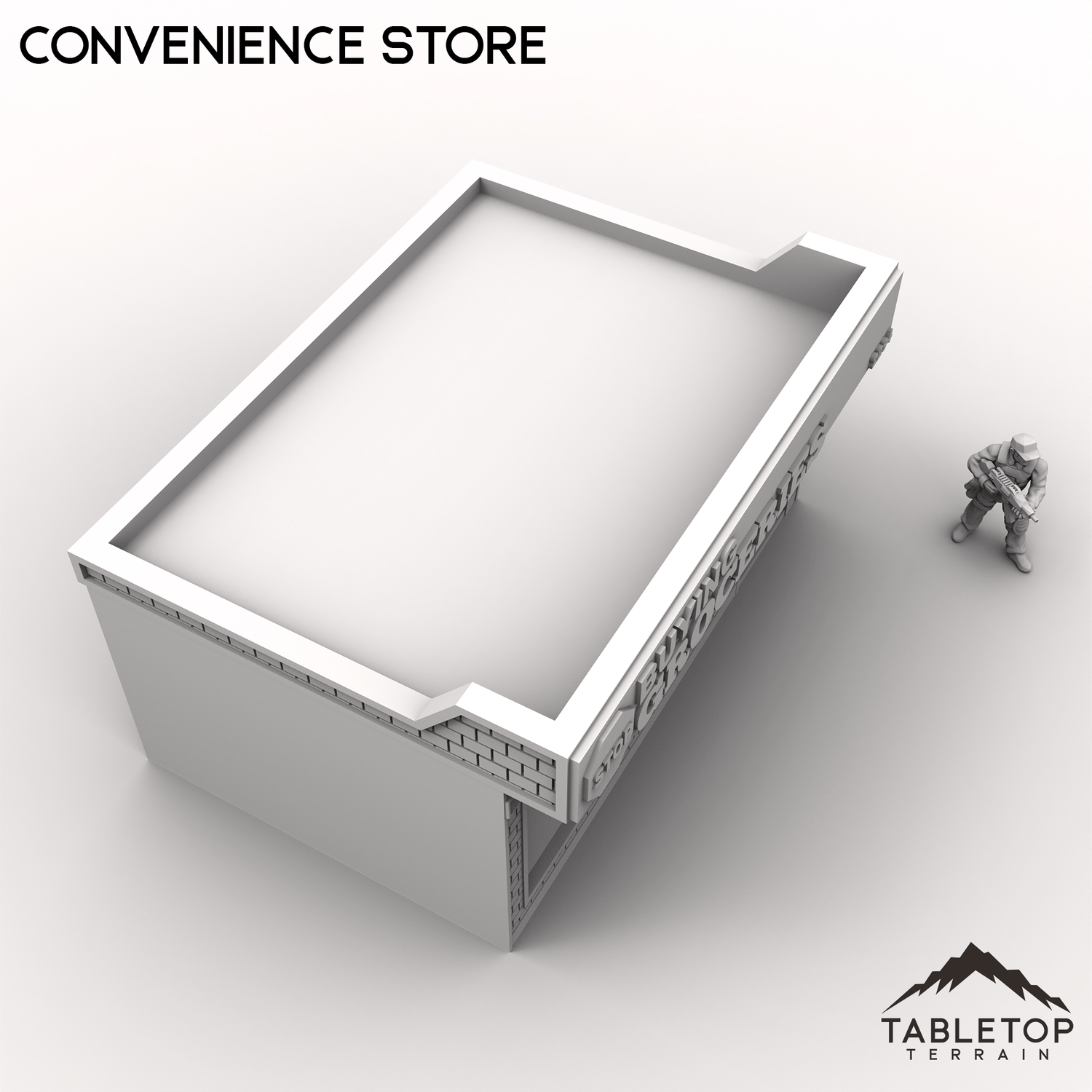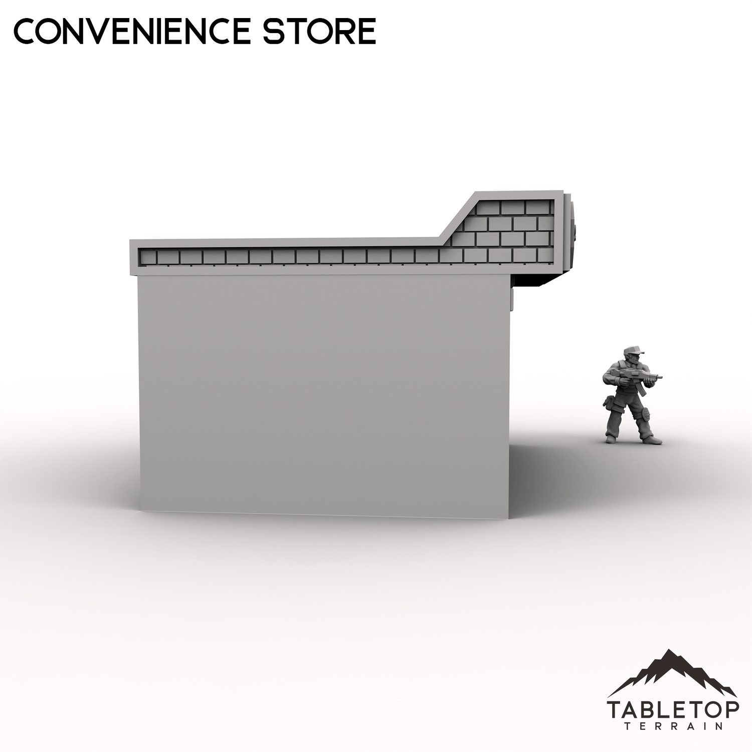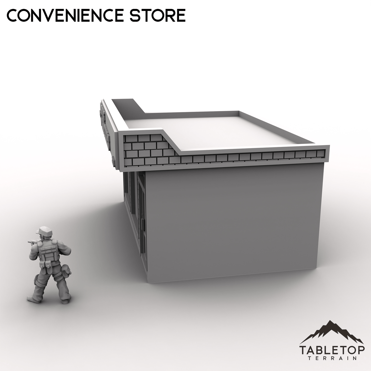 The Convenience Store is a small building with a detachable roof and open floor. This building is a fairly simple design made to be easily stored after usage. The design style is made to match other buildings from our urban setting collections, and would be perfect for any urban hero tabletop game.
