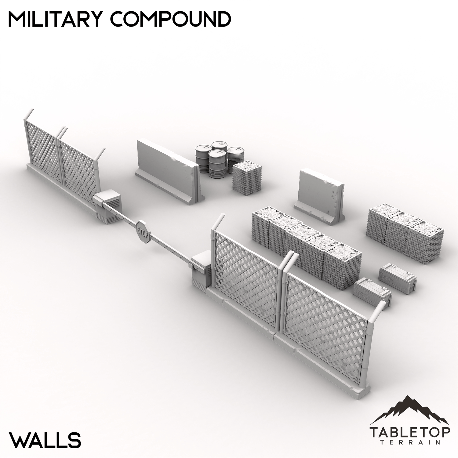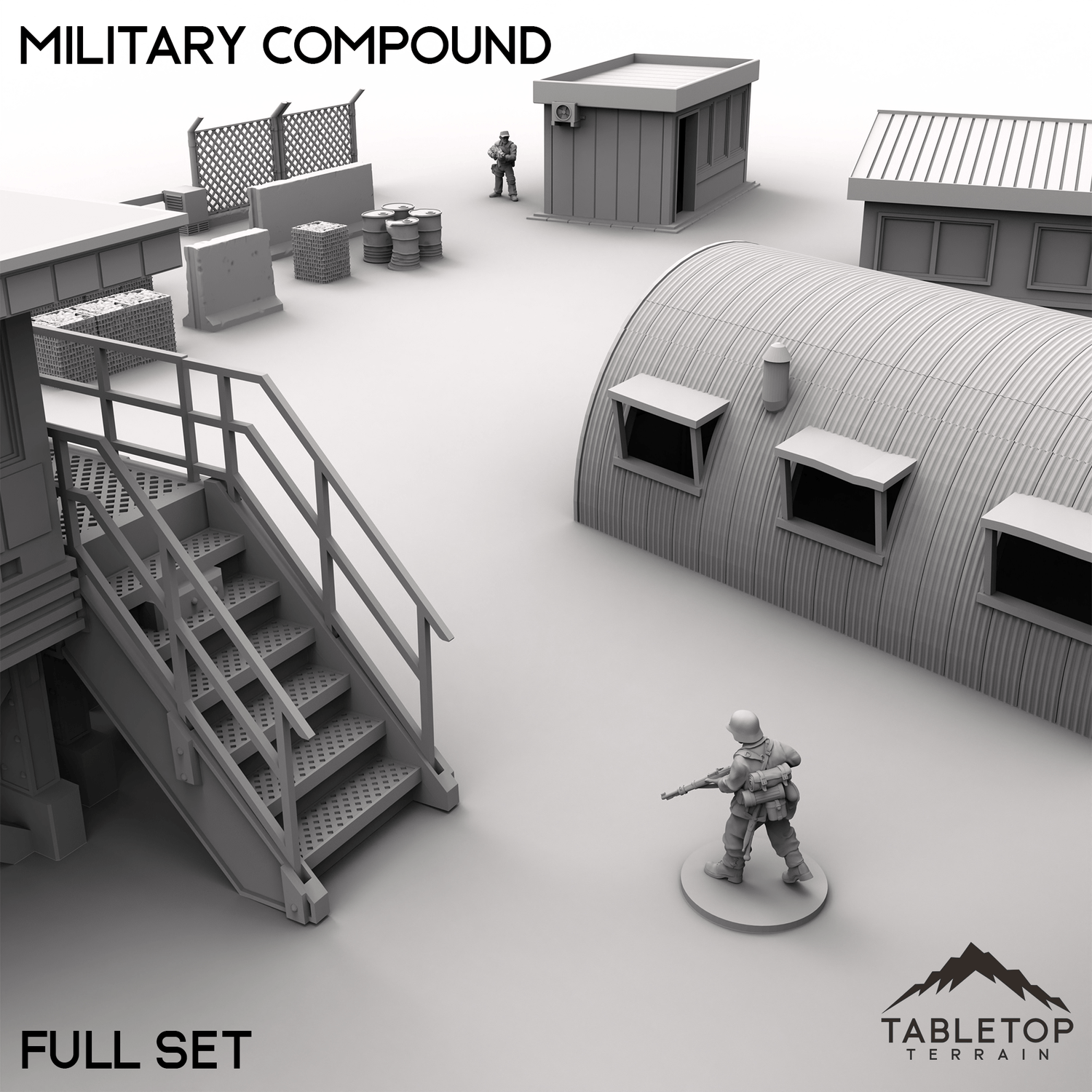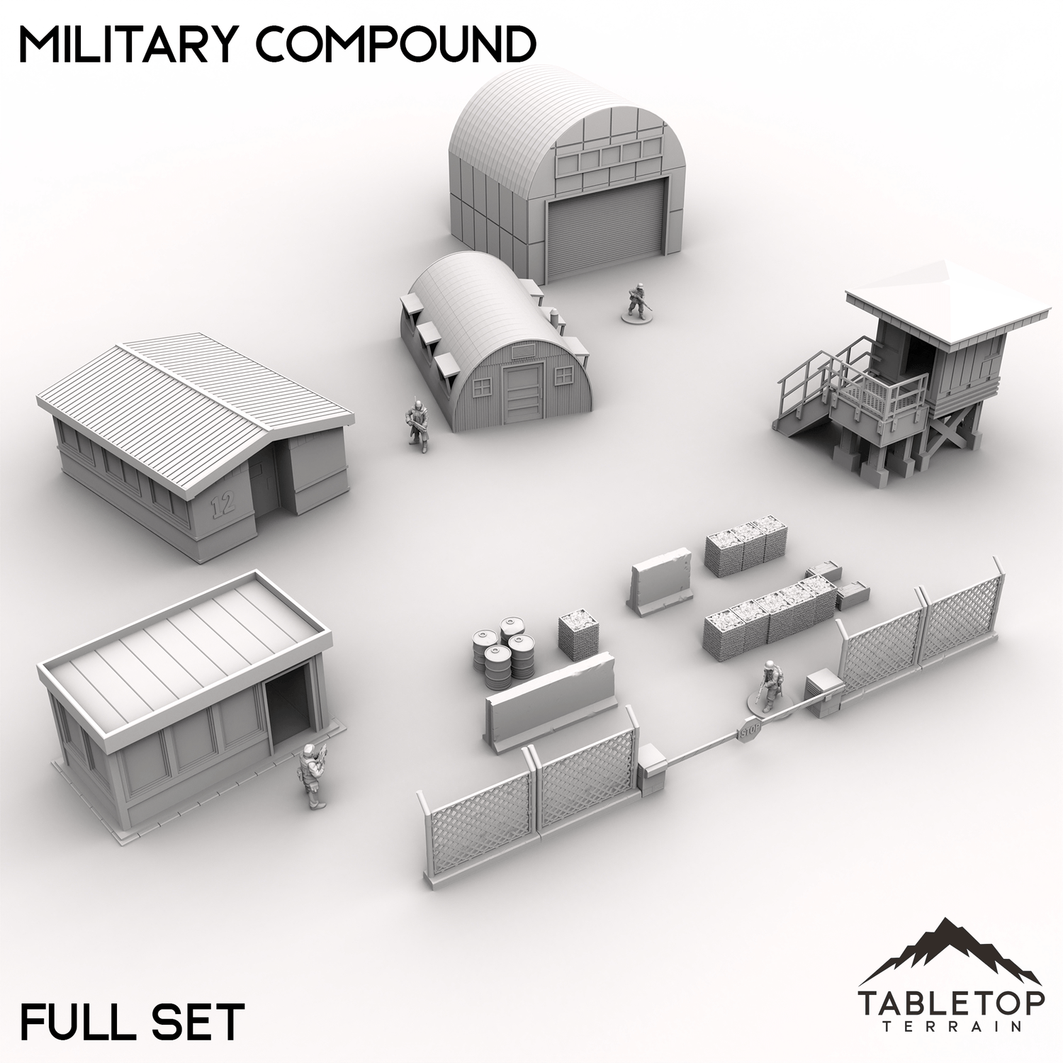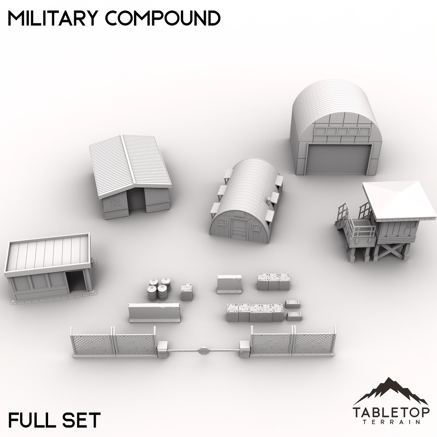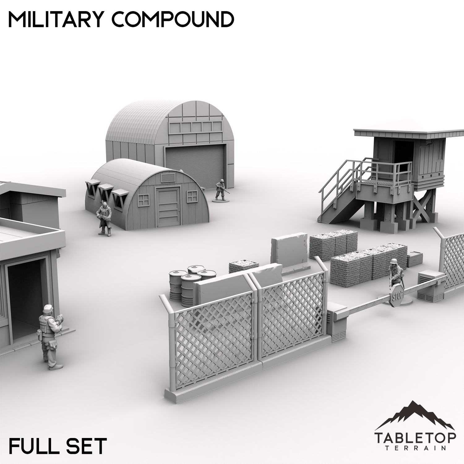 Take your urban warfare scenarios to the next level with this Military Compound set, designed for modern or post-apocalyptic cityscapes. Complete with guard posts, office buildings, hangars, and modular walls, this collection is perfect for staging tactical urban operations, covert infiltration, or high-stakes standoffs. Buy each piece individually or the whole set at a discount.