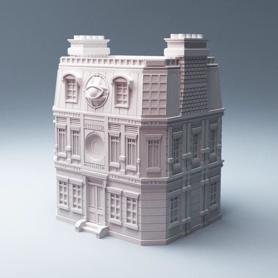 The Mystical House is a large three story building that one would find on Bleecker Street in New York. Resembling the Sanctum Santorum, it would make a great large building for your tabletop. The set is designed for urban hero tabletop games, but can work with any genre.
