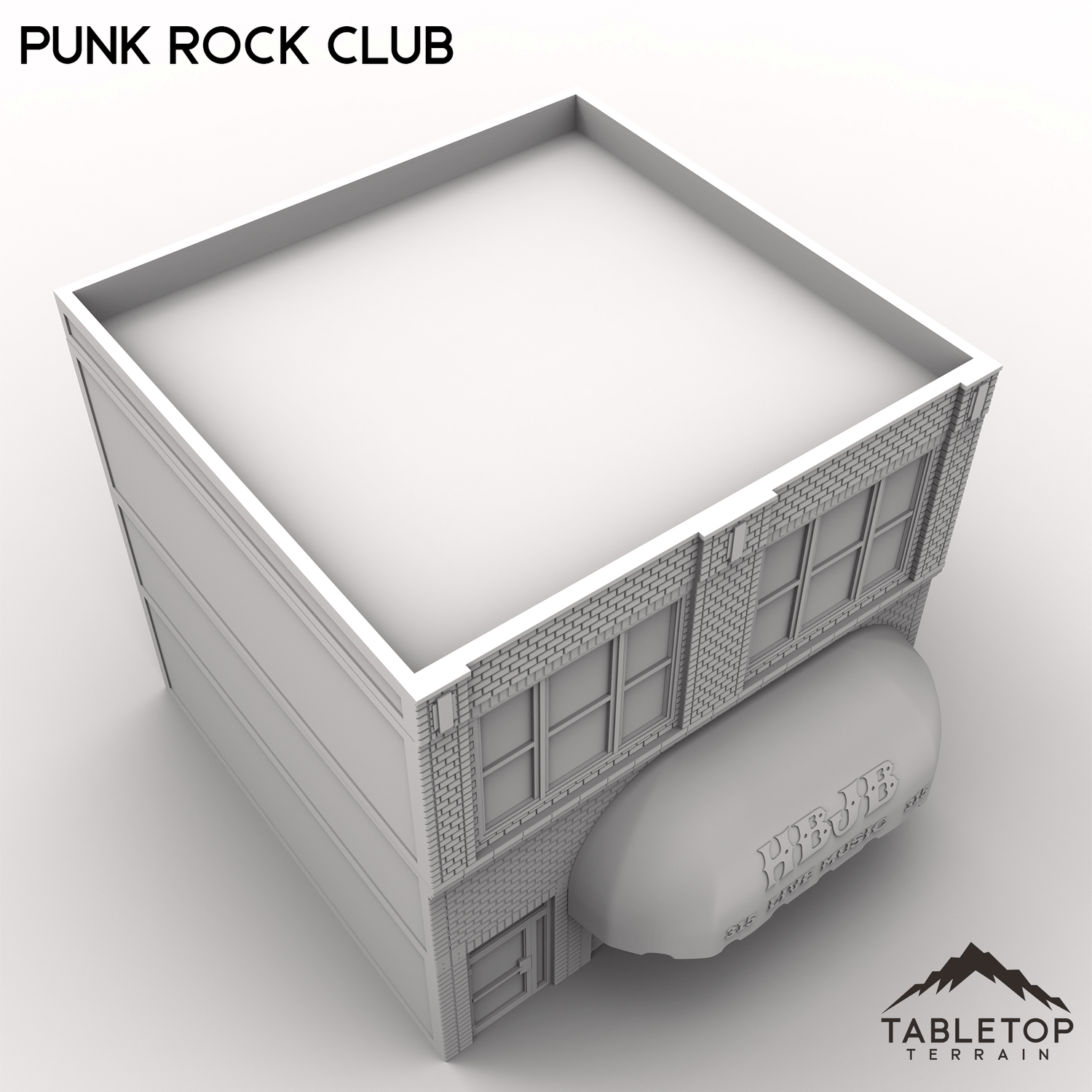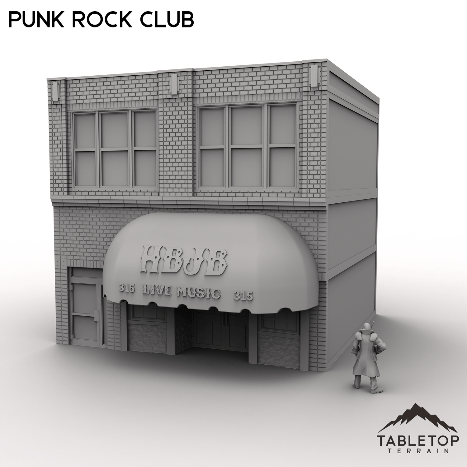 Punk Rock Club is a gritty, high-energy addition to any urban tabletop setting. The building features weathered brick walls, with a heavy metal door, evoking a rebellious underground vibe. Perfect for creating scenes of live music chaos or clandestine meetings on your modern tabletop.