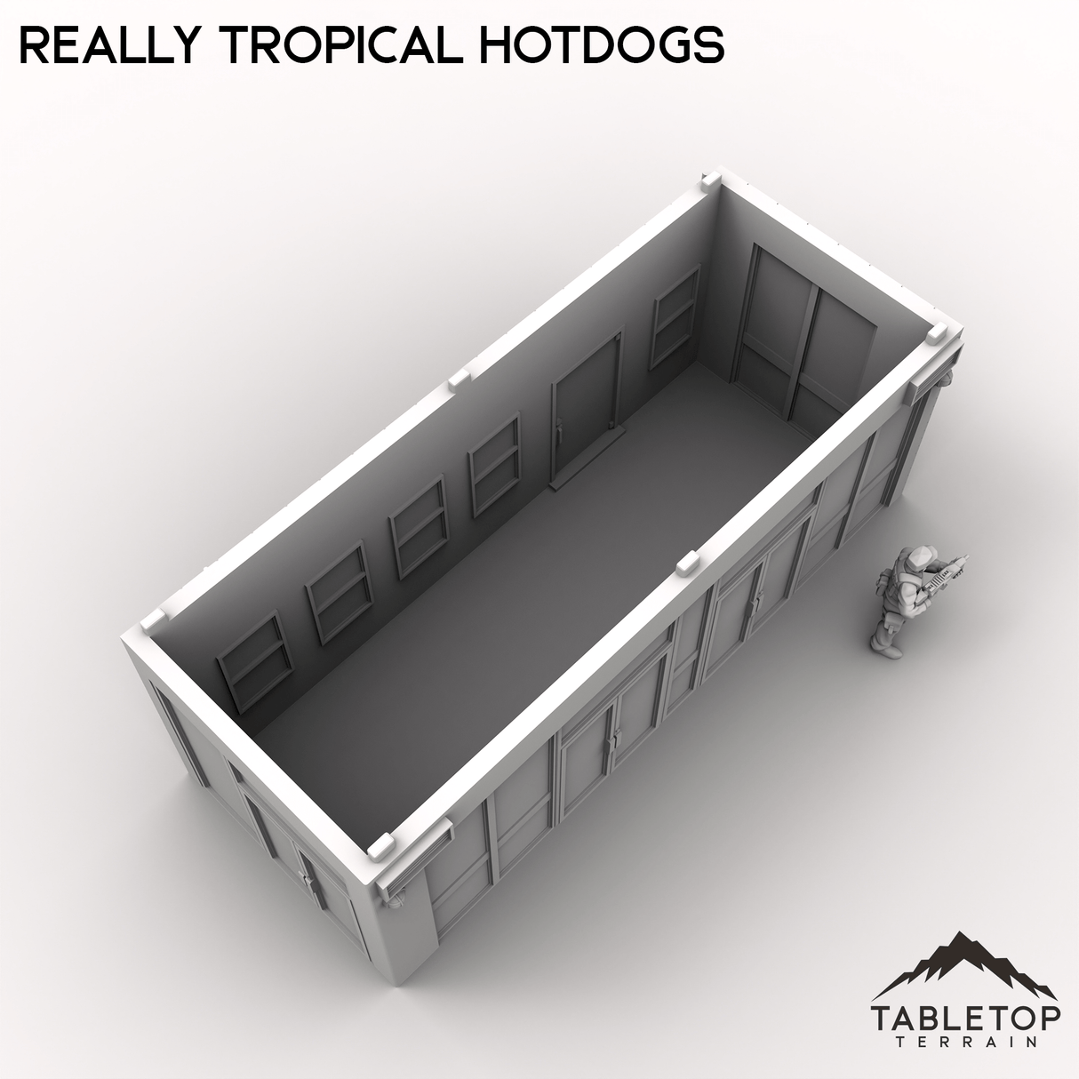 In 28mm scale, the Really Tropical Hotdogs measures 184x83x100mm / 7.2x3.x3.9 inches.