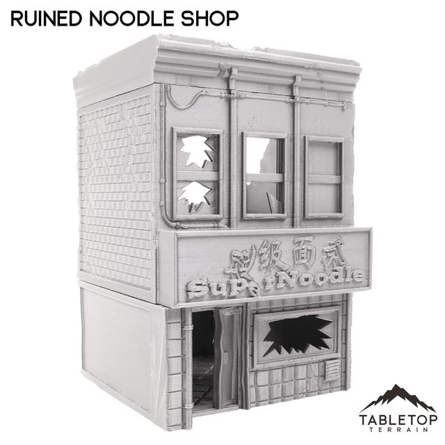 The Ruined Noodle Shop is a fantastic addition for your Urban themed tabletop. It would work great for Marvel Crisis Protocol or other Modern games. The Ruined Noodle Shop would fit perfectly for a city that has been demolished by a villain.