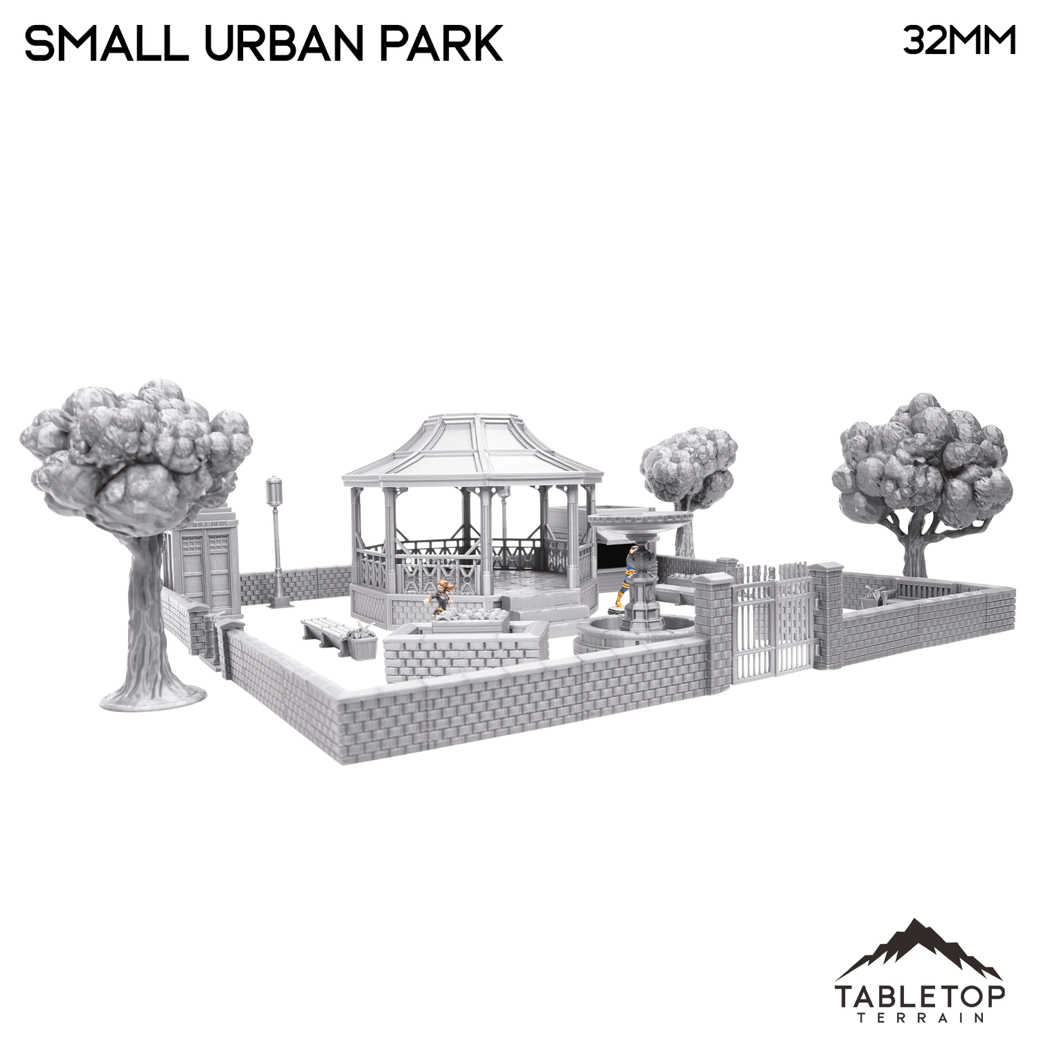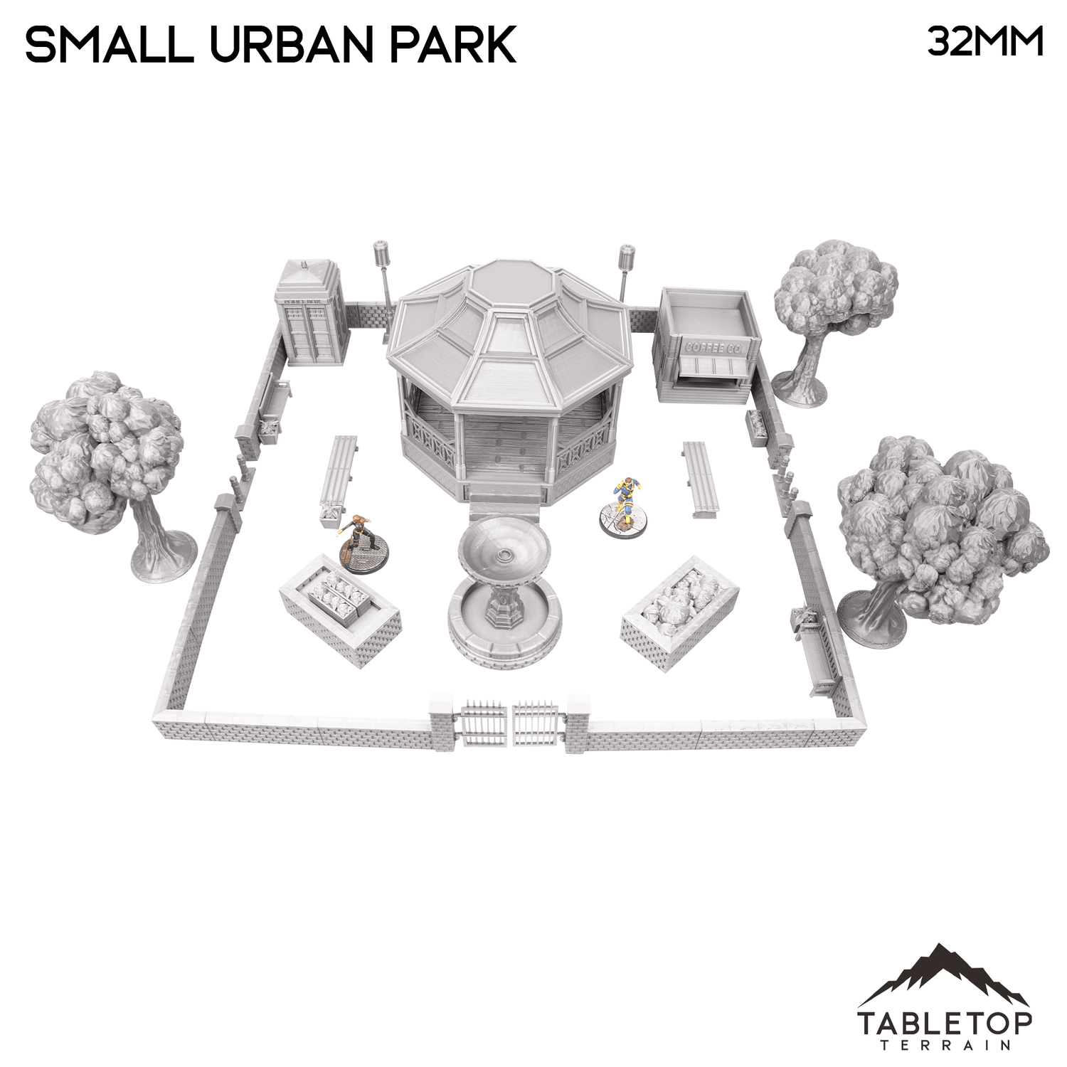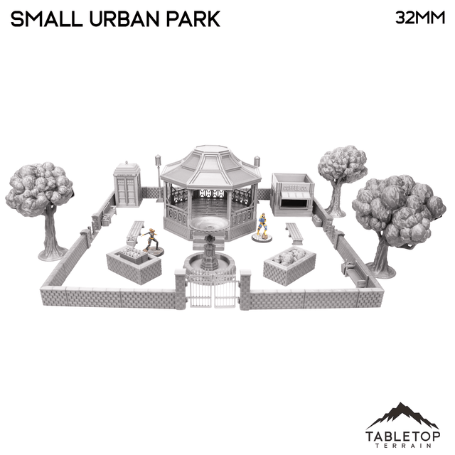The Small Park is a fantastic addition for your Urban themed tabletop. It would work perfectly for Marvel Crisis Protocol or other Modern games. It comes with a variety of decorations to spice up your game, including a fountain, gazebo, coffee shop, police booth, and 3 trees.