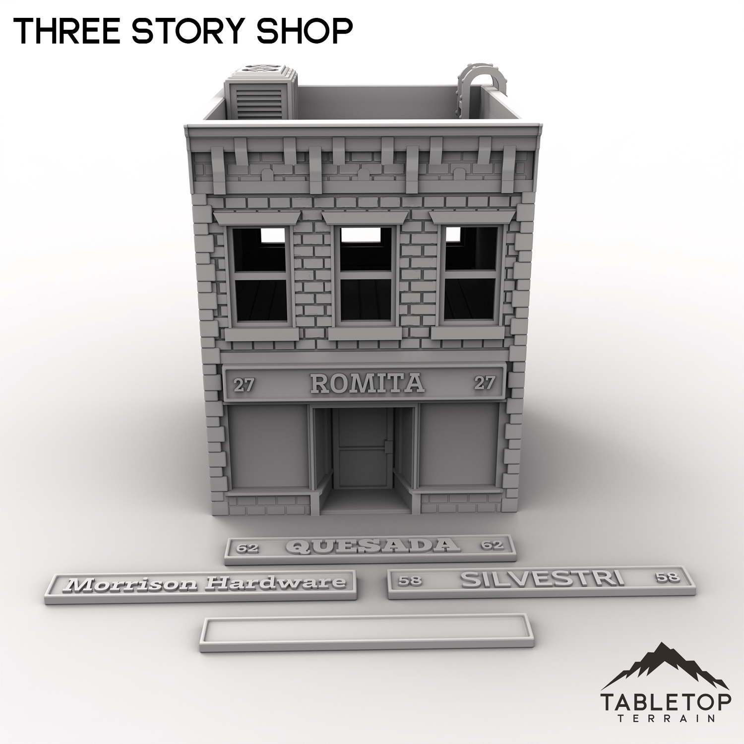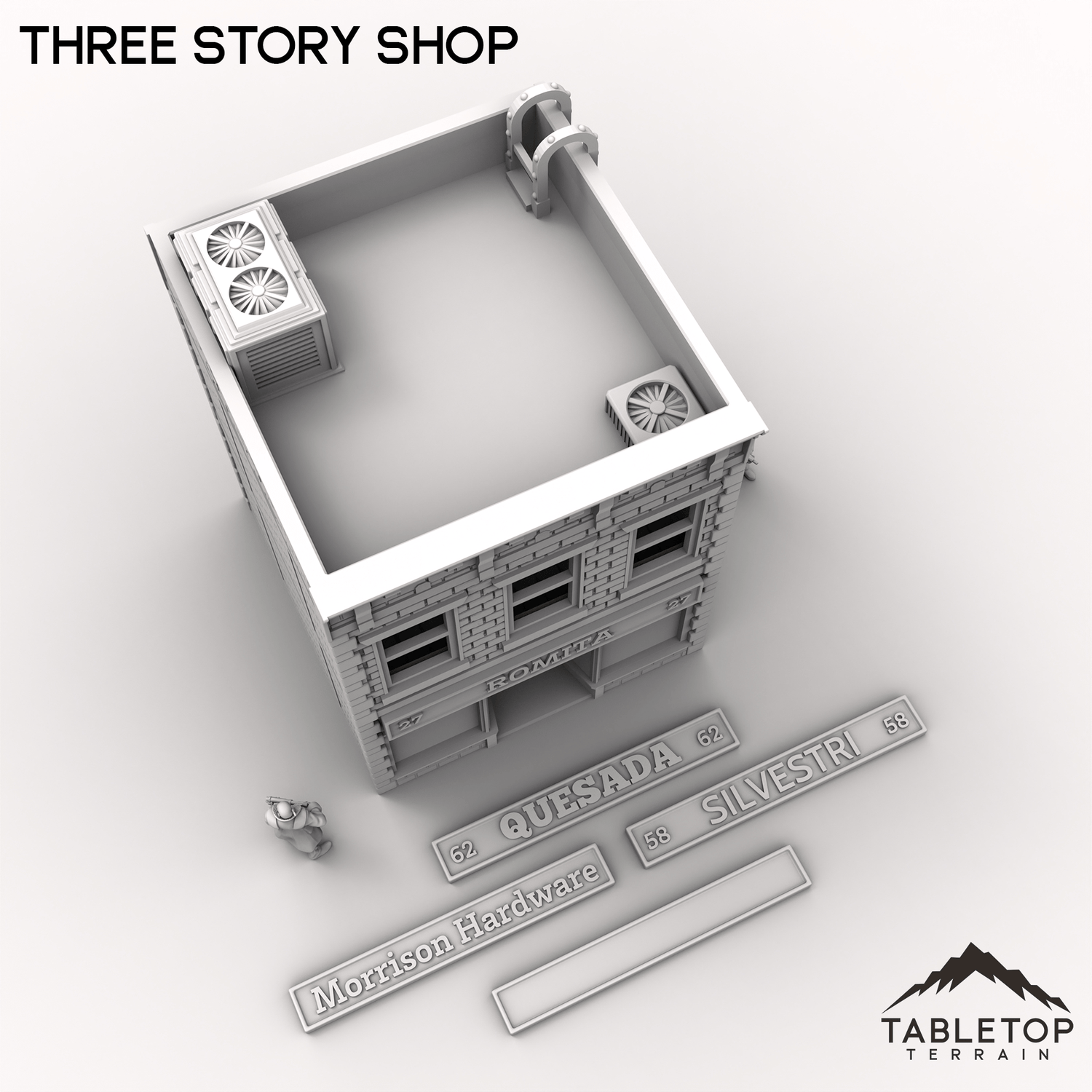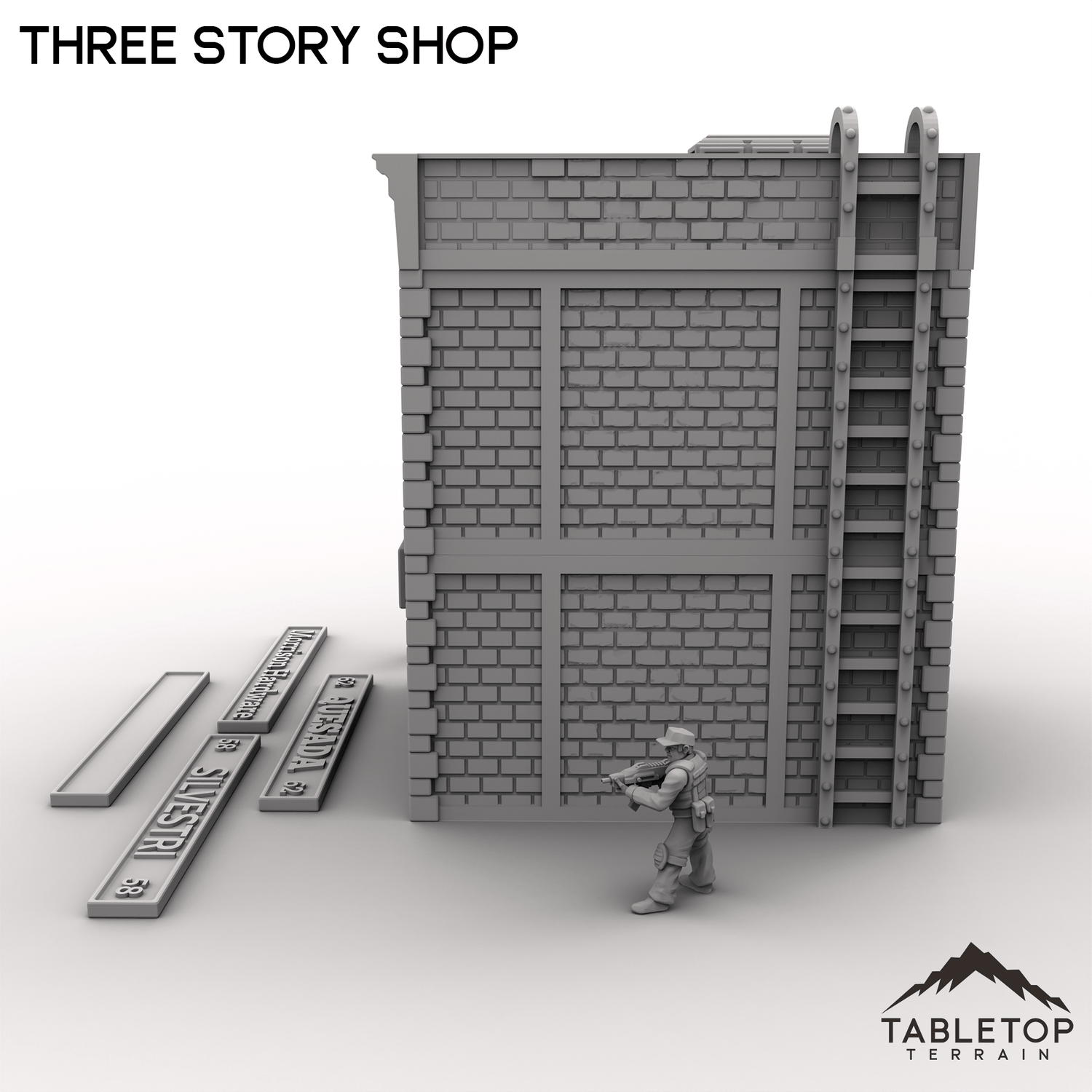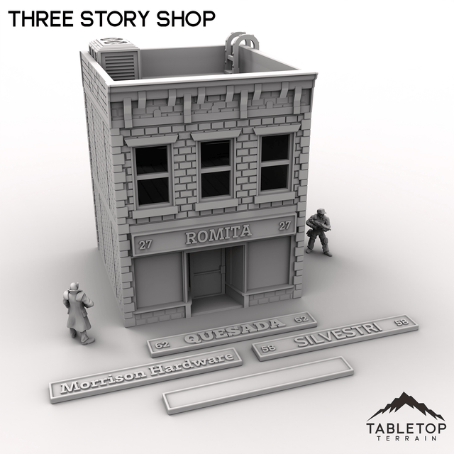 The Three Story Shop is a great building for your Urban themed tabletop. It would work perfectly for MCP or other Modern games and comes with five different signs for you to choose from.