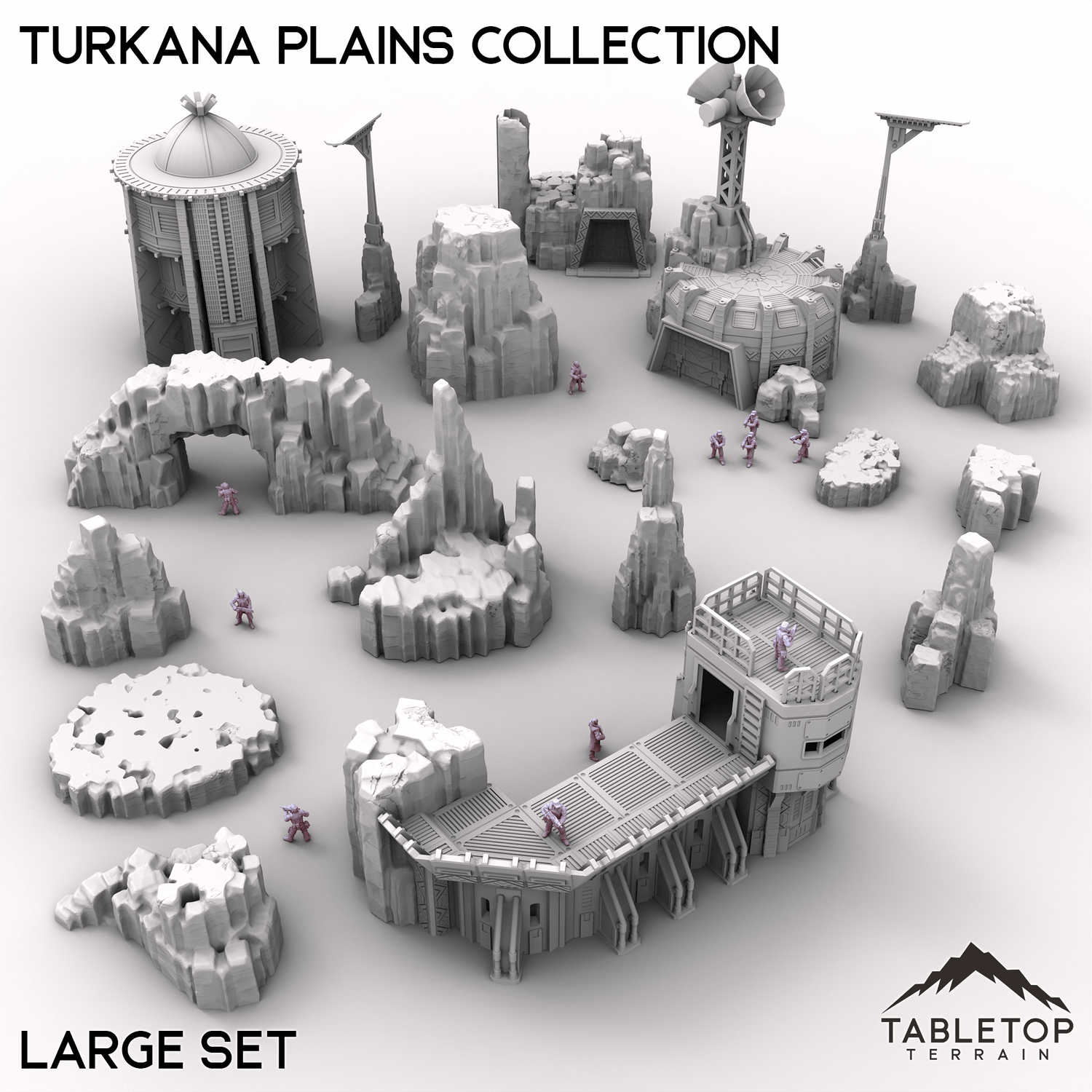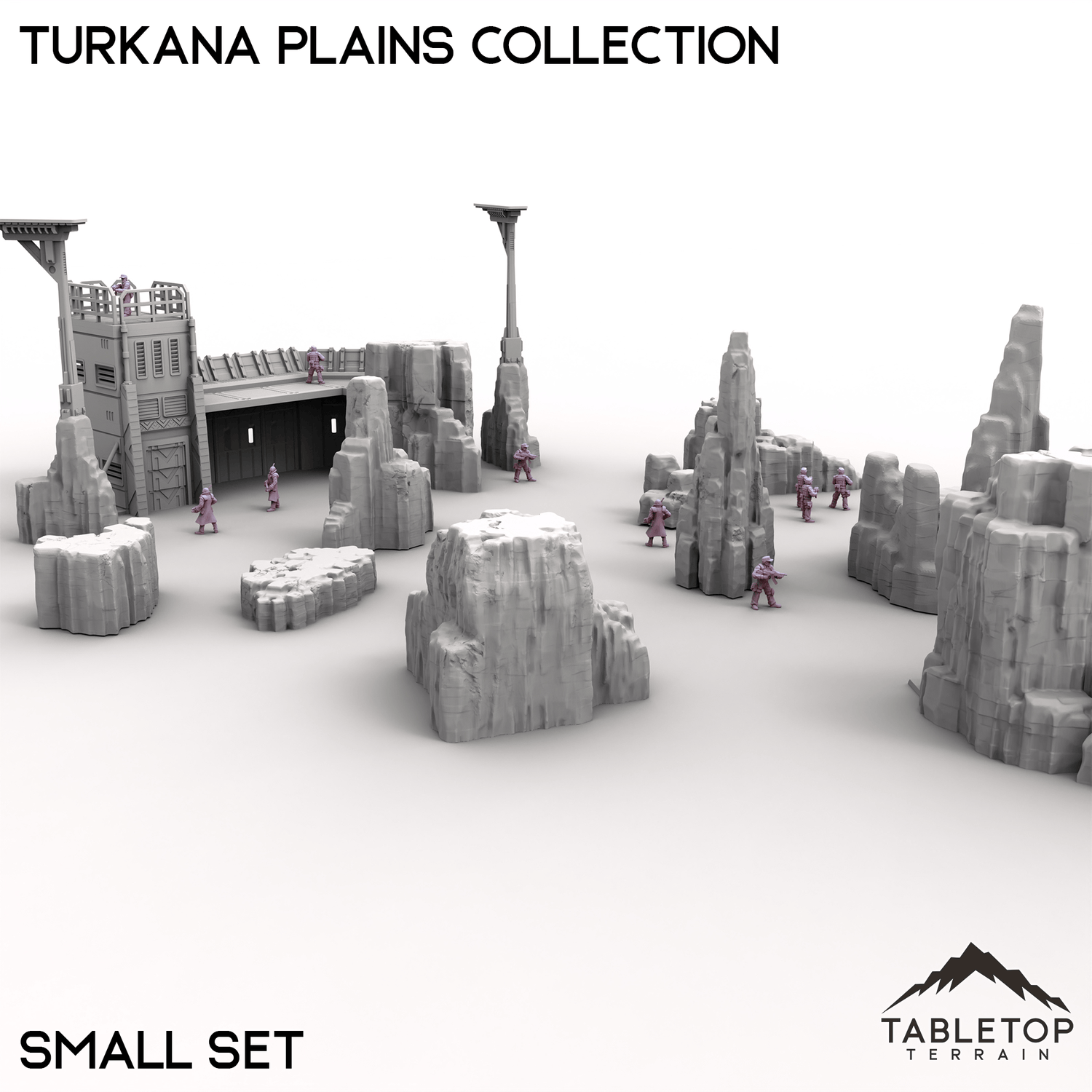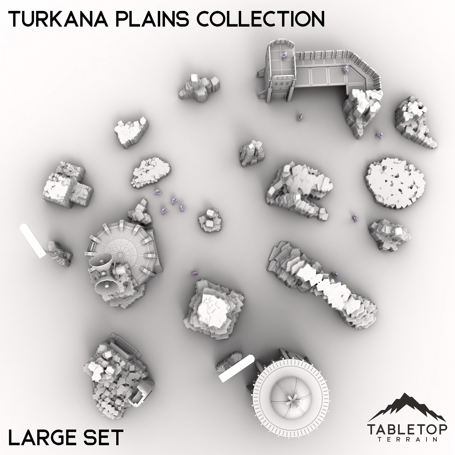 Bundled together into one simple and discounted package, the Turkana Plains Collection features all of the models from Turkana plains. The Large set has every single item across the entire series, while the Small Set is designed to be a bit cheaper for a more flexible layout. The collection is prescaled for MCP or will fit with most other 28-40mm scaled games, and could work for a variety of different genres or tabletop games as-needed. We've priced the sets so that they are cheaper than buying each item by itself from our other listings.
