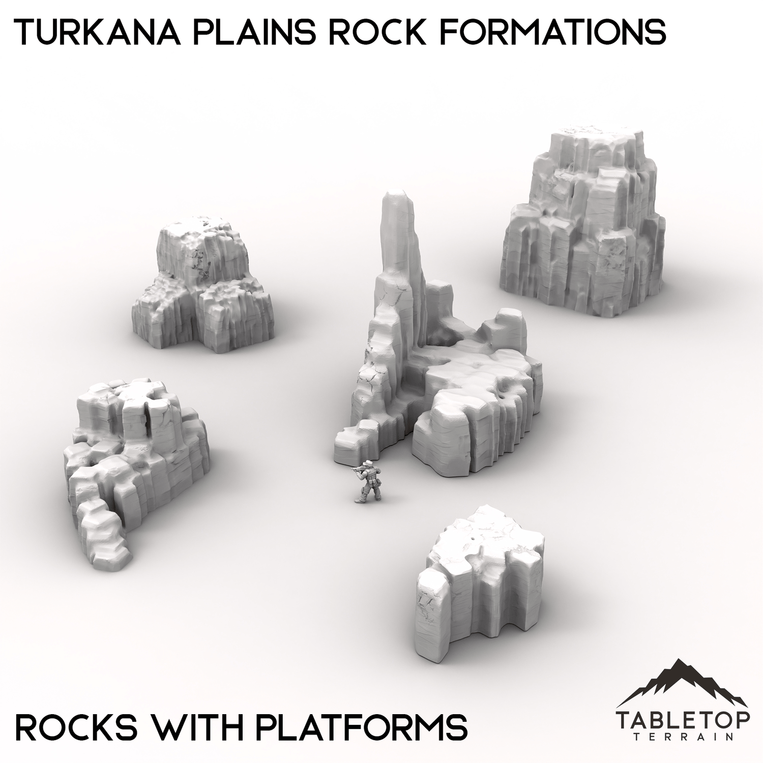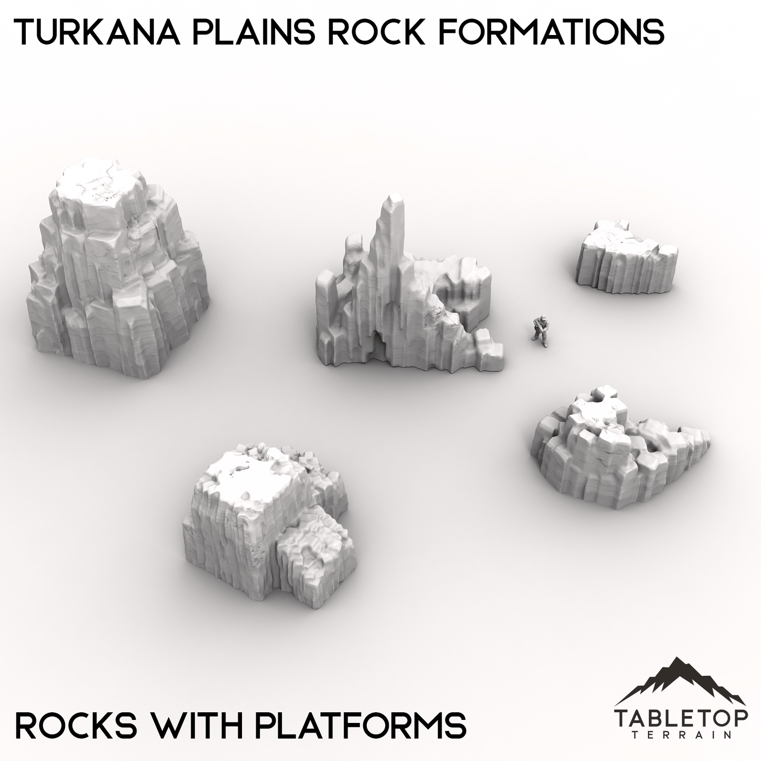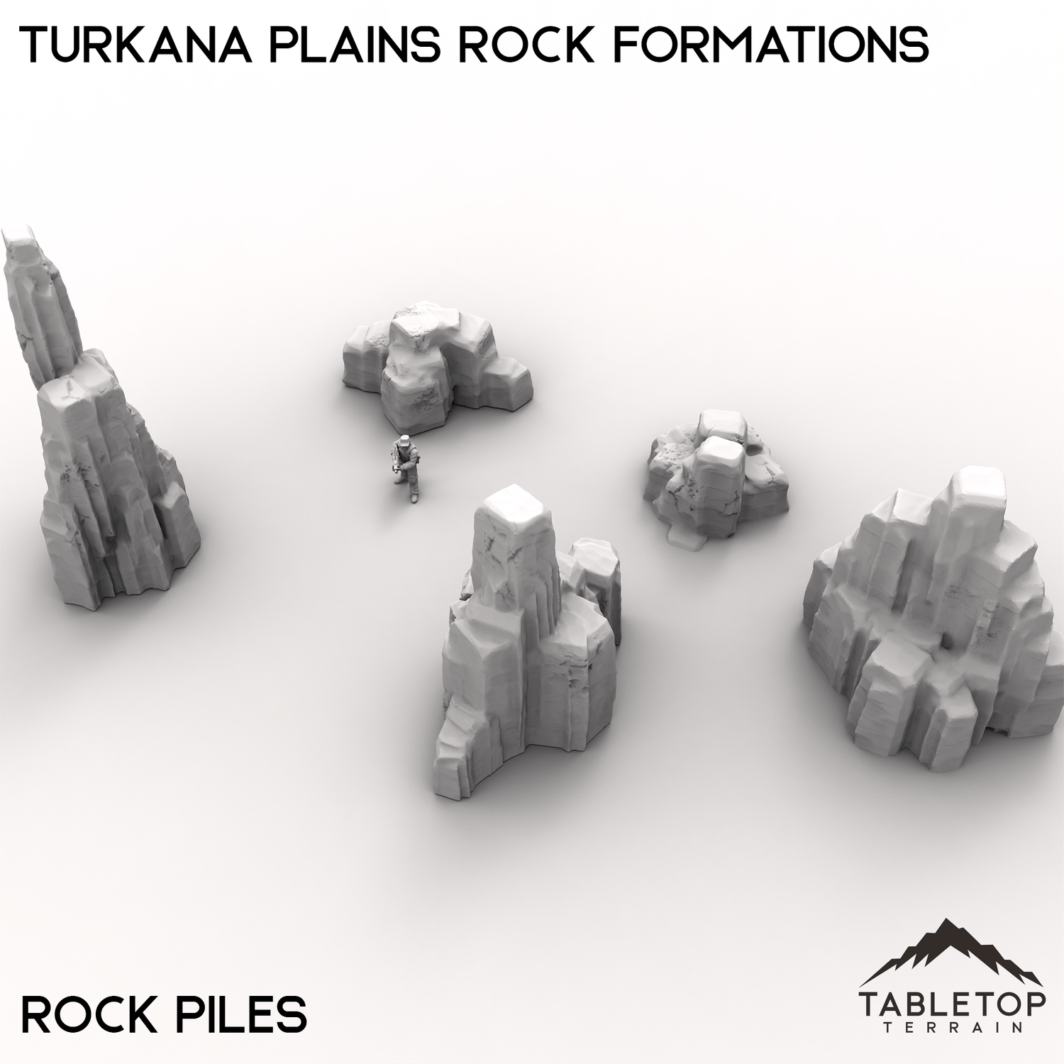 Turkana Plains Rock Formations is perfect for building out the terrain for any high-tech, hidden cities you might need! Part of the Turkana collection, the set comes with a wide range of different platforms and scatter pieces themed around arid climates. The Rock Formations set is designed to work on its own as a simple collection of rocky terrain, or it can be matched with other items from Turkana to make a hidden city.