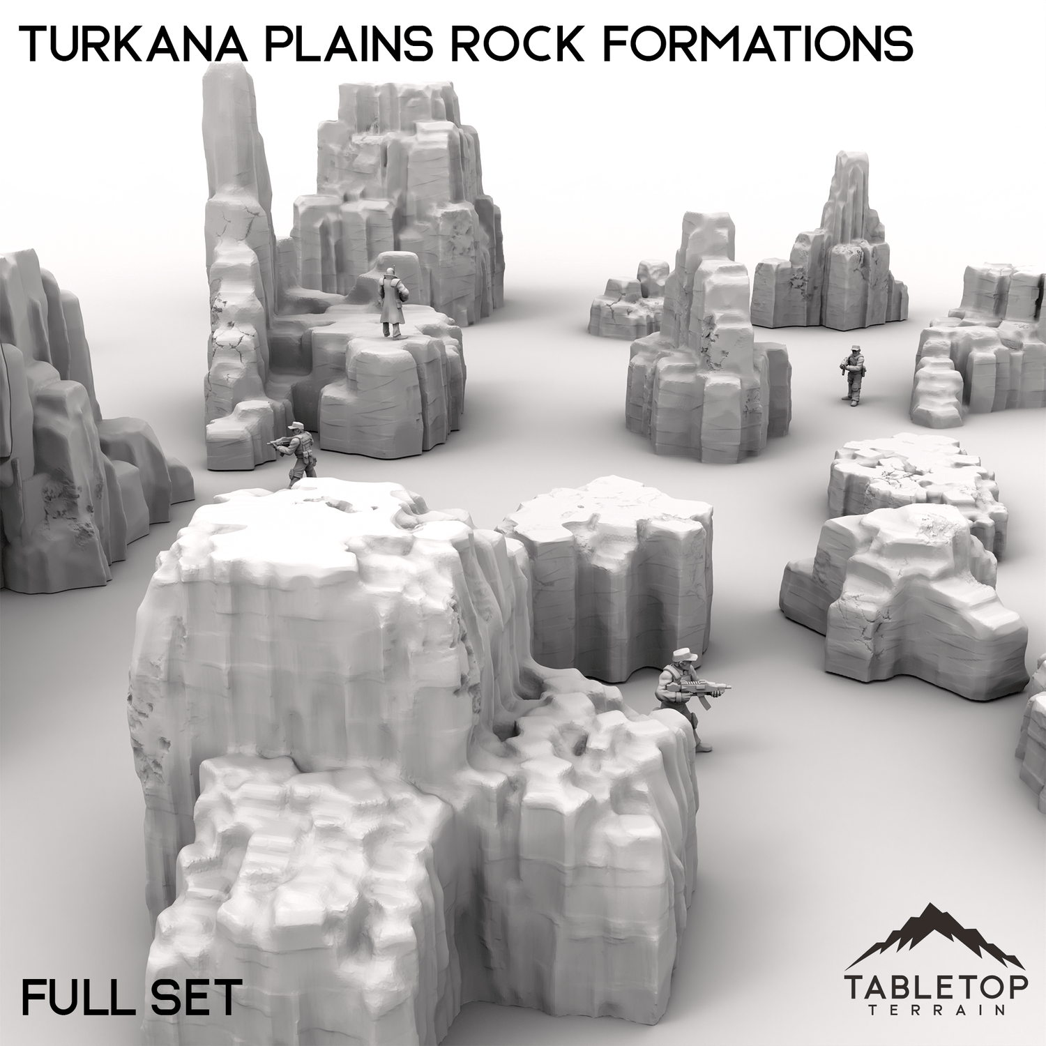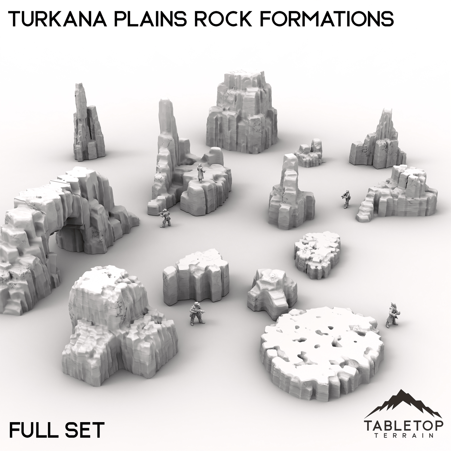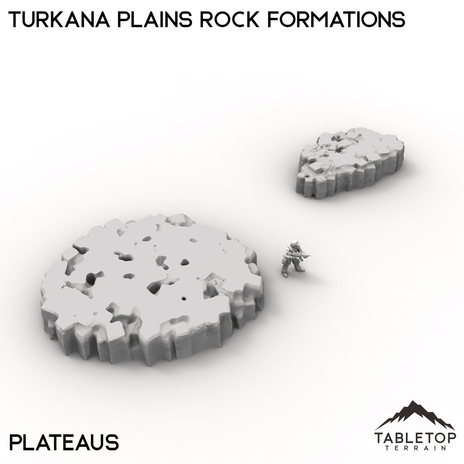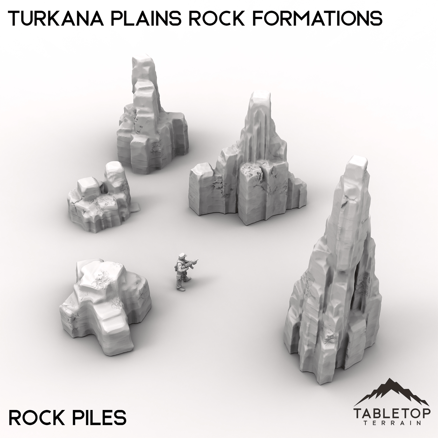 Turkana Plains Rock Formations is perfect for building out the terrain for any high-tech, hidden cities you might need! Part of the Turkana collection, the set comes with a wide range of different platforms and scatter pieces themed around arid climates. The Rock Formations set is designed to work on its own as a simple collection of rocky terrain, or it can be matched with other items from Turkana to make a hidden city.