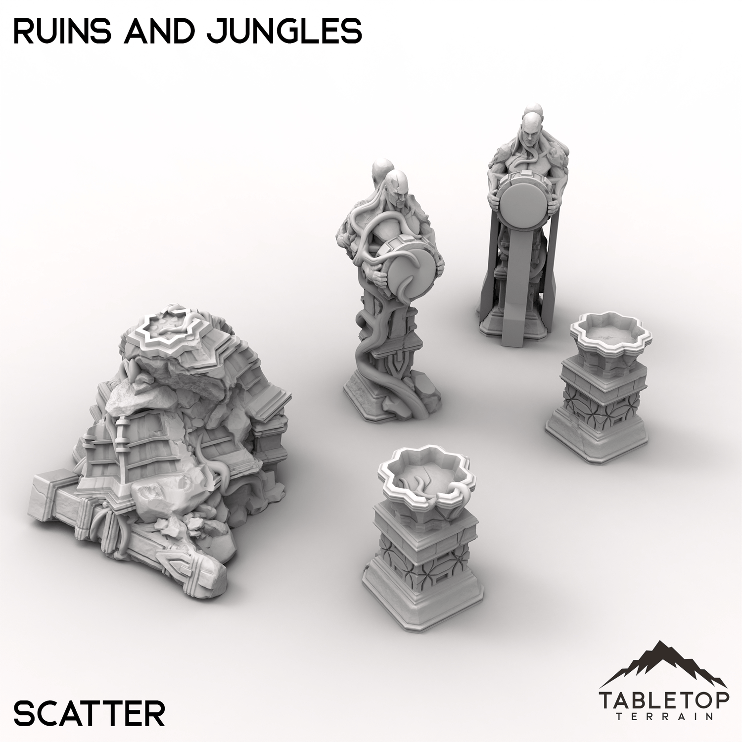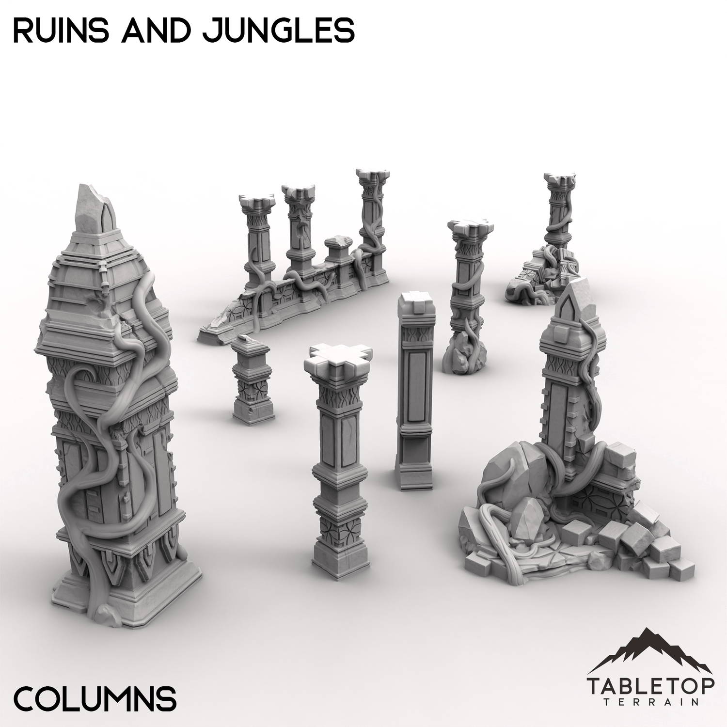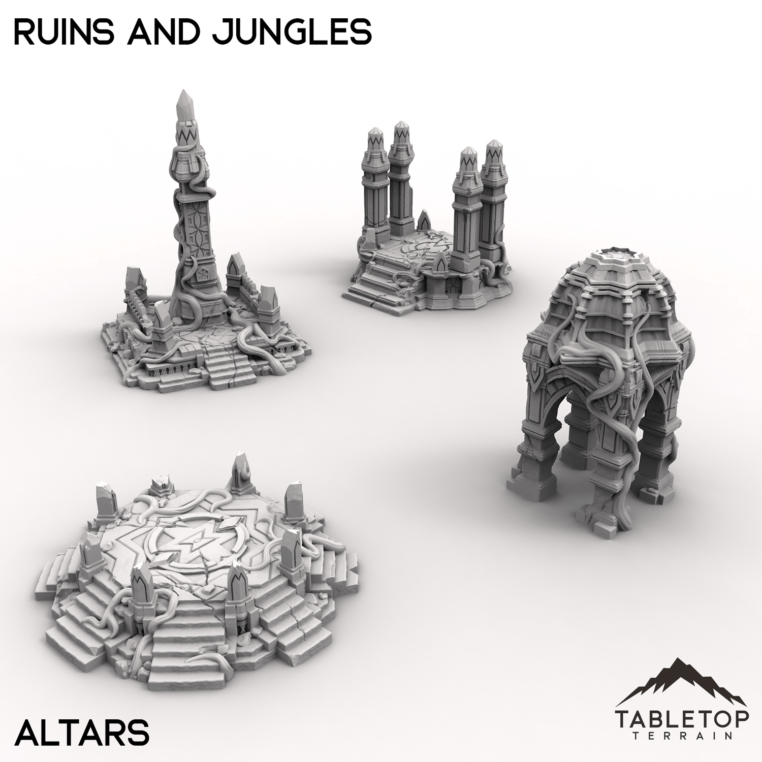 These ancient Ruins and Jungles feature a blend of overgrown structures and towering trees. Weathered altars and vine wrapped columns stand amidst crumbling walls. Perfect for jungle exploration missions or combat among the remnants of a ancient civilization.