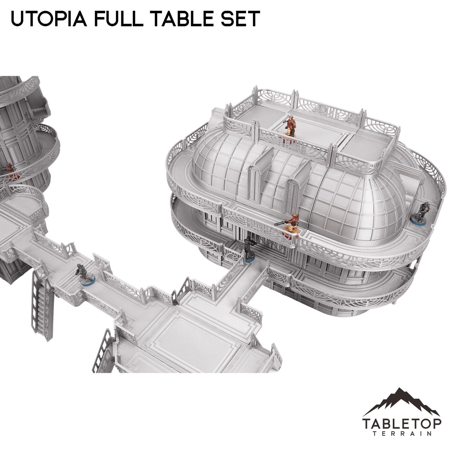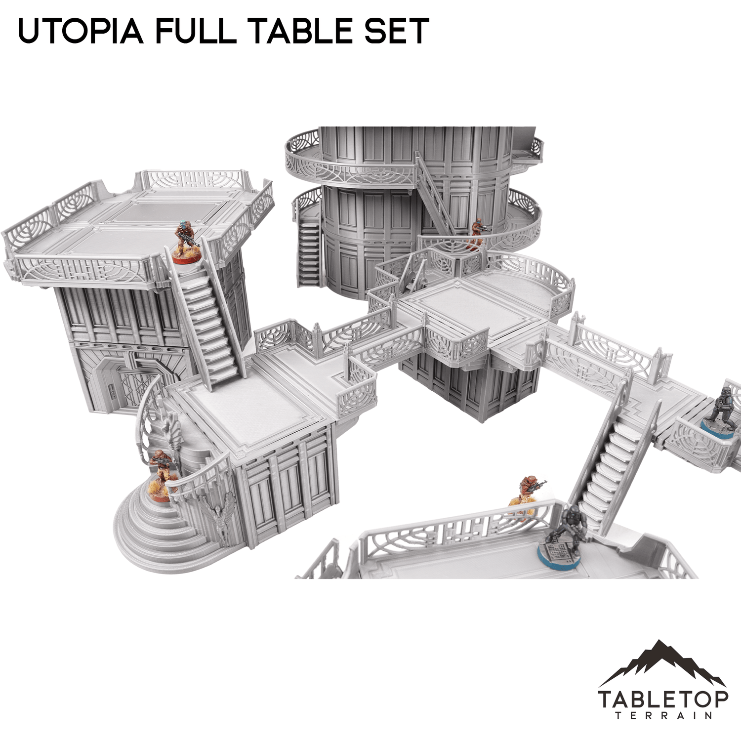 Welcome to Utopia. This full table set is inspired by the galactic city of Theed. The set is completely modular, allowing you to build the version shown here or anything you desire. It's fully compatible with both Star Wars Legion and Shatterpoint (with each level at 88mm, the same as the core set terrain). The set has many elevated walkways and platforms, perfect for competitive or casual gaming.