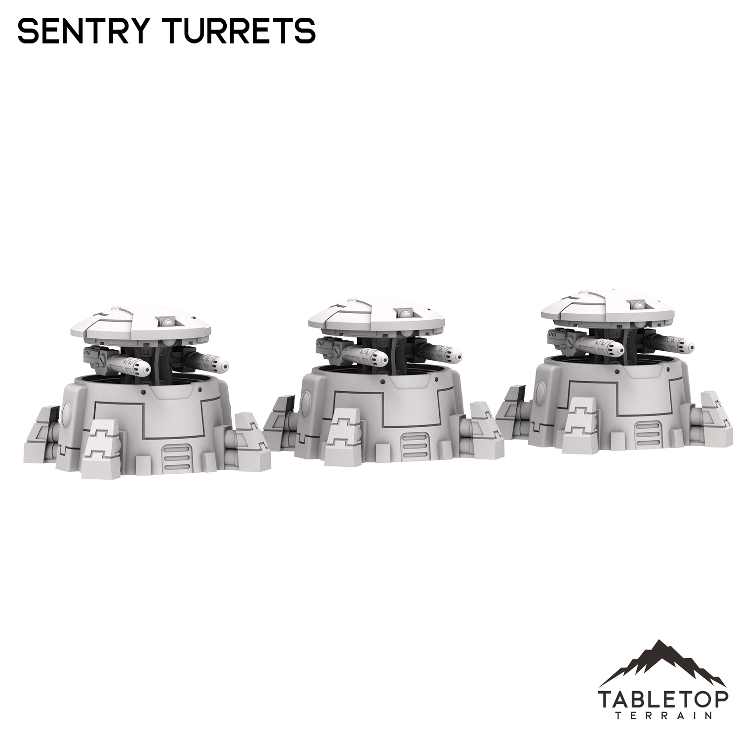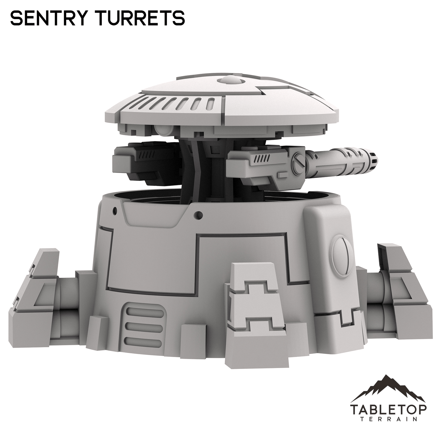 The Sentry Turret is a automated defense turret outfitted with plasma cannons. This set includes 3 turrets that require minor assembly.