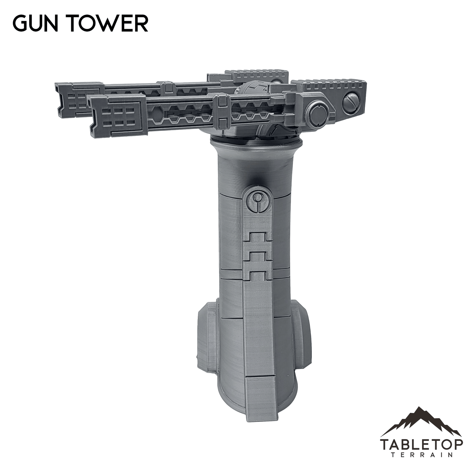 In 15mm scale, the Gun Tower measures 64x37x85mm / 3.6x2.1x4.8 inches.