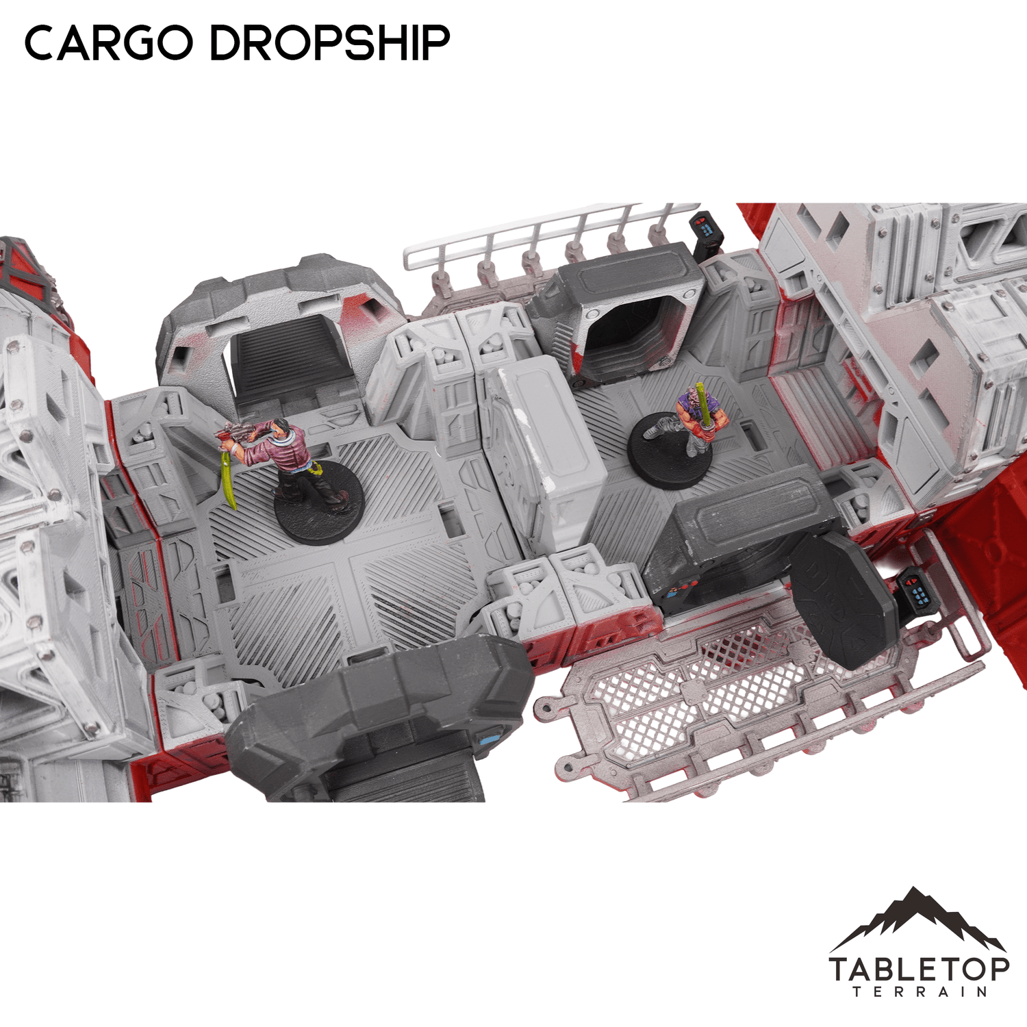 Reaching over 2-feet long, this massive, fully modular Cargo Dropship is a giant set! Every section of the ship is fully detailed from the floor to the ceiling, inside and out. The interior is sized for 28/32mm minis, and every single door is a functional moving door from the side-entrances to the rear loading ramp to even the double-door fitted cargo containers. Each and every section of the ship can be refitted and customized, as well. As with the other ships in this collection, the window-frame pieces are printed in a strong orange color to give the cockpit a stylish look.