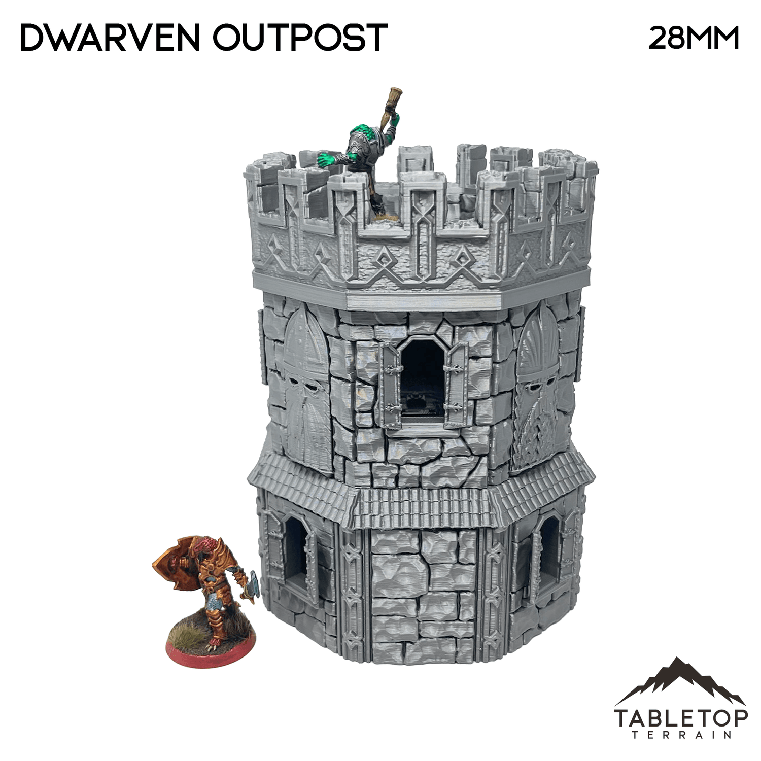 The Dwarven Outpost is a multi-storey dwarven outpost. It features multiple stories, articulating doors and hatch. This structure is a good mountain stronghold. The Outpost would be perfect for fantasy games such as Dungeons and Dragons (DND), Age of Sigmar (AoS), Pathfinder, Frostgrave, or Conquest.