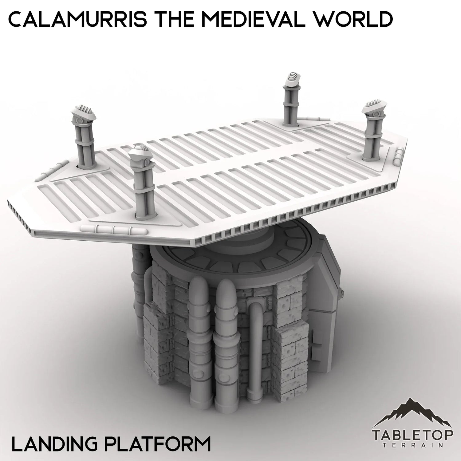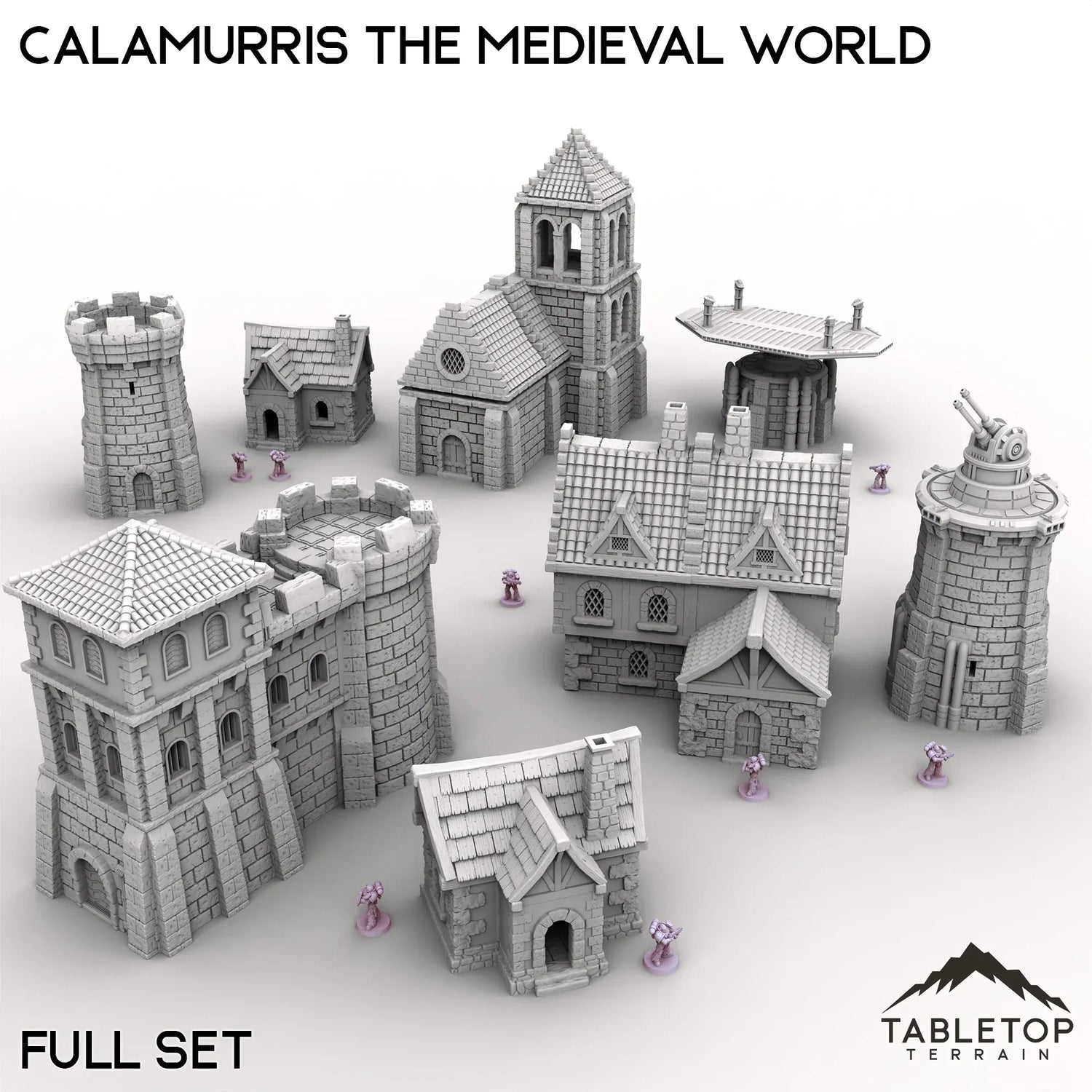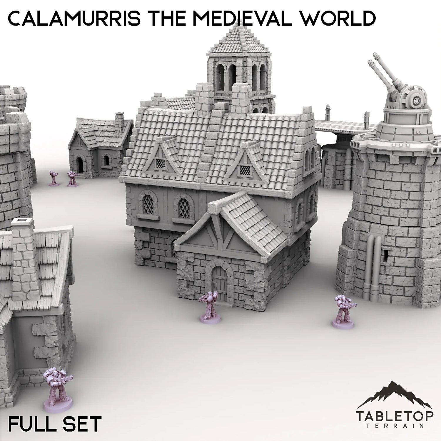 Explore the medieval world of Calamurris, which has a fort, tavern and various town houses. The landing platform and turreted tower gives a hint of steampunk or magical technology. Buy each piece individually or the whole set at a discount.