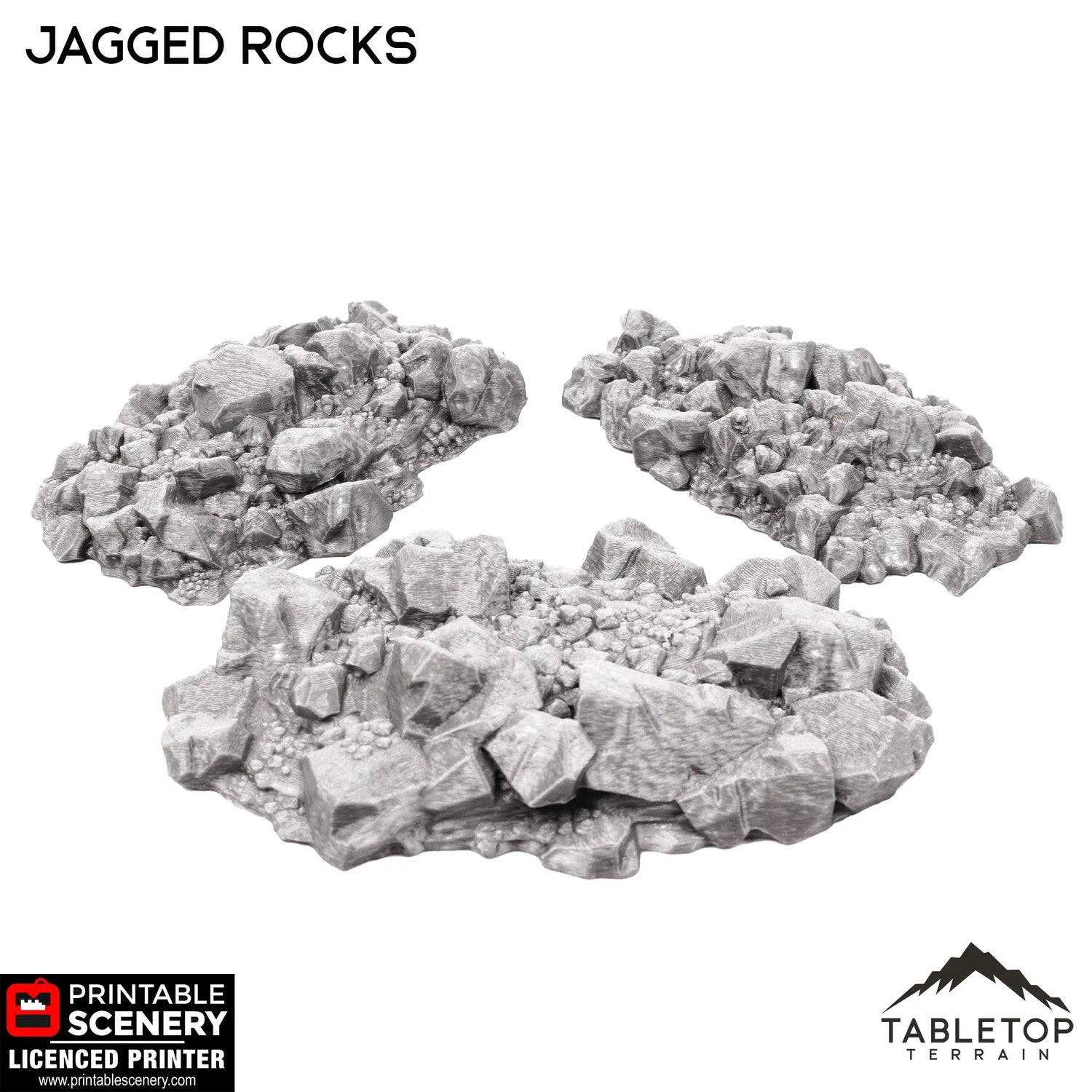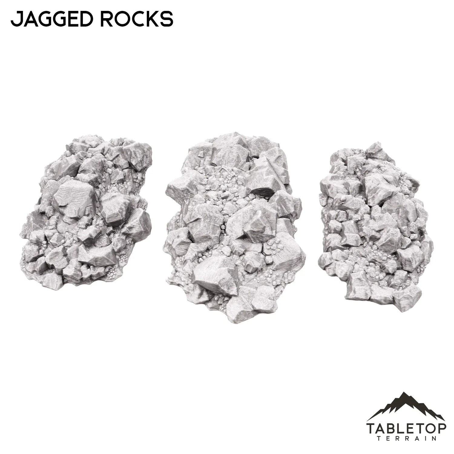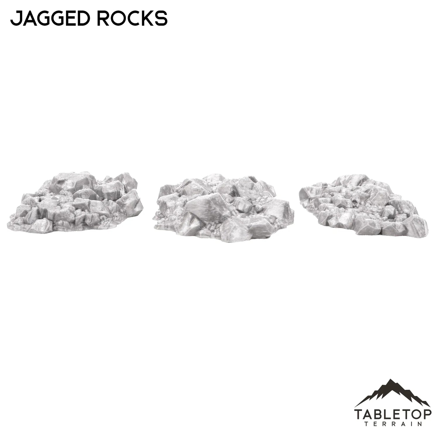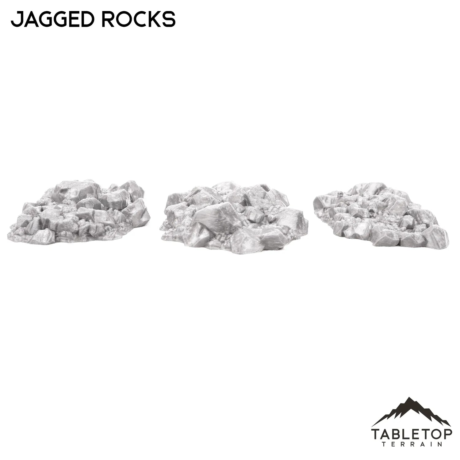 The Jagged Rocks set is a 3-piece scatter terrain set that features detailed piles of stones. These rock piles look perfect with tabletop centerpieces such as the Feywood Shrine or Giant Statue or with scatter terrain elements like the Gloomy Gully or Fey Marshes. The Jagged Rocks would be perfect for fantasy or sci-fi games of any system.